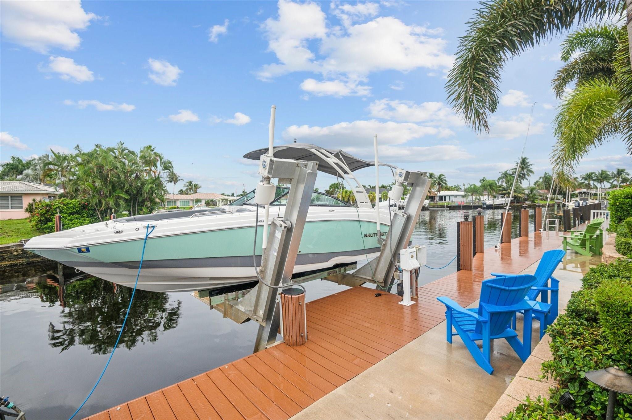 Enjoy the view and live your luxury lifestyle at 720 Southeast 6th Terrace, Pompano Beach, FL! This exquisite 3-bedroom, 3-bathroom home offers 2,241 square feet of beautifully designed living space overlooking intersecting canals! Enjoy ocean access from your private 78 ft dock with 14,000 lb boat lift, ideal for boating enthusiasts! The interior boasts a contemporary kitchen equipped with newer stainless appliances, a convenient home office & the primary suite is a peaceful retreat with ample closet space and en-suite bathroom. Additional features include an oversized 1 car garage with lots of add'l driveway parking. This waterfront gem offers the perfect blend of luxury and convenience. Make this stunning property your new waterfront retreat today!