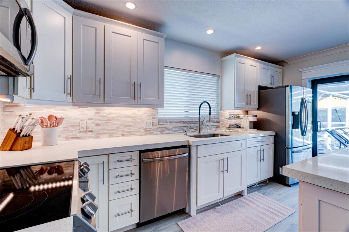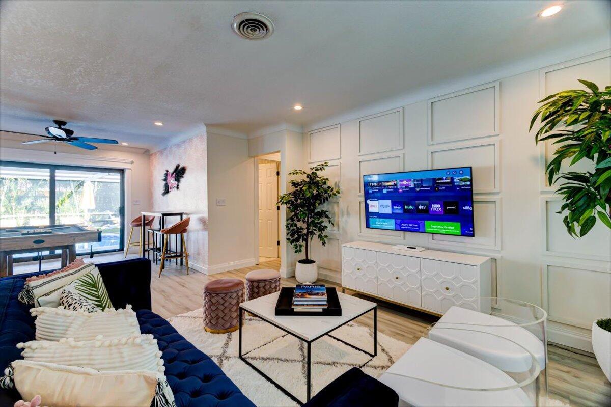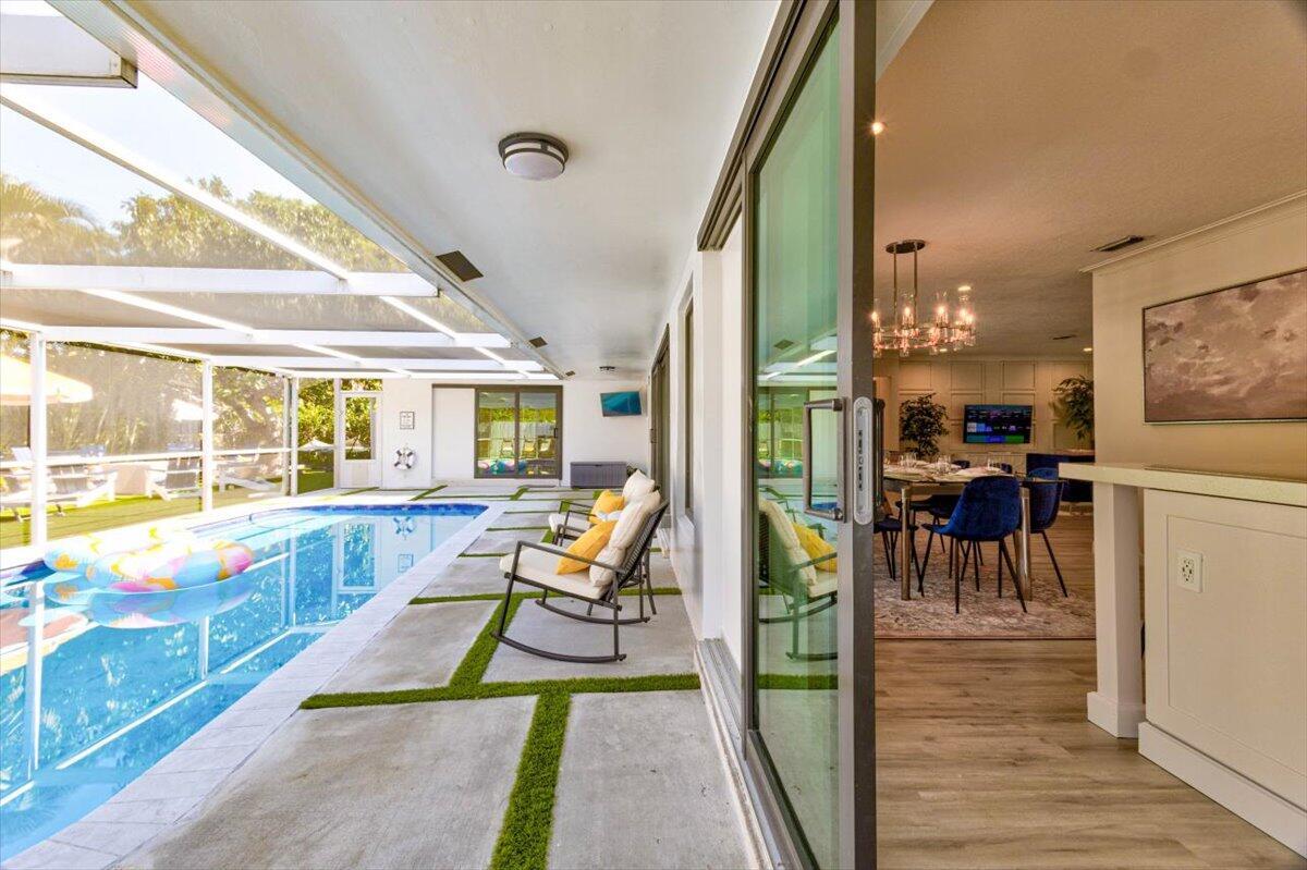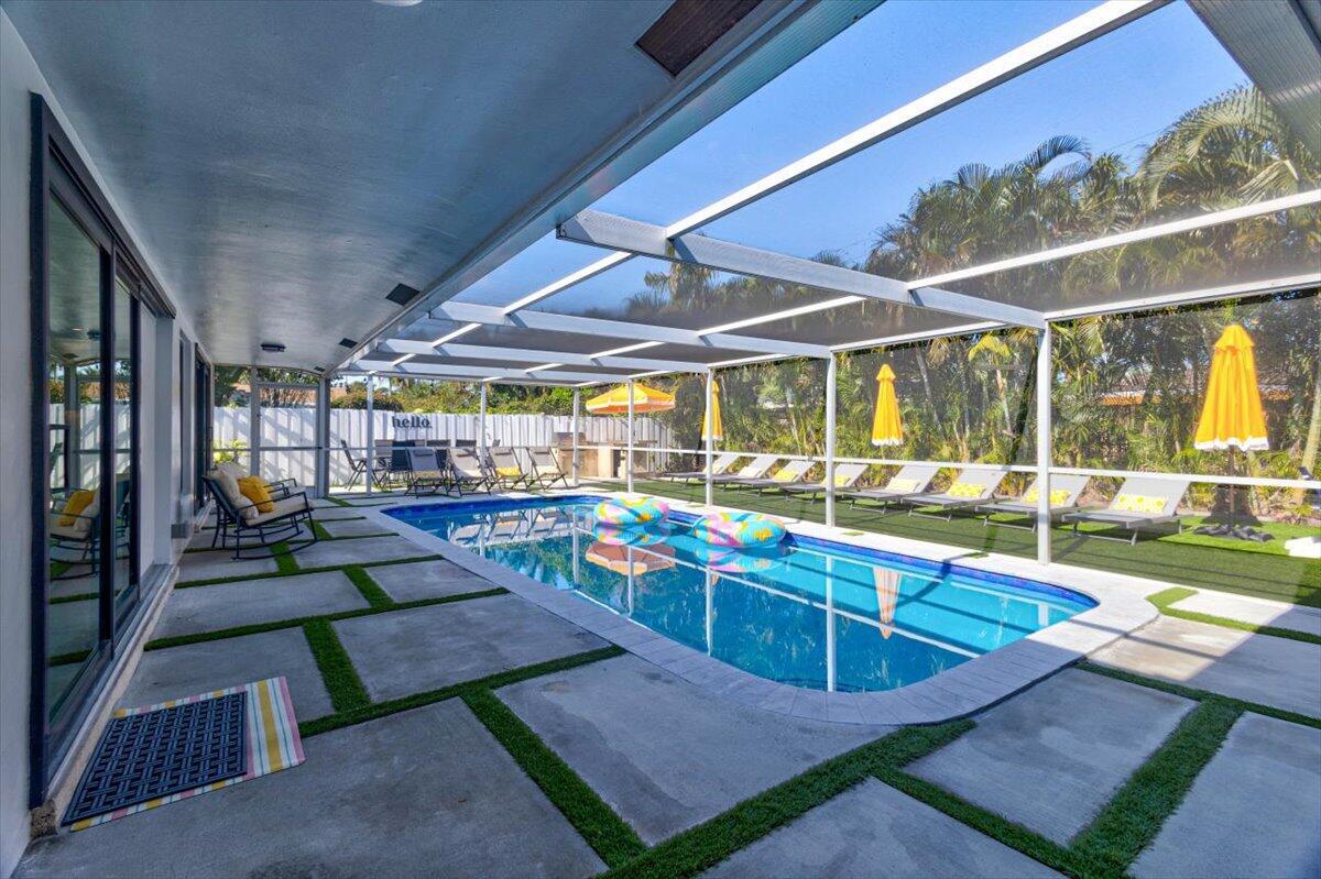 This charming 4 bedroom 2 bath home offers comfort and style. The interior boasts new floors throughout the space creating a fresh ambiance. Pocket infinity sliding glass doors lead you to a backyard oasis including a private salt water pool and outside entertainment. All high impact windows and doors included as well as a brand new AC unit. This home is ready to provide a relaxing and enjoyable living space in Fort Lauderdale.