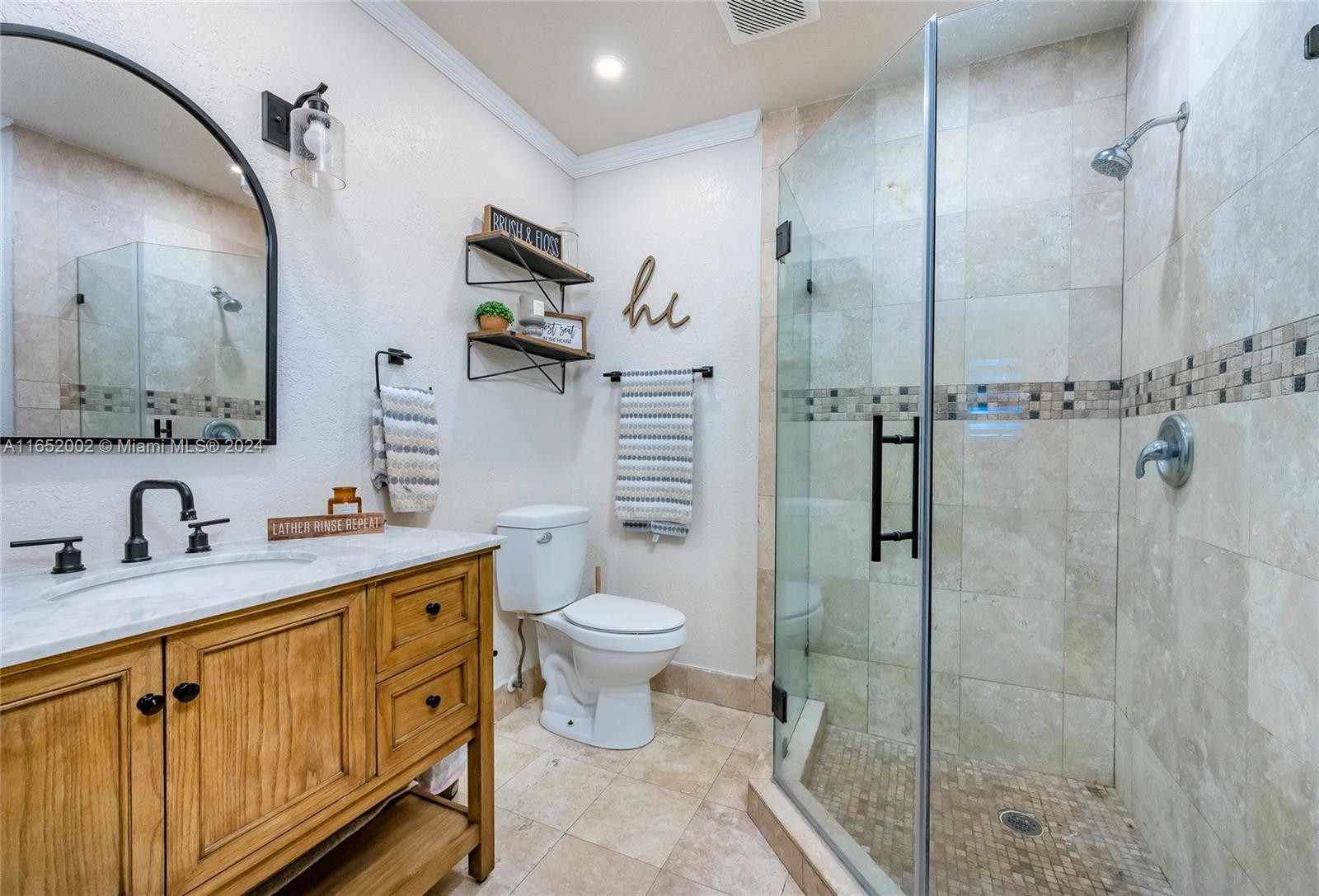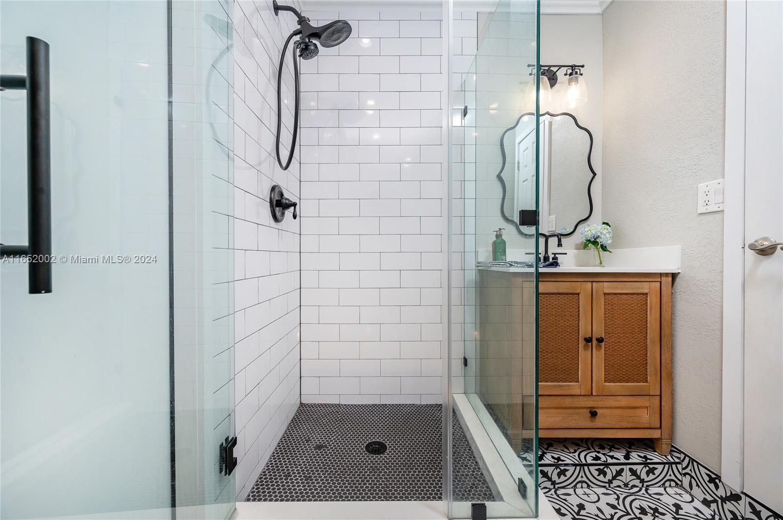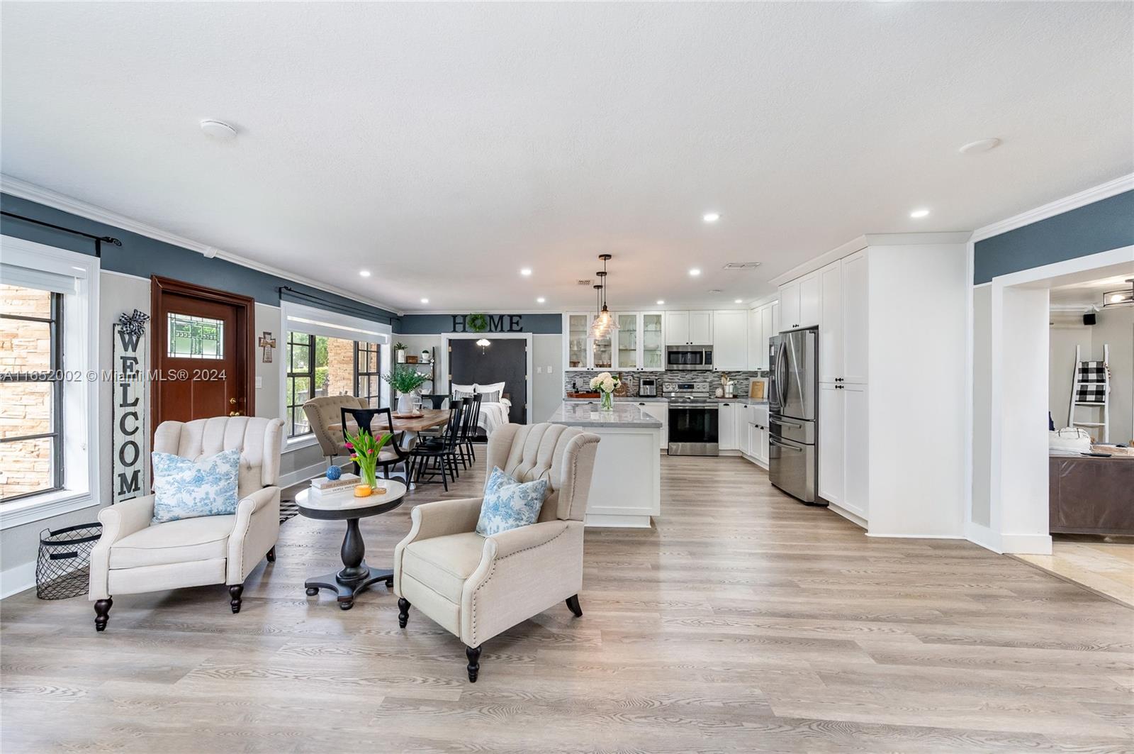 Discover this beautifully updated farmhouse-chic pool home in Hialeah's Palm Springs area, offering signficant savings thanks to its energy-efficient solar panels. The open-concept living space invites you to unwind by a sleek electric fireplace, perfect for cozy conversations. The kitchen boasts shaker wood cabinetry, quartz countertops, and stainless steel appliances, all centered around a spacious island. This well-designed floor plan offers two primary en-suite bedrooms and a family room with French doors opening to a travertine-covered terrace. Enjoy outdoor entertaining by the saline pool with its modern waterfall feature. The fenced backyard includes dual side gates for easy access. Conveniently located near Palm Springs Middle, SR826, major roads, hospitals, shopping, and dining.