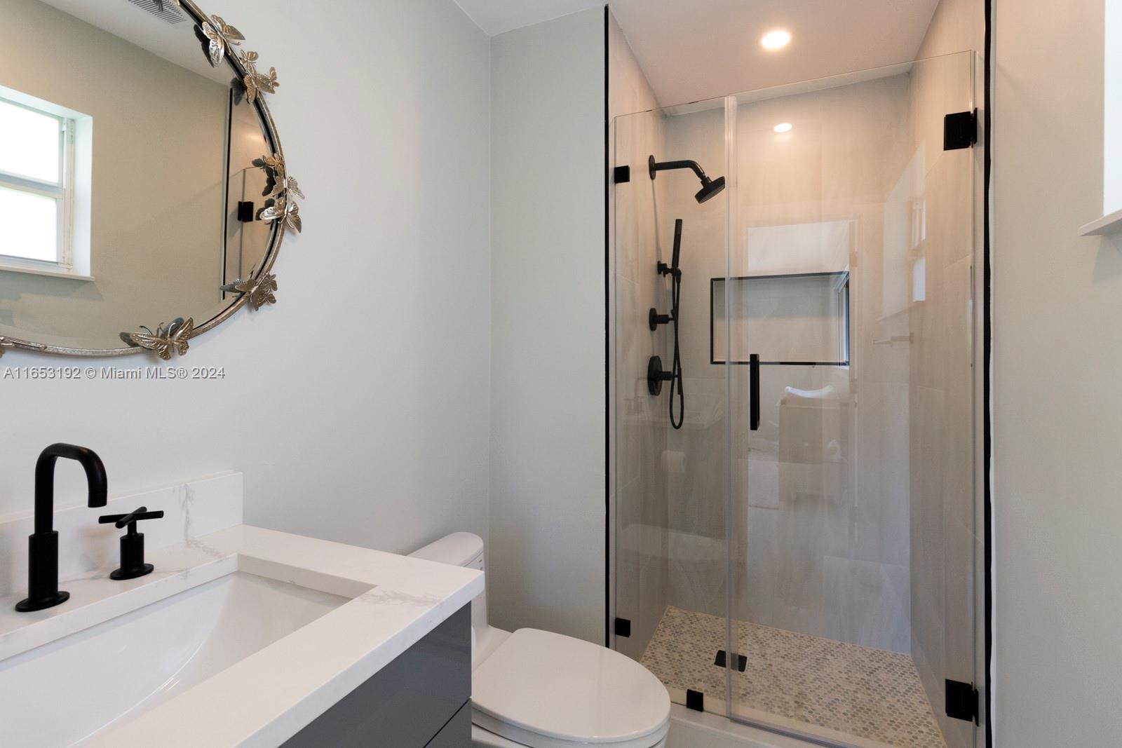 Beautifully updated central Pinecrest 4/4 family home on a nice quiet street! Tons of recent upgrades including: 2018 roof still under warranty, impact glass windows and impact French doors throughout, 2021-2022 full bedroom and bathroom modern remodel, newer plantation shutters and motorized shades, newer dishwasher, microwave, washer/dryer, and more!. Marble, wood, and porcelain floors throughout. Ideal split floor plan with big living spaces, and a huge primary suite featuring dual closets, an office, and the new luxurious state-of-the-art primary bathroom. Nice and relaxing pool-patio (facing south) with plenty of entertaining patio space along with plenty of grass and privacy to run around as well. Walk to Palmetto Elementary/Middle/Senior High.