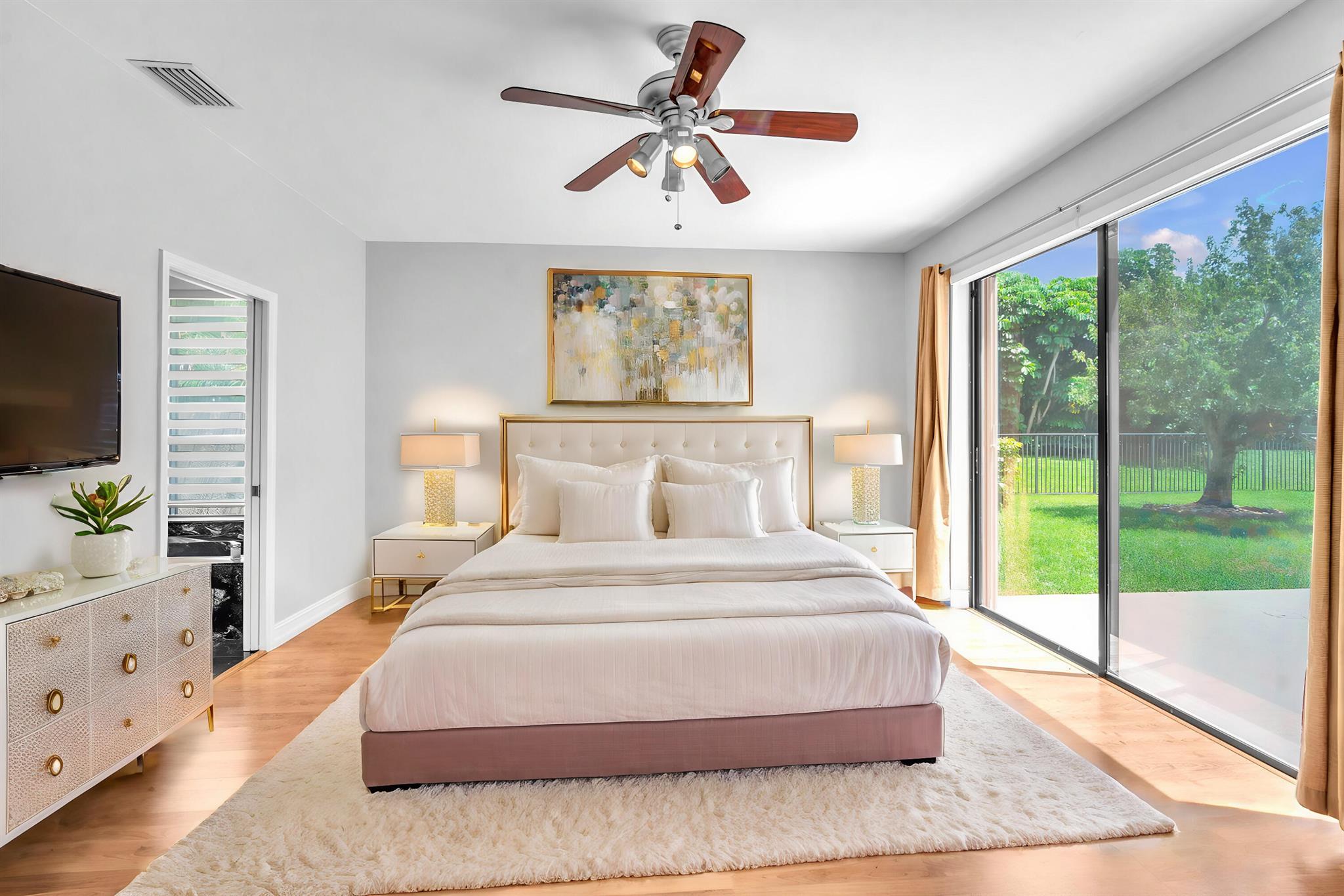 Discover Tequesta, Weston's best-kept secret, nestled next to Peace Mound Park in a guard-gated community. This stunning 4-bedroom, 3-bathroom home sits on a tranquil 1/3-acre lot at the end of a cul-de-sac. The property features a circular driveway, an oversized 2-car garage, a private pool, and a fully fenced backyard.Step inside to a split floorplan with 17-foot high ceilings and spacious common areas adorned with 32x32 porcelain tile. The bedrooms feature laminate wood flooring for a warm and inviting feel. The elegant living and dining rooms lead to a gourmet kitchen equipped with stainless steel appliances, oversized quartz countertops, and lacquered Italian-style cabinets. The expansive family room, complete with a dual-head ceiling fan and breakfast area, is perfect for