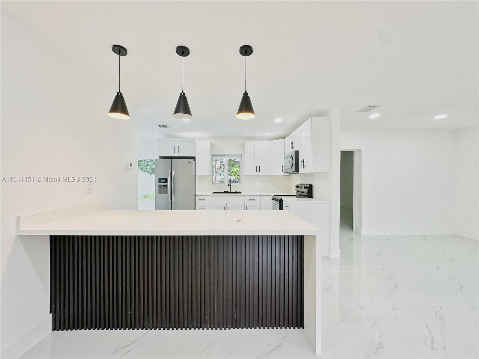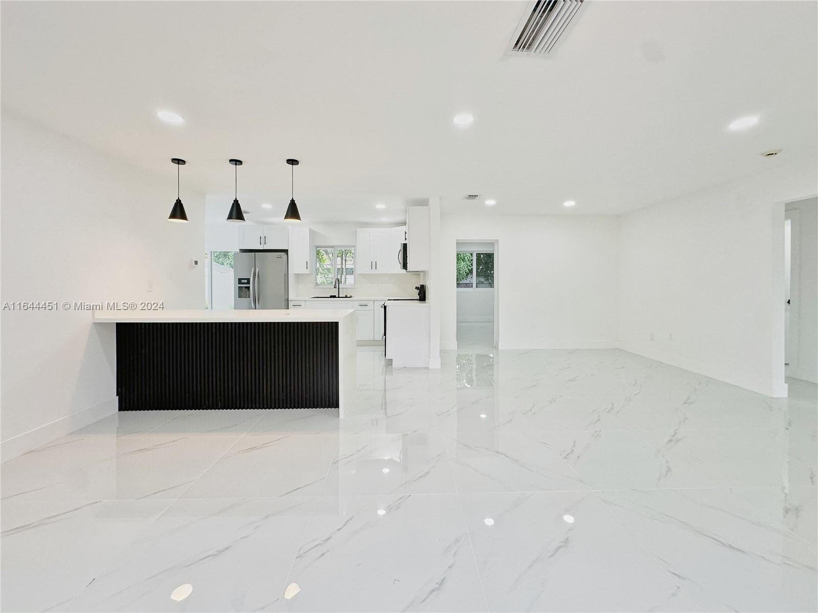 TOTALLY REMODELED! Stunning Home 3 Beds 2Baths plus Den, Brand new kitchen cabinets and quarts countertop, bathrooms have been meticulously designed for modern living, the home features freshly painted interiors and exteriors. New Porcelain flooring throughout adds a touch of elegance. Driveway provides ample parking space. NEWLY INSTALLED COMPLETE ROOF and new partial impact windows, Step outside to the serene backyard, where you can relax under the shade of fruit trees. The paved terrace is perfect for outdoor entertaining, and the privacy fence ensures your peace and tranquility. Located close to parks, schools, shopping, and major roadways, this home offers convenience and comfort. Don’t miss out!