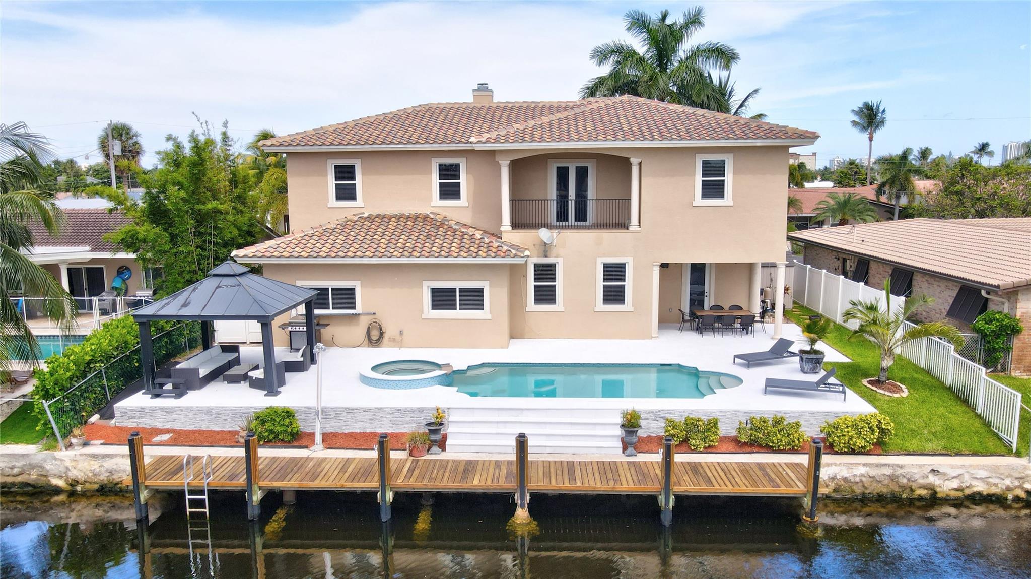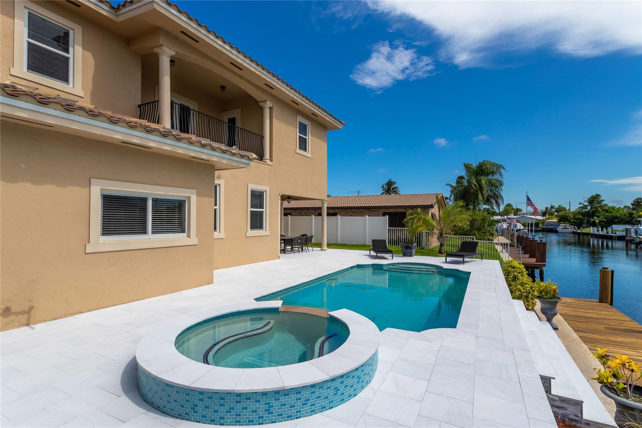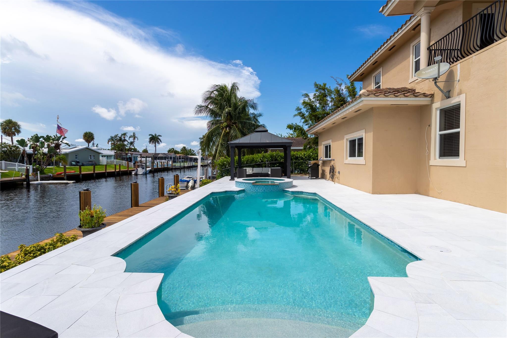A BOATER'S PARADISE!! BRING YOUR VESSEL HOME TO THIS EXQUISITE TWO-STORY GEM, COMPLETE WITH A PRIVATE DOCK OFFERING EFFORTLESS OCEAN ACCESS. CONSTRUCTED IN 2004, THIS MODERN 4-BEDROOM, 4-BATHROOM RESIDENCE SHOWCASES IMPECCABLE TASTE AND CRAFTSMANSHIP. THE PROPERTY BOASTS AN EXPANSIVE OPEN FLOOR PLAN, SOARING CEILINGS, AND ELEGANT MARBLE FLOORS. THE CHEF'S KITCHEN FEATURES AND ISLAND CENTERPIECE, PERFECT FOR ENTERTAINMENT. ADDITIONAL HIGHLIGHTS INCLUDE A NEWER ROOF, IMPACT WINDOWS, FRENCH DOORS, A NEW AC UNIT, AND NATURAL GAS SERVICE. LUXURIOUS MASTER SUITE OFFERS A PRIVATE BALCONY WITH STUNNING WATER VIEWS. OUTSIDE, ENJOY A 2017 SALTWATER HEATED POOL WITH A JACUZZI, COMPLEMENTED BY NEW BRAZILIAN POOL DECK PAVERS AND LED DOCK LIGHTS. BUILT WITH CUSTOM FINISHES AND ARRAY OF LUXURY FEATURES.
