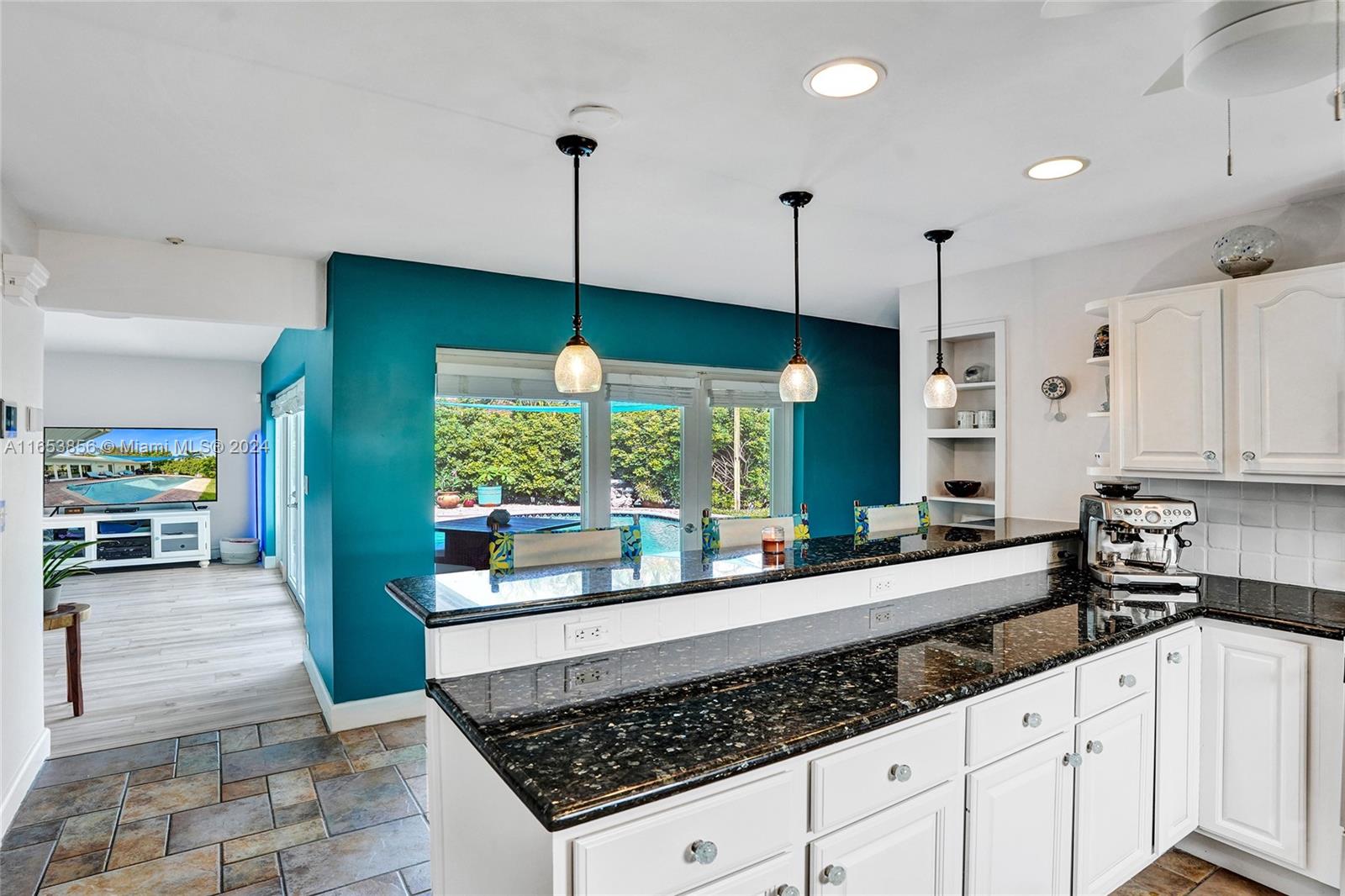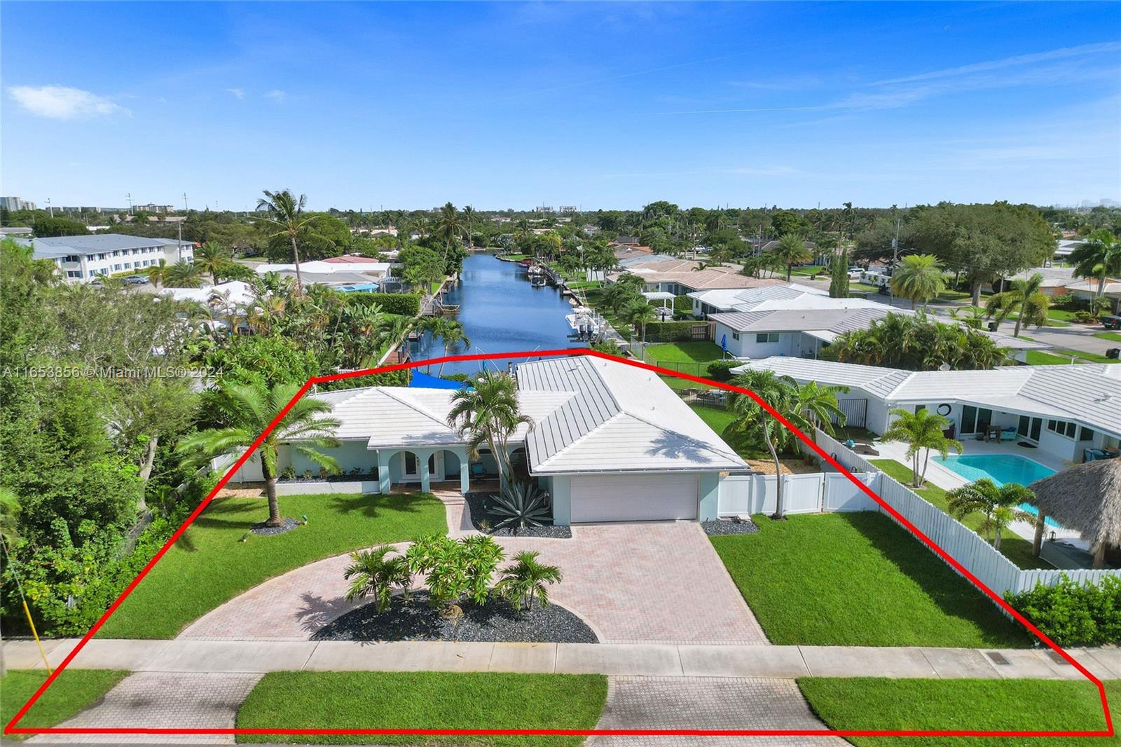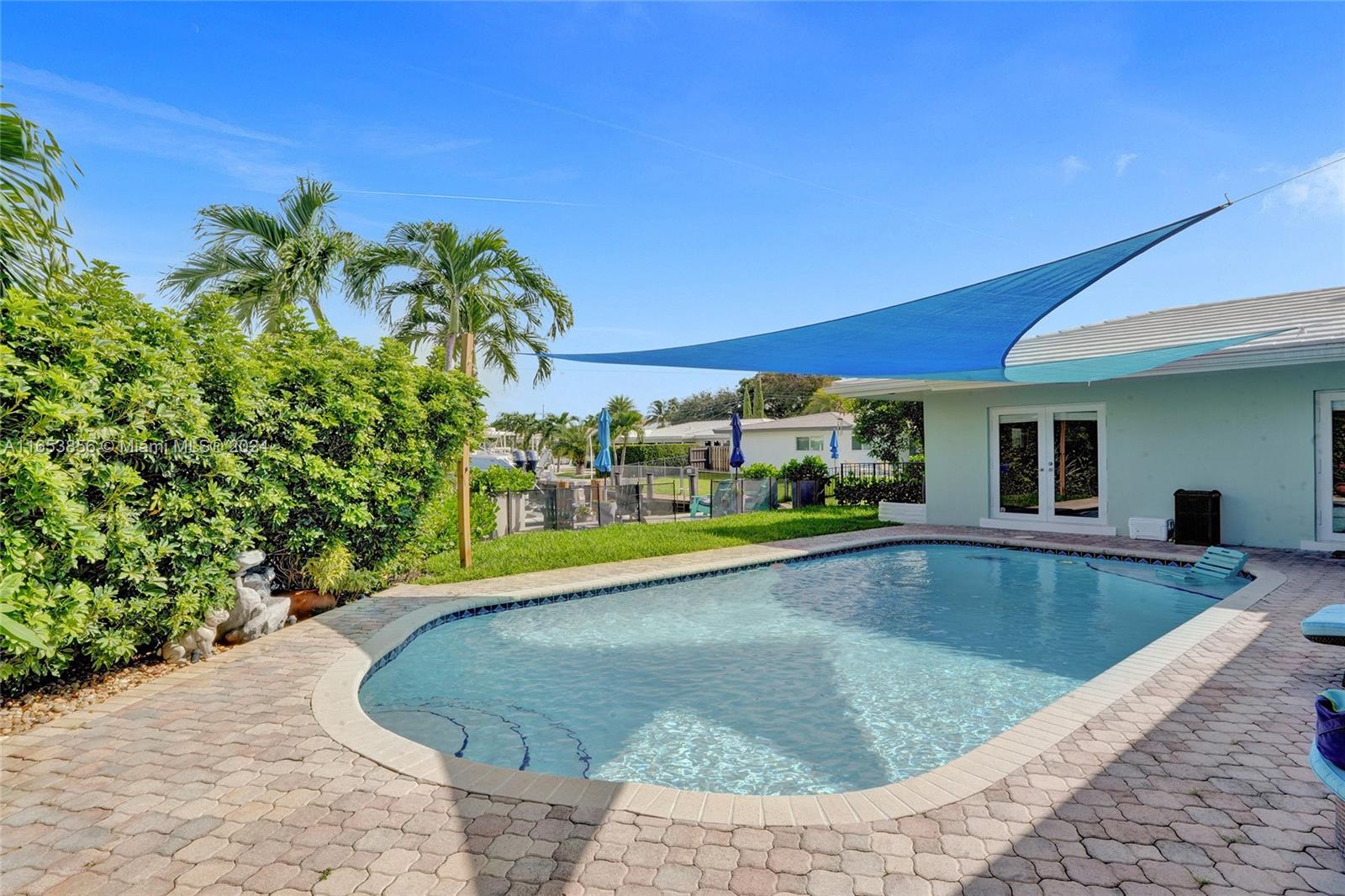 Luscious views from every room of this stylishly completely renovated & EXTREMELT RARE "down the canal" waterfront diamond! Countless updates include impact windows, raised seawall, cement dock, resurfaced saltwater pool & pump, 220v EV charging, completely fenced, resealed roof, smart home, surround sound, HWH & more!. Split open floor plan (check pics), choose between 2 primary suites each with private full bath & plenty of closets on either end of the home. All furniture negotiable including the boat! Just unpack & enjoy your canal lifestyle just in time for the winter. Only 1 fixed bridge to the intracoastal. No HOA, no restrictions; possibly do AIRBNB when not using the home and earn $$. Backyard oasis is perfect for entertaining! Mins to the beach. Hexagon shaped lot maximizes space!
