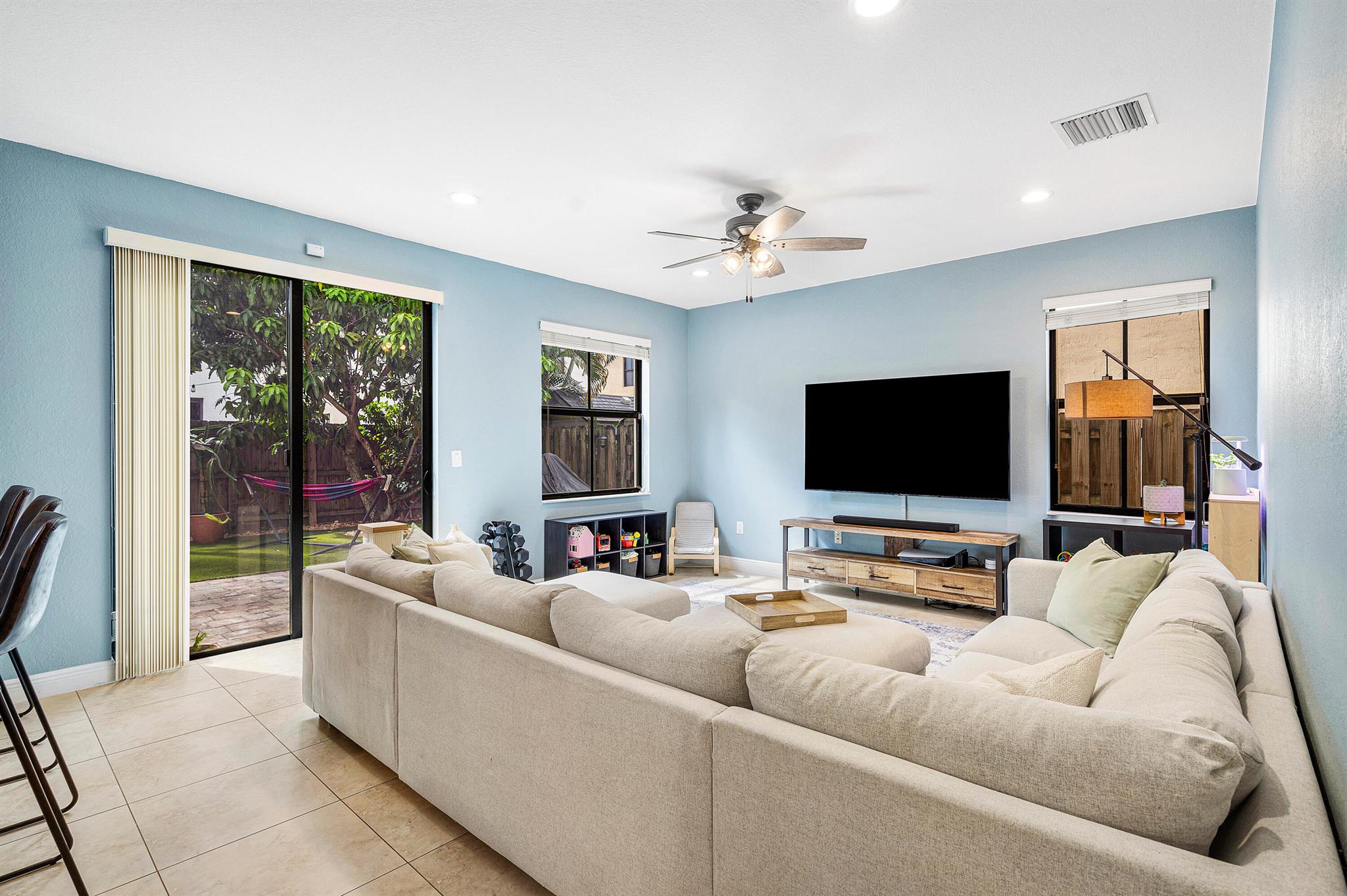 Spacious 4 bedrooms, 3 full bath home available in the highly desired Isles at Grand Bay Estates in Doral. This home has impact windows, updated washer/dryer (2022), refrigerator (2023), stainless steel appliances, double oven, wine cooler fridge, pantry, jacuzzi/spa tub and more. Fully fenced backyard features fruit trees, artificial grass for easy maintenance, solar patio lights, rain gutters and 2 French drains, ceiling storage added in garage. Home is set up for ADT Security, has Google cameras/doorbell and thermostat. Grand Bay's beautiful gated community has 24 hr. security with an onsite community park and additional access to Park Central Doral's resort-style amenities. Located near parks, schools, shopping, restaurants and major highways.