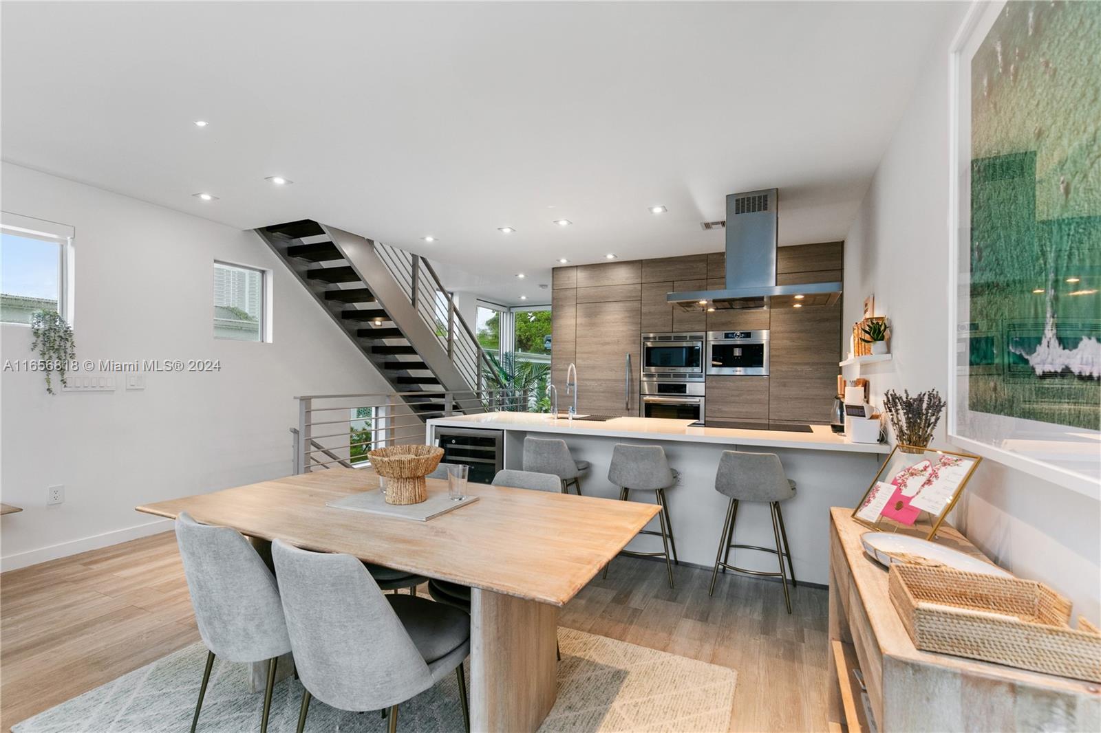 One of a kind three story, 3/3.5 Townhome with private 2 car garage, common rooftop terrace. Professionally designed lighting plan, individually controlled climate zones on each floor, automatic shade controls. ALNO kitchen with Bosch appliances featuring built-in refrigerator, dual zone wine fridge and espresso maker. ALNO bathroom cabinets with Duravit and Hansgrohe fixtures. Floor to ceiling windows in living room and master bedroom. Total Square Footage including garage, balconies and roof top is 2270. Fully gated building. BRING YOUR CLIENTS, IT WON’T LAST.