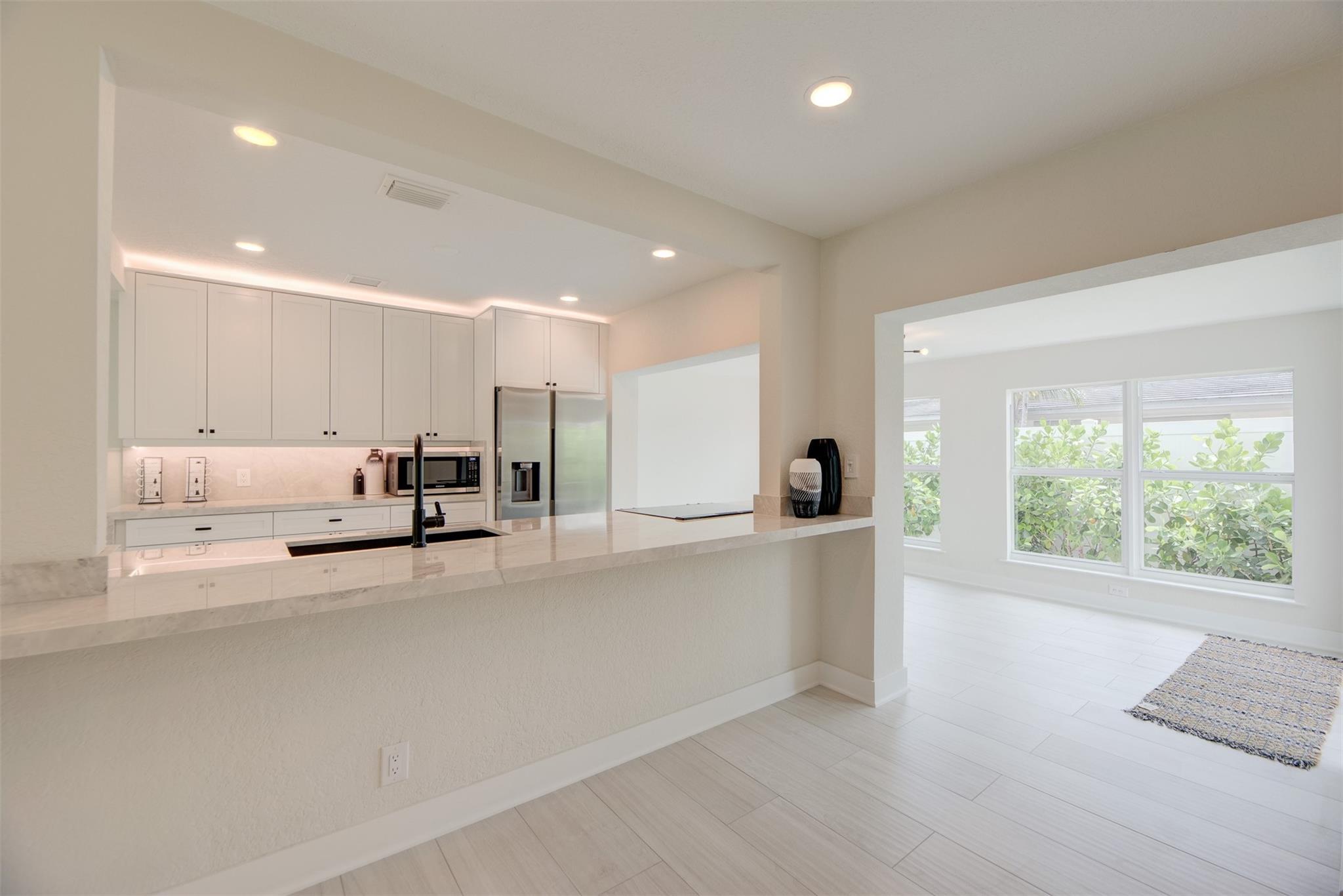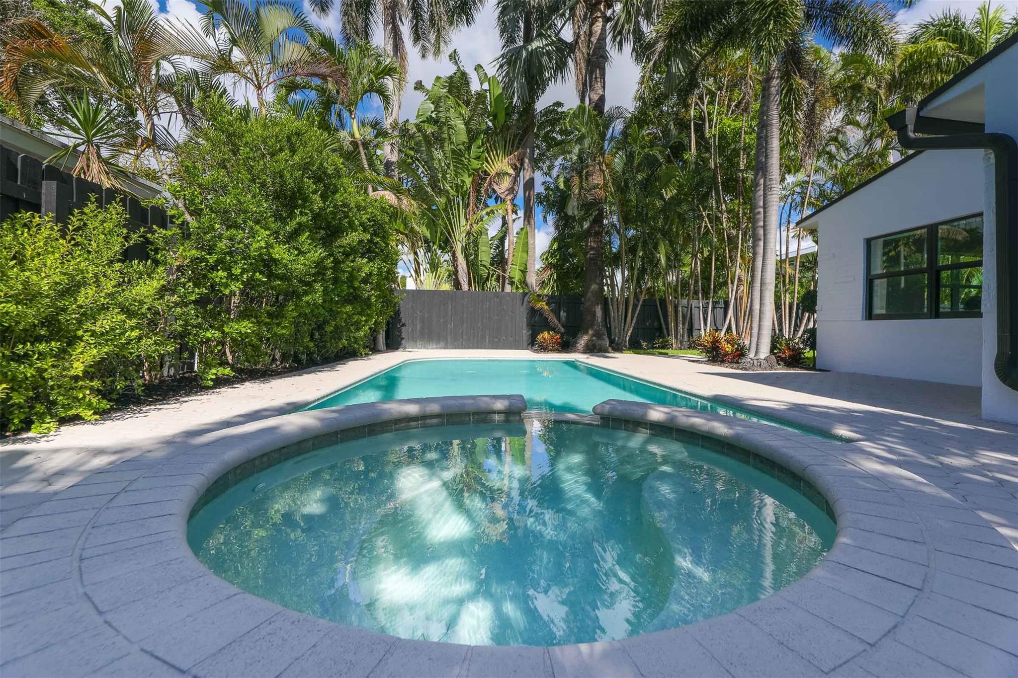 3 bed/3 bath Victoria Park pool home (almost 1900 sf) with koi pond (walking distance to beach, restaurants and entertainment) large master with den; all impact windows and doors; new roof (2024) newer AC (3 yr) and water heater (2 yr); all new ceramic tile flooring; new kitchen with granite and stainless steel appliances; new electric pool heater (1 yr) with waterfall & spa; updated electric; mature tropical landscaping; interior laundry room; completely fenced for tropical privacy! Great as a rental/Airbnb as two bedrooms have separate entrances. GREAT SCHOOLS! HARBORDALE ELEMENTARY!