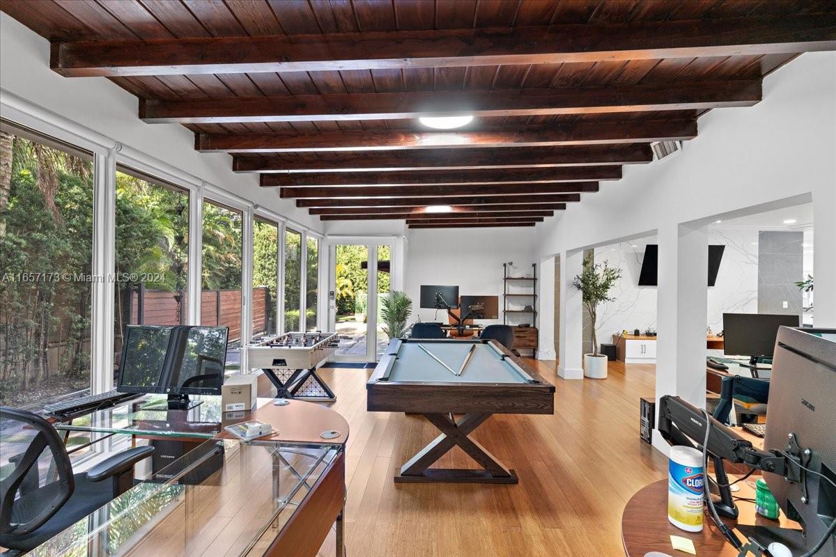 This beautiful and spacious corner property features 5 bedrooms, 4 bathrooms, amazing pergola beautifull pool, a circular driveway, Solar Panels , cover garage, an upstairs deck, and plenty of family, dining, and living room space!! All windows and doors are hurricane impact throughout the home! 3 bedrooms and 2 bathrooms are conveniently on the 1st-floor level and 2 bedrooms with 1 full bathroom are upstairs.