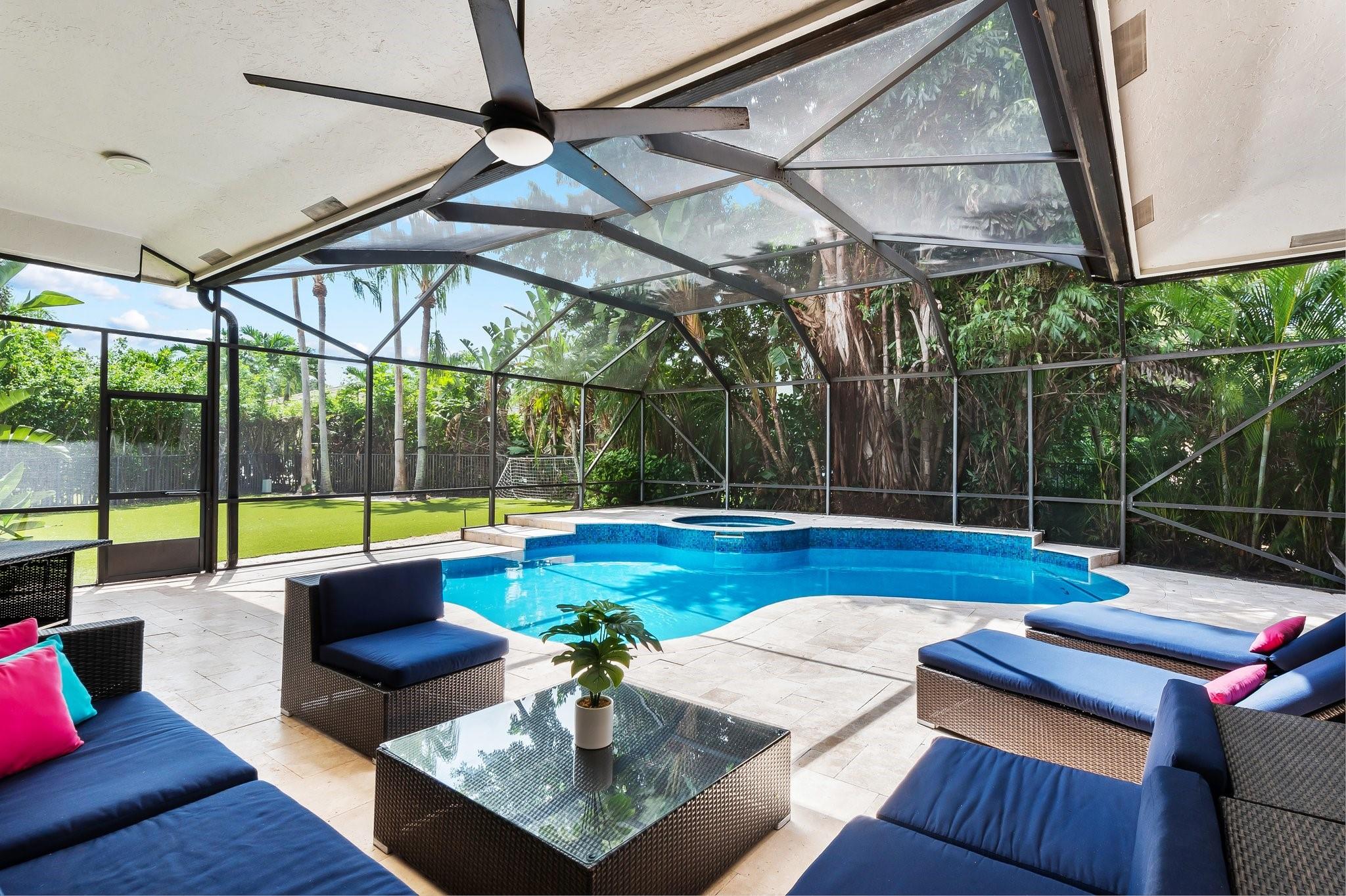Prepare to be captivated by this impeccably remodeled 5-bedroom, 3.5-bathroom pool home, nestled on an expansive cul-de-sac lot in one of Weston’s premier boutique communities—The Landings, comprised of only 243 homes! This stunning property features a renovated kitchen adorned with top-of-the-line Bosch appliances and an expansive island, perfect for entertaining family and friends. Escape to the serenity of the remodeled, enclosed saltwater pool and hot tub with a new heater. A large covered patio leads out to a huge turfed yard, complemented by a circular driveway. Modern features include electric car charging, an electric fence, and a combination of impact windows and accordion shutters. Dual zone AC replaced 2 years ago and roof replaced 8 years ago!