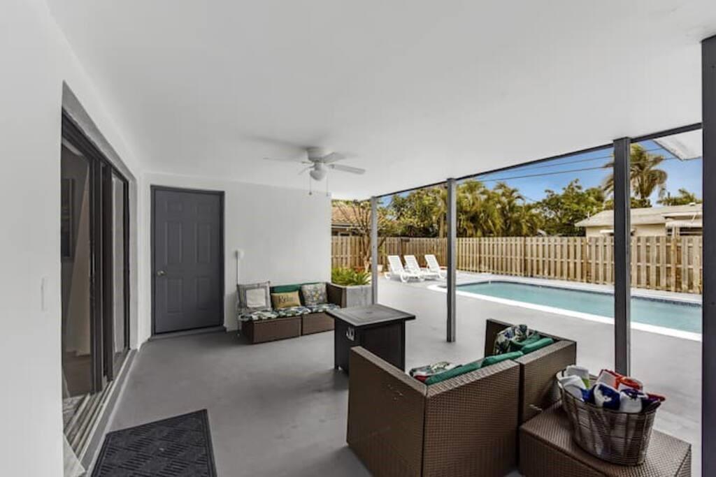 Experience your own slice of Florida paradise with this beautifully remodeled 3-bedroom, 2-bathroom pool home in the coveted Pompano Beach Estates, just a short walk from the beach. With no rental restrictions and certified as a vacation rental, this property is a perfect addition to an Airbnb portfolio. The home boasts an open layout that floods the space with natural light and elegance, featuring sliding doors that lead to a spacious porch and a picturesque pool view. Additional highlights include a circle driveway, a one-car garage, a modern kitchen with granite countertops and stainless steel appliances, and a new A/C system.