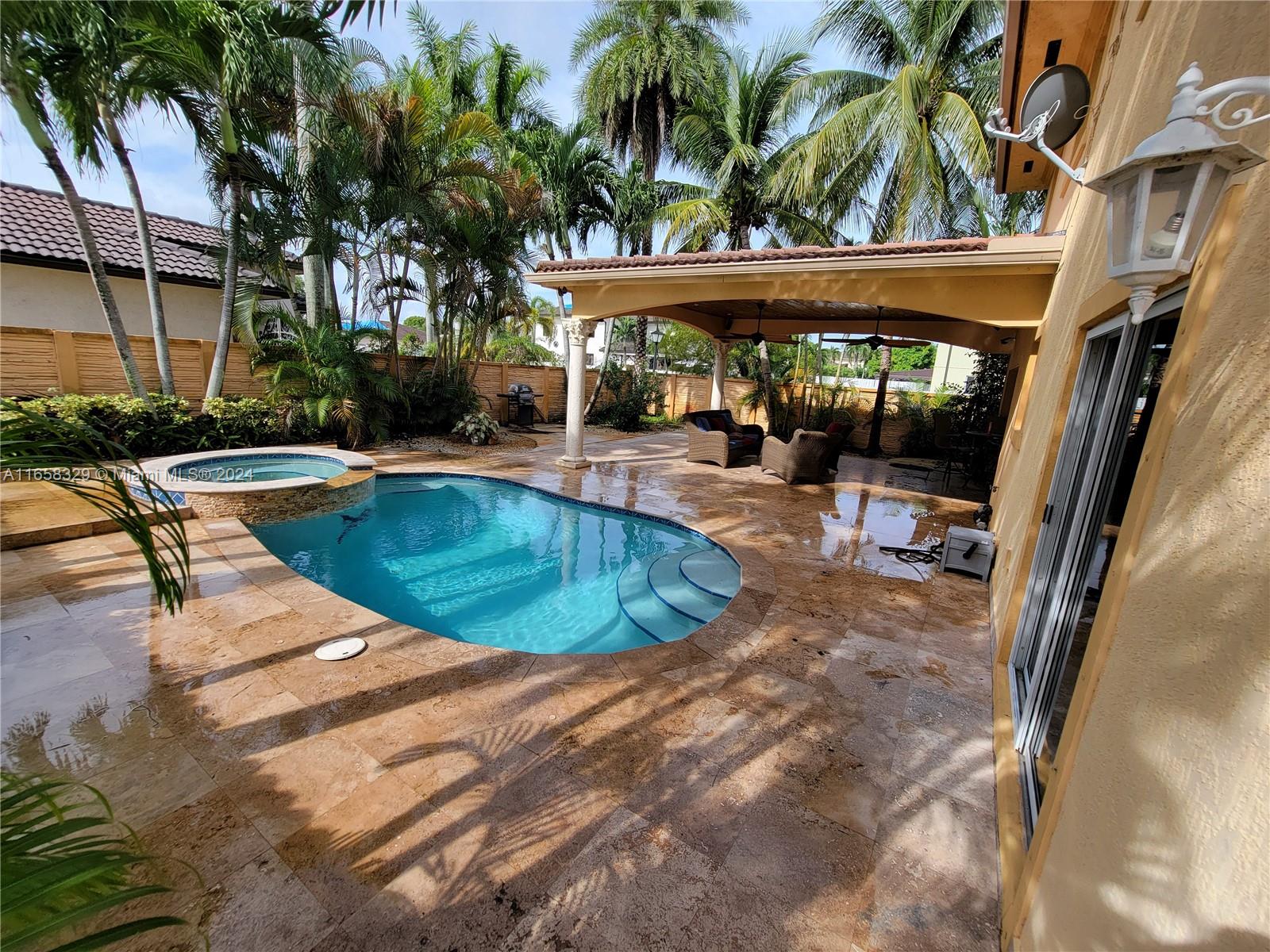 Charming 4 bed, 2.5 bath corner home that offers comfort and luxury. This inviting residence boasts a spacious layout with a thoughtful design ideal for both entertaining and everyday living. Step outside to your own private oasis: complete with a sparkling pool and relaxing jacuzzi, surrounded by a decorative concrete fence that ensures both privacy and style. Whether you’re hosting summer barbecues or simply unwinding after a long day, this backyard retreat is sure to become a favorite spot. 2 car garage with ample storage and parking space. Enjoy the freedom of a property with no HOA restrictions, giving you flexibility and control over your living space. Located just minutes away from schools,shopping centers,dining,banks, and major highways, making daily errands and commutes a breeze