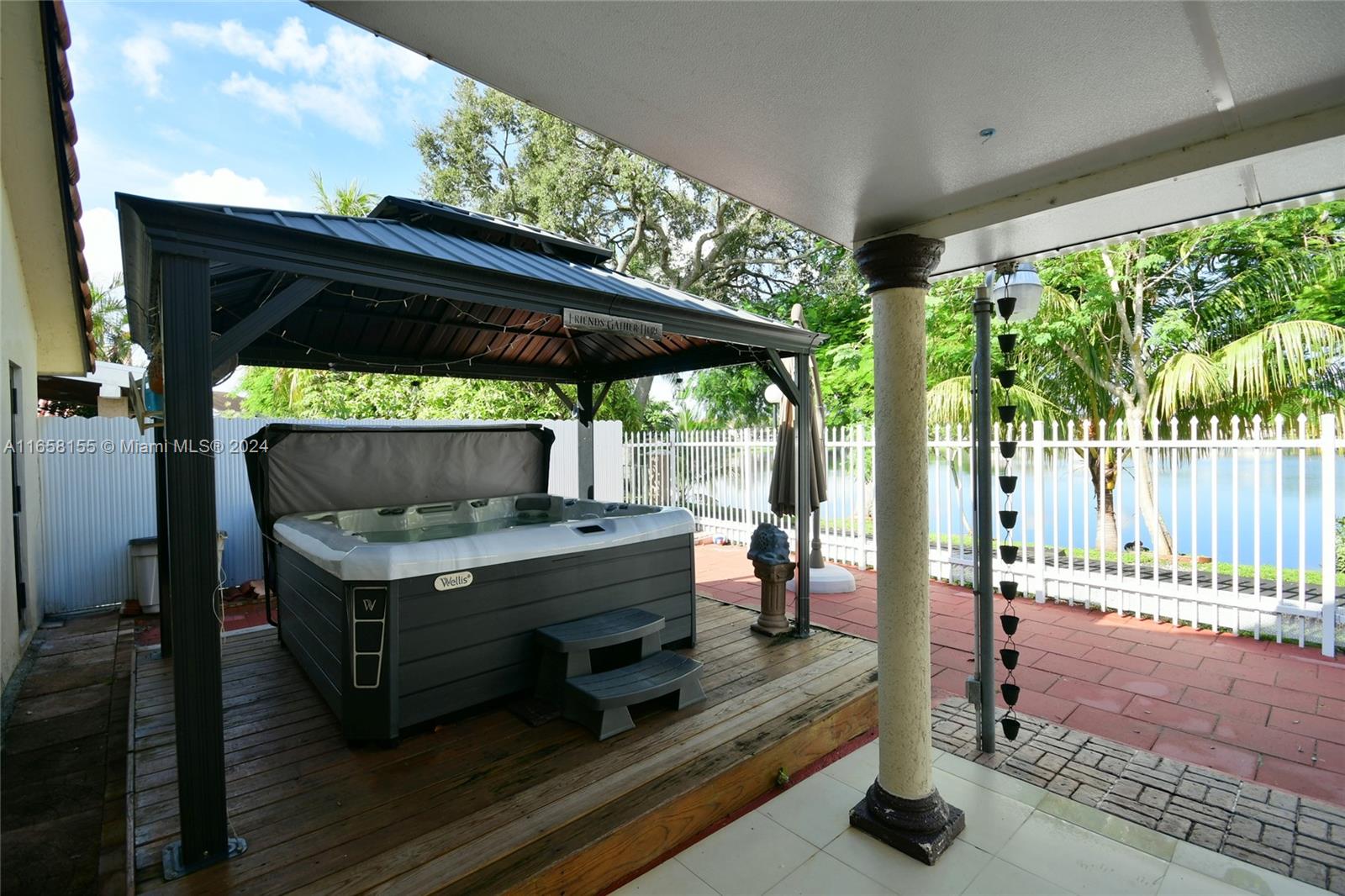 Seller contribution! Discover lakefront living in the highly sought-after community of Esplanade! This 4-bedroom, 2-bathroom gem offers breathtaking sunset views from your inviting paved patio, complete with a covered terrace and a relaxing hot tub. With no rear neighbors, you'll enjoy peace and privacy, while the scenic lakeside path offers the perfect setting for morning or evening walks. The home features a brand new high-impact front door, high-impact windows throughout, and solar panels for energy efficiency. new refrigerator, washer and dryer, new floors, new LED lights, and alarm. With a very low HOA and an unbeatable location just a few minutes from I-75, Miami Lakes, and the future American Dream Miami megamall this property is a must-see!