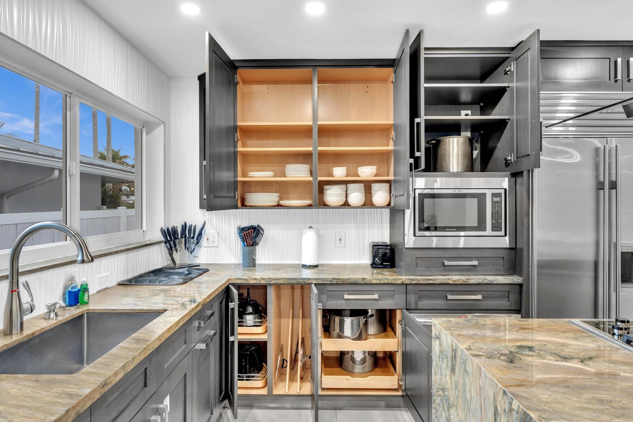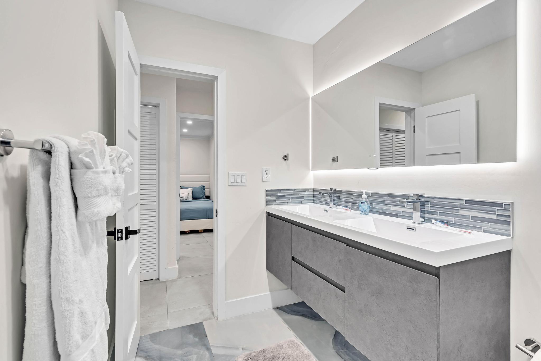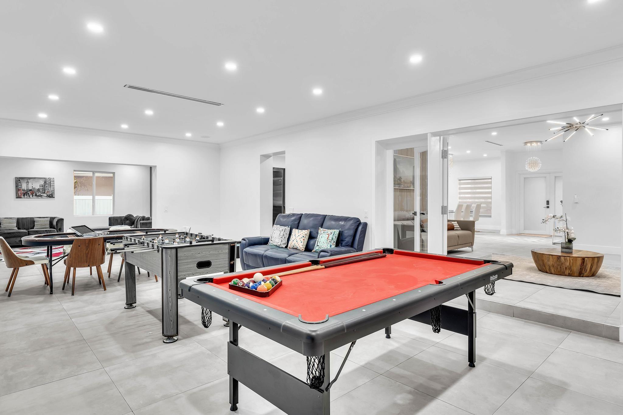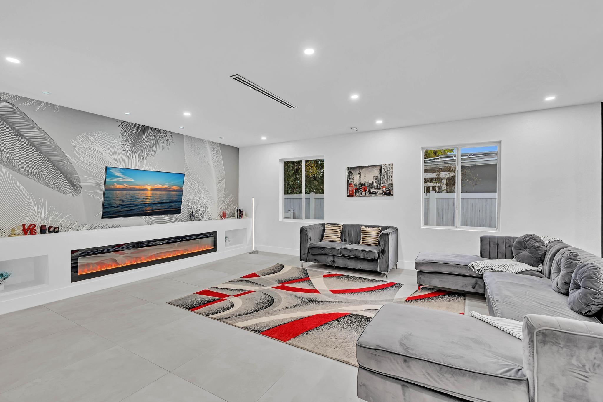 Welcome to this stunning, fully renovated 5-bedroom pool home in a desirable location in Hollywood Lakes. This home has been meticulously upgraded. Every detail has been carefully considered, making it feel like a brand new build. The spacious layout offers multiple living areas, including a formal living and dining room, as well as a bright open chef's kitchen that flows seamlessly into the large family space. The expansive Florida room is perfect for use as a game or play room. Doors throughout the home lead out to the serene pool area, complete with a water fall, cabana bath, outdoor shower and a freestanding jacuzzi. With all the big ticket items already addressed-new bathrooms & plumbing,electrical,AC's impact windows and so much more - this home offers peace of mind of move in ready