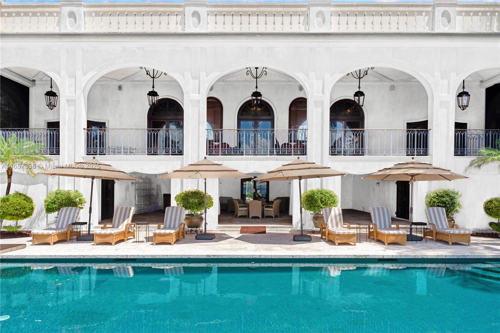 Welcome to an extraordinary European style waterfront estate, where luxury and elegance meet the tranquility of coastal living.This 3-story custom-built masterpiece boasts a spectacular social area with soaring high ceilings, creating an ambiance of grandeur and openness. This estate features 7 lavish bedrooms,7.5 opulent bathrooms, private office, cozy family room, extraordinary chef’s kitchen all designed with meticulous attention to detail and the finest finishes. Step into a world of breathtaking and captivating views, where every window frames the stunning panorama of the bay and the iconic Miami skyline. The outdoor living spaces invite you to enjoy serene and unforgettable sunsets. A sanctuary of sophistication and comfort with dock, garages, elevator, and an unparalleled lifestyle.