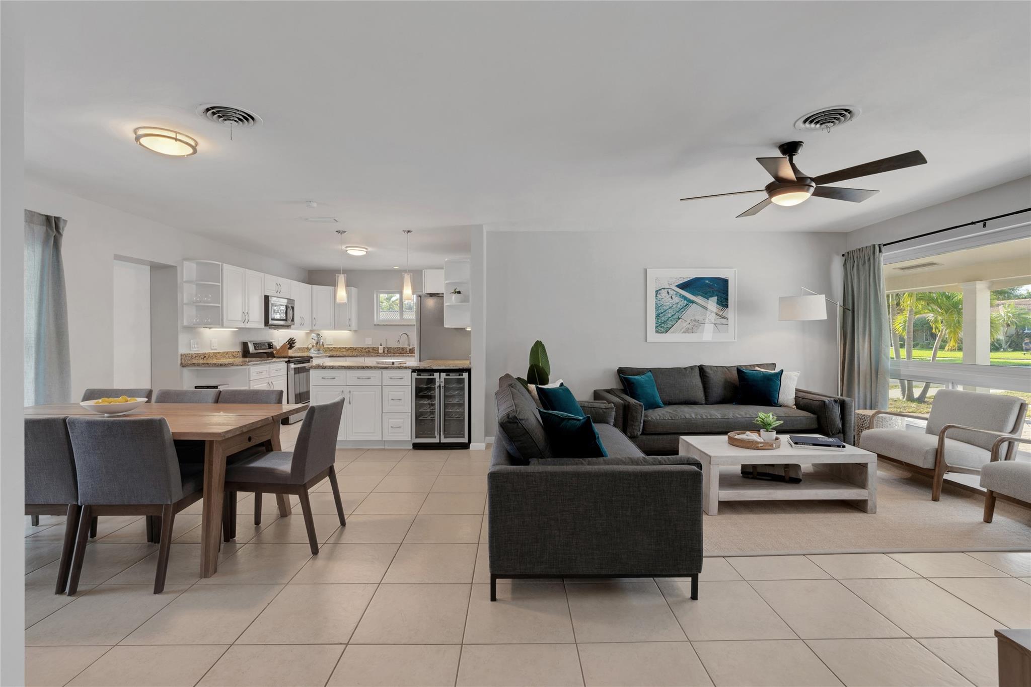 Enjoy this stunning and spacious 4bd/3bath Imperial Point corner home located minutes to shopping, dining, entertainment and the beach! The home comes complete with an updated kitchen including spacious countertop space and stainless steel appliances, Impact windows and doors, 2012 roof, 15000w generator, family/dining areas updated with contemporary fixtures and views of the pool area, six zone sprinklers, undermount and LED lighting, wine cooler and more. Enjoy the beautiful backyard with a pool and dining area providing ample space to unwind and enjoy. This property is a fully licensed and approved short term rental designed by a professional designer with all furniture and items as negotiable, but not included in the asking price. This one won't last!