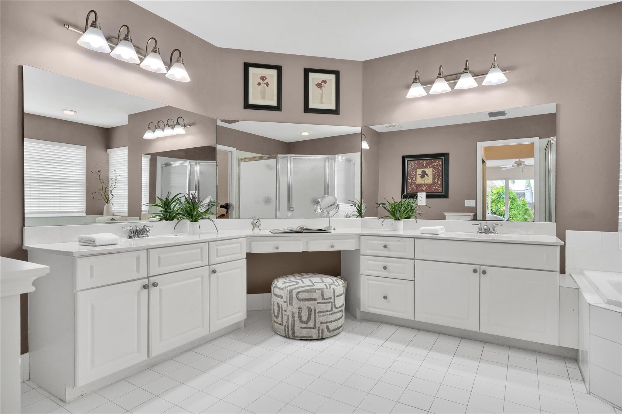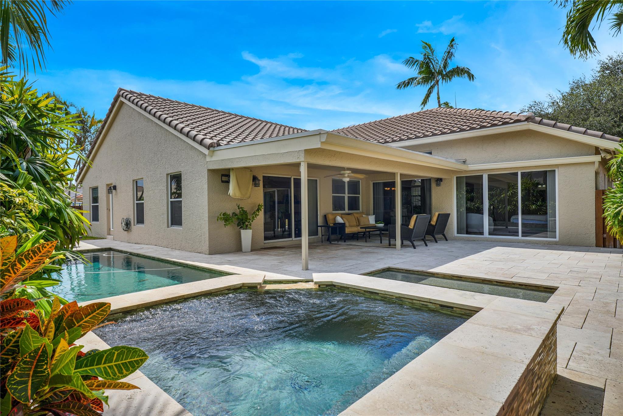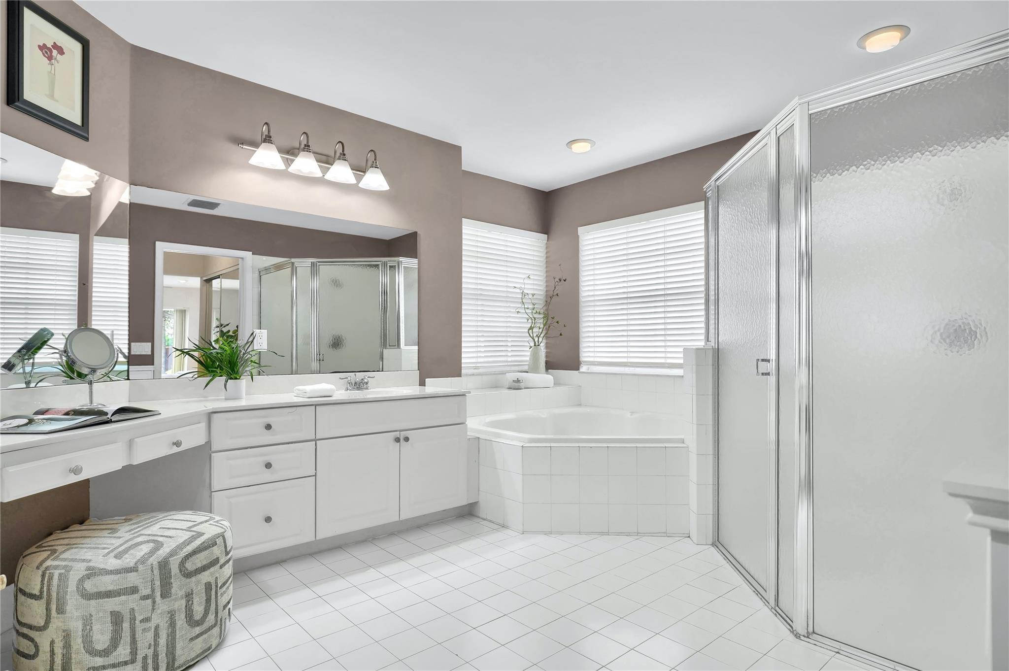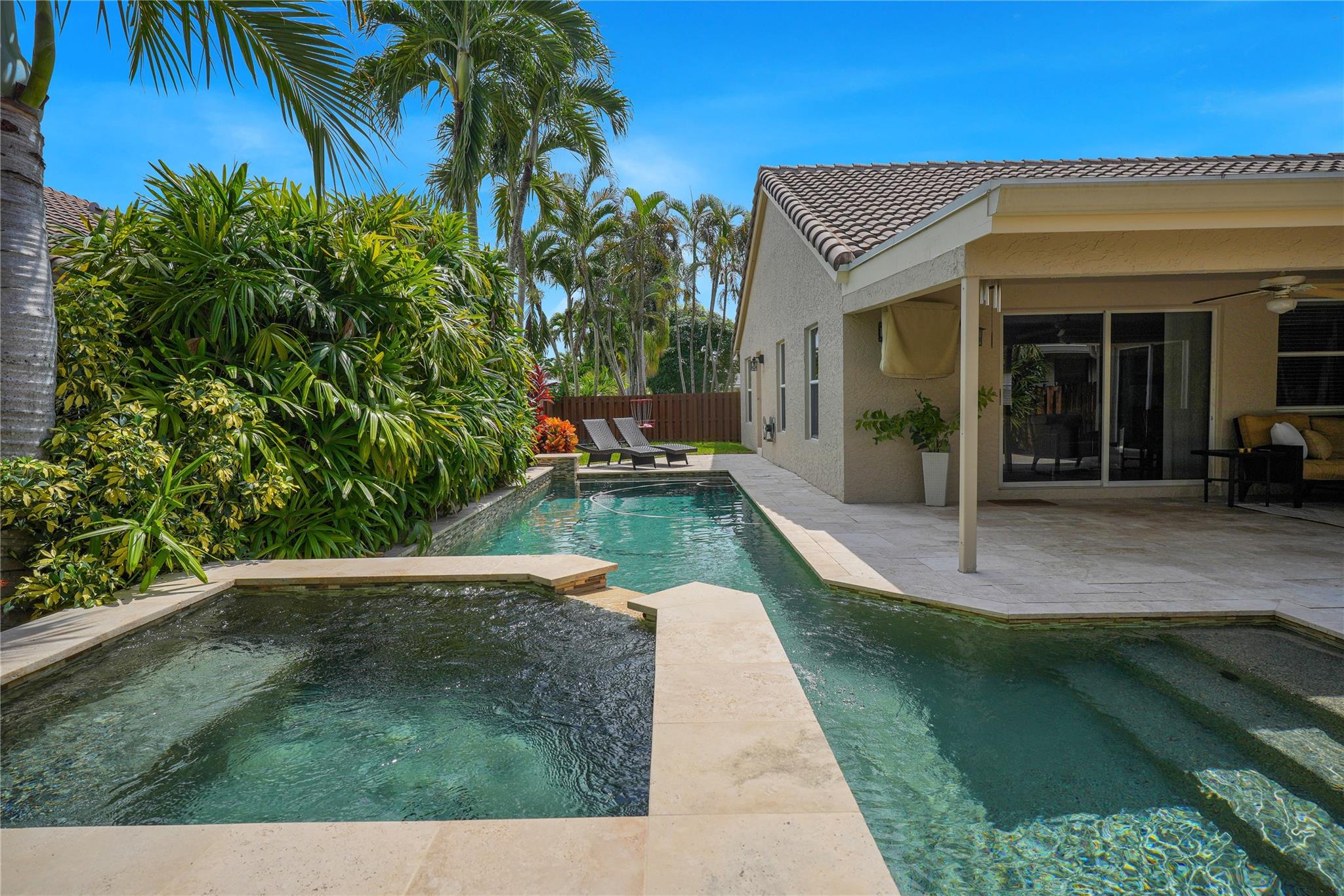 4/3 triple split pool home in sought after & perfectly located The Ridge on Nob Hill! Roof replaced 2022! 3 car garage! Beautiful wood look tile throughout living areas & modern vinyl floors in the bedrooms. Open kitchen has stainless steel appliances (refrigerator newer), pantry, white cabinets, & high ceilings. Extra large family room was extended out when built compared to original floor plan. Spacious primary bedroom w access to pool. 2 walk-in closets! Primary bath w separate tub & large shower. Both guest bathrooms beautifully updated complete w glass shower doors, beautiful tile & vanities! Washer/dryer inside! Gorgeous outside oasis w lush landscaping & perfect for entertaining large covered patio! Travertine pavers surround your modern pool & spa. Exterior painted 2022.