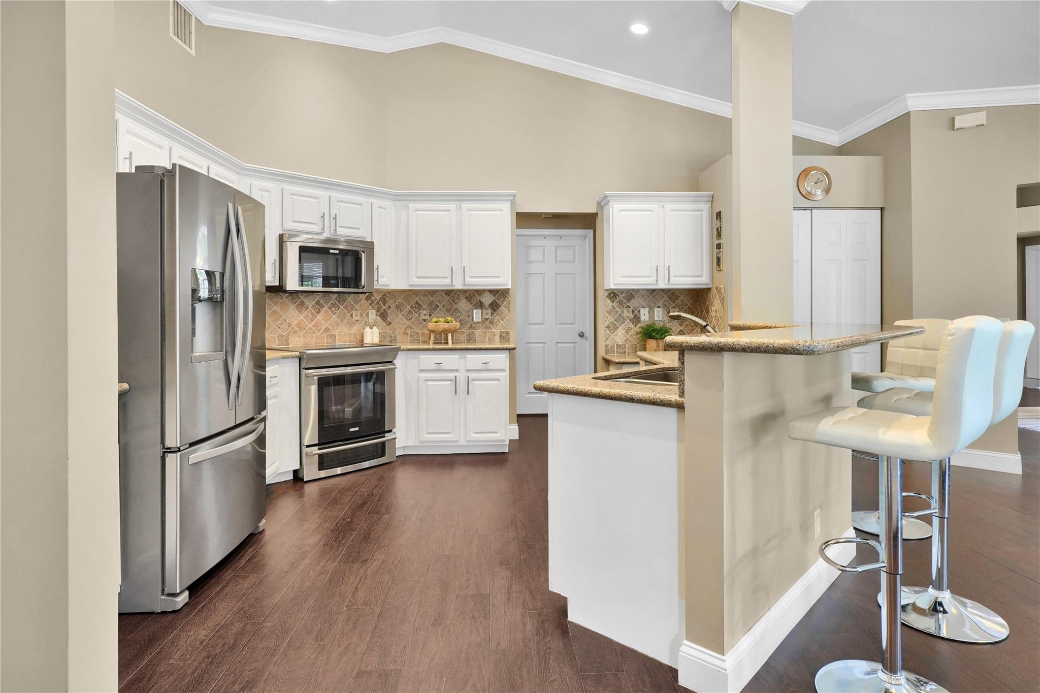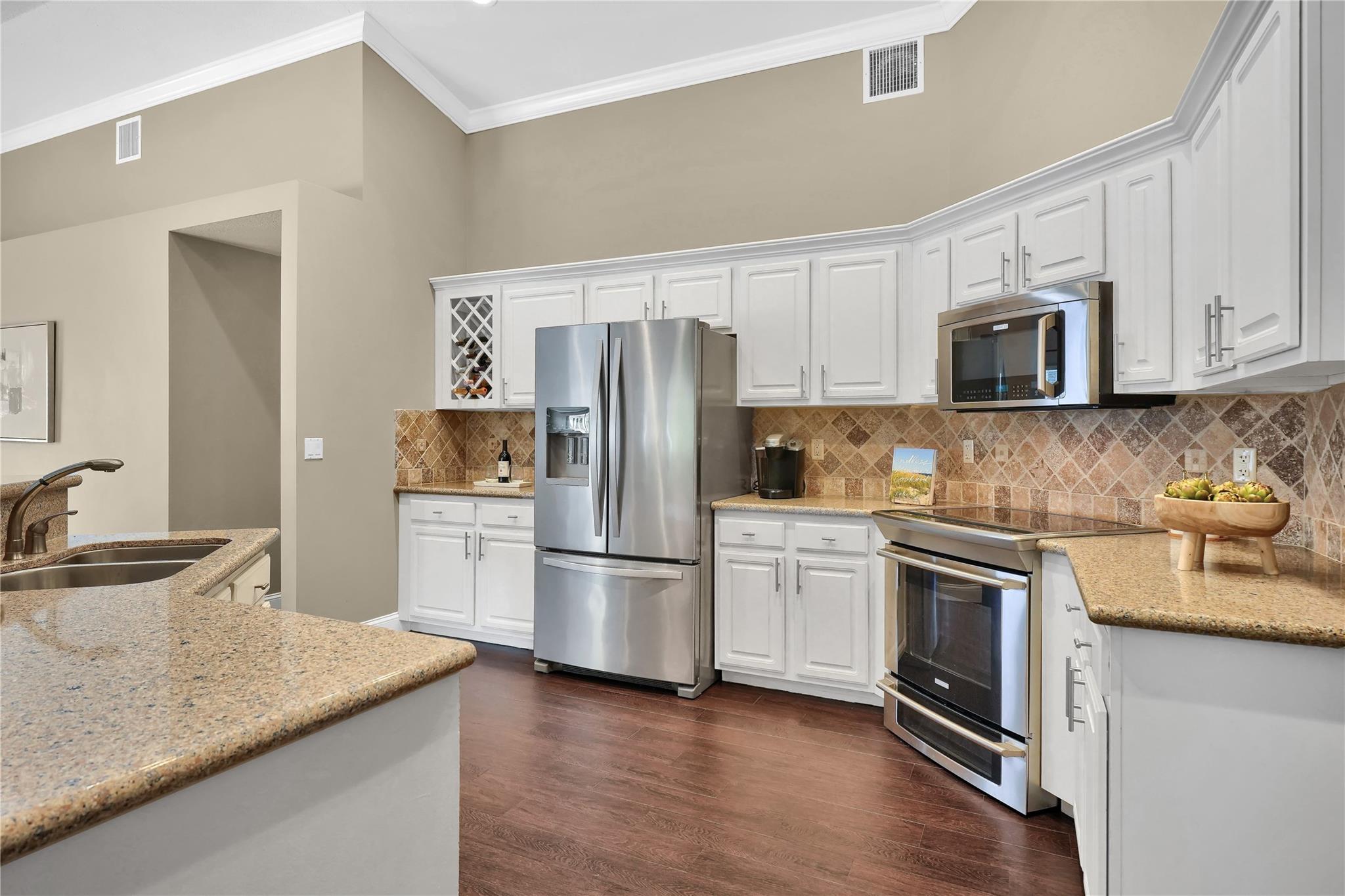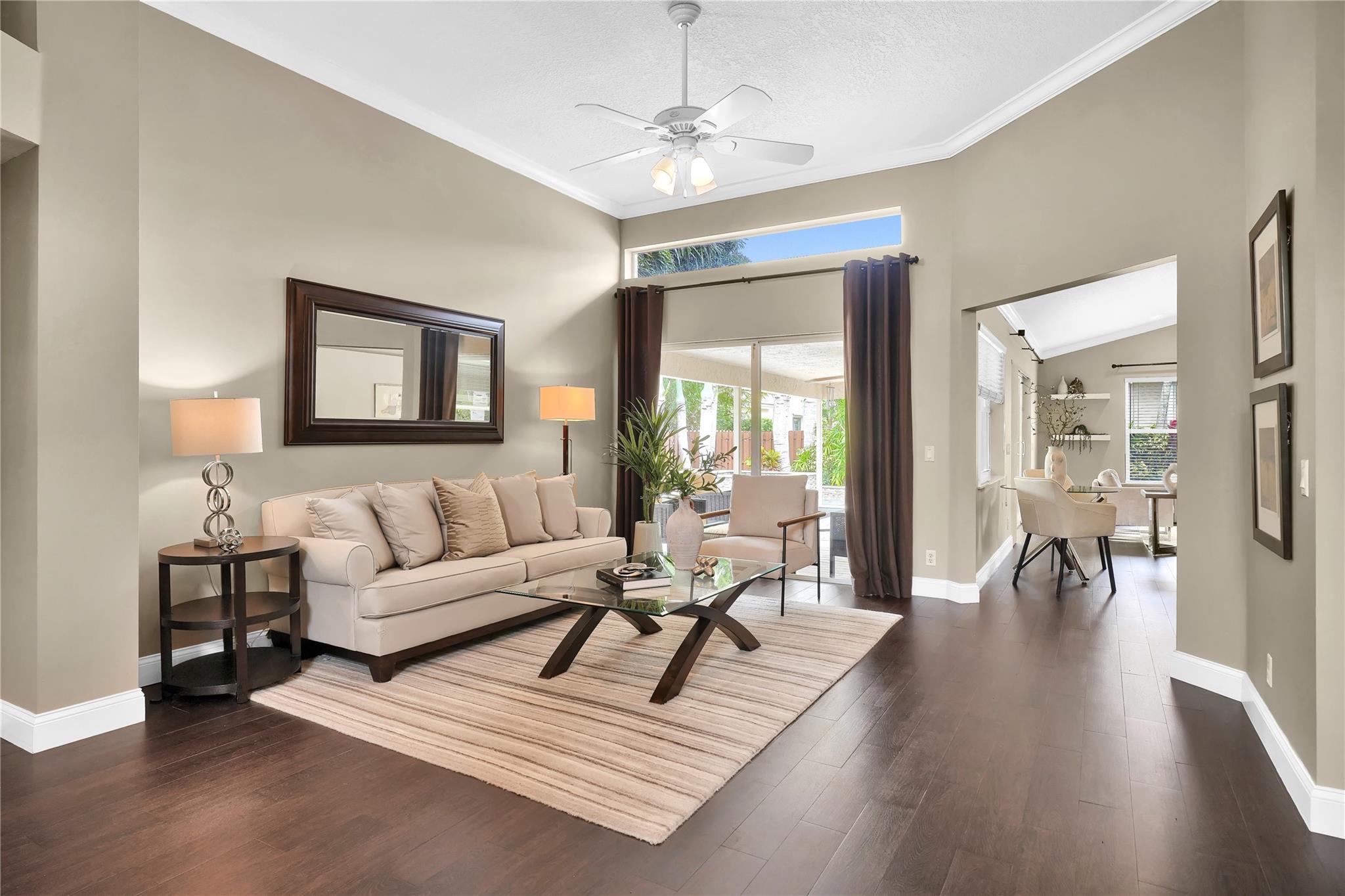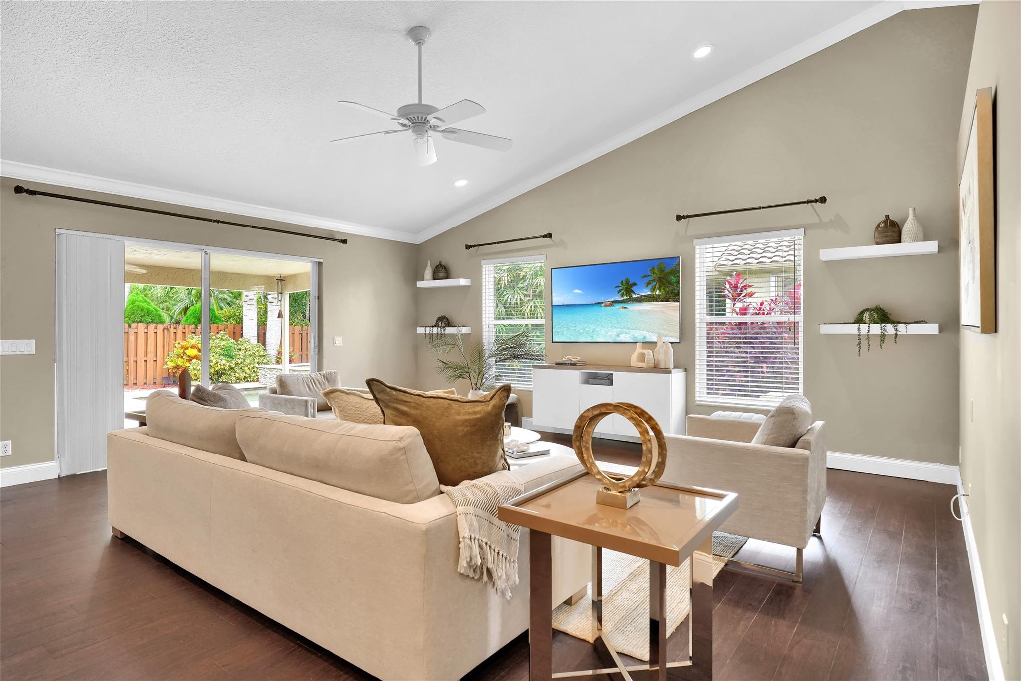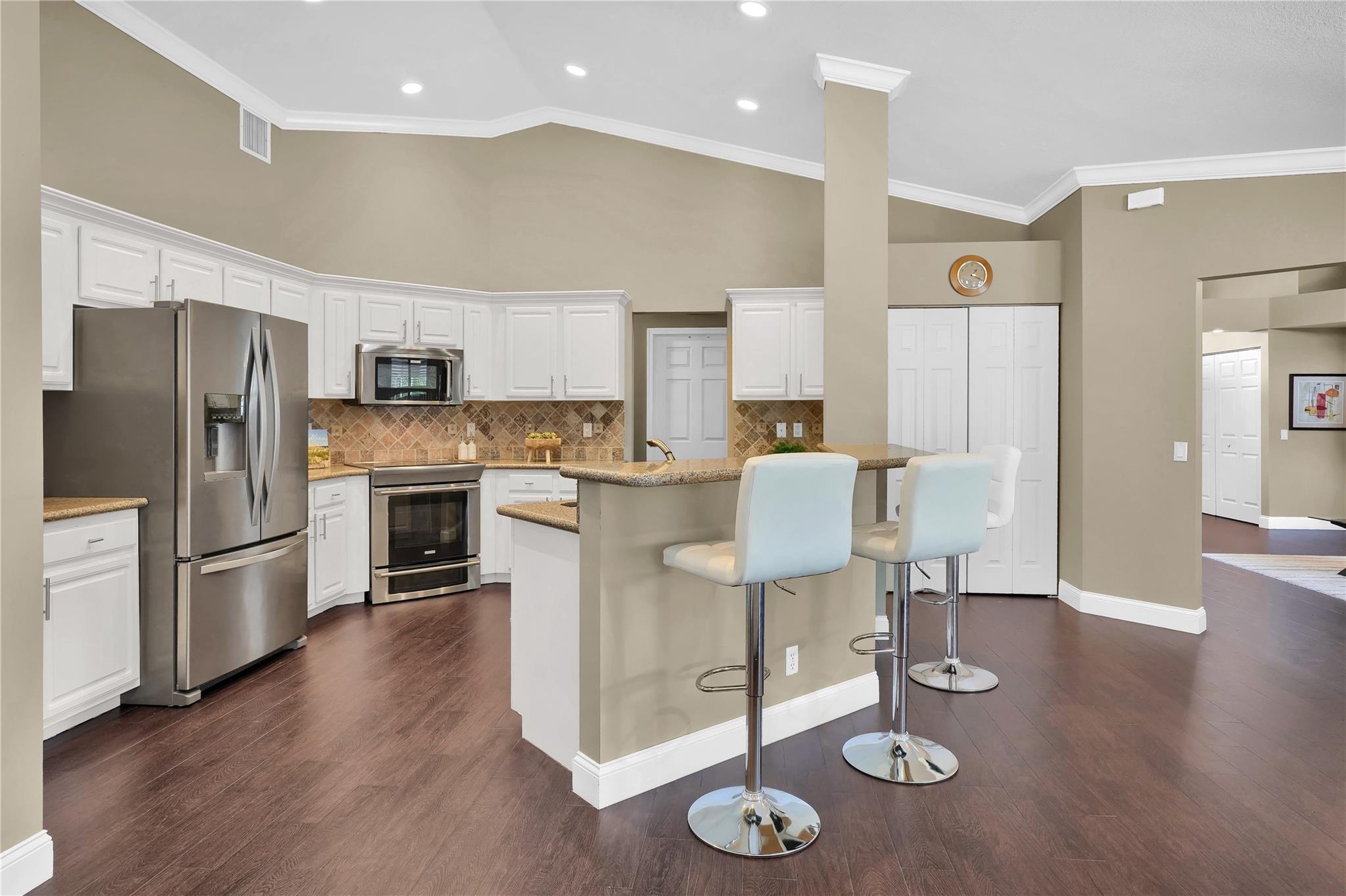 4/3 triple split pool home in sought after & perfectly located The Ridge on Nob Hill! Roof replaced 2022! 3 car garage! Beautiful wood look tile throughout living areas & modern vinyl floors in the bedrooms. Open kitchen has stainless steel appliances (refrigerator newer), pantry, white cabinets, & high ceilings. Extra large family room was extended out when built compared to original floor plan. Spacious primary bedroom w access to pool. 2 walk-in closets! Primary bath w separate tub & large shower. Both guest bathrooms beautifully updated complete w glass shower doors, beautiful tile & vanities! Washer/dryer inside! Gorgeous outside oasis w lush landscaping & perfect for entertaining large covered patio! Travertine pavers surround your modern pool & spa. Exterior painted 2022.