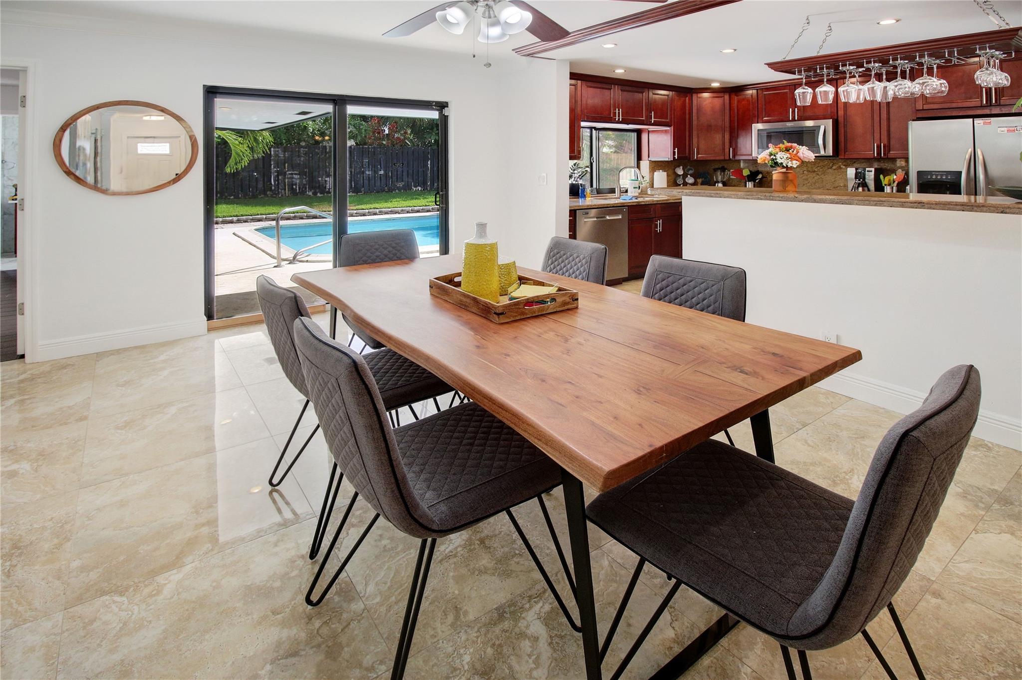 Luxurious 3BA/2BA POOL home, just 5 min from the BEACH in Coral Ridge. The elegant, open living room overlooks the pool. Great split floor plan ensures privacy for the master en-suite, w/ an enlarged walk-in closet. Marble floors in the living area & baths add a luxurious touch. Hurricane impact windows, durable tile roof, smoke alarms & hard-wired carbon monoxide detectors, double garage & a circular driveway w/ parking for 9 cars. The lush backyard provides privacy, fruit trees, outdoor dining, lounge, BBQ & shed. All short-term vacation rental licenses in place. Located just 5 min from the beach, restaurants & shops of Laud by the Sea, close to A+ schools such as Pine Crest, Westminster & Floranada Elementary. Zoned as a multifamily this home brings endless opportunity to its new owner.