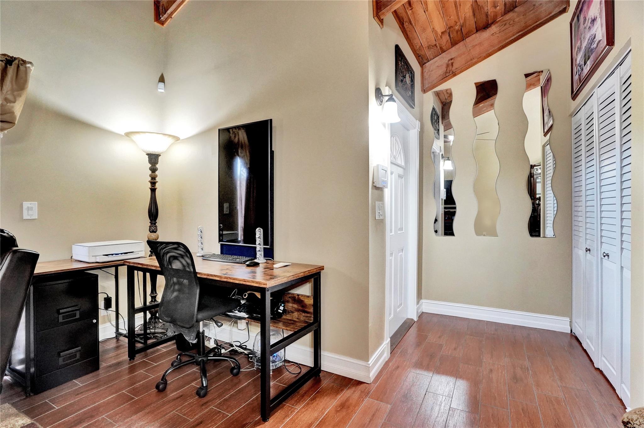 YOU WILL NOT BE DISAPPOINTED, AS YOU WALK IN THIS 2BRM & 2BARM TOWNHOUSE. ENJOY TASTEFUL UPGRADES, THIS STUNNING KITCHEN HAS CUSTOM WOOD CABINETS, ELEGANT GRANITE COUNTERTOPS, GORGEOUS BACKSPLASH, UNDERMOUNT LIGHTING SS APPLIANCES & WASHER & DRYER. DOWNSTAIRS HAS BEAUTIFUL TILE WOOD FLOORING WITH VOLUME CEDAR WOOD CEILING. HOME LOOKS LIKE A MODEL HOME. THERE IS A CONVENIET FULLY UPGRADED BEDROOM WALK-IN CLOSET WITH TUB BATHROOM DOWSTAIRS. AS YOU WALK UP THE COSTOM STAIRCASE TO A PRIVATE PRIMAARY SUITE WITH BEAUTIFUL REAL WOOD FLOORS, UPGRADED BATHROOM & WALK--IN CLOSET. IMPACT WINDOWS UPSTAIRS A LARGE BALCONY WITH A PEACEFUL VIEW. YOU HAVE ACCORDION SHUTTERS ON WINDOWS ROOF REPLACED IN 2019. THE FENCED IN PATIO WILL TAKE YOUR BREATH AWAY. A TRANQUIL OASIS WITH LOTS OF GREENERY.