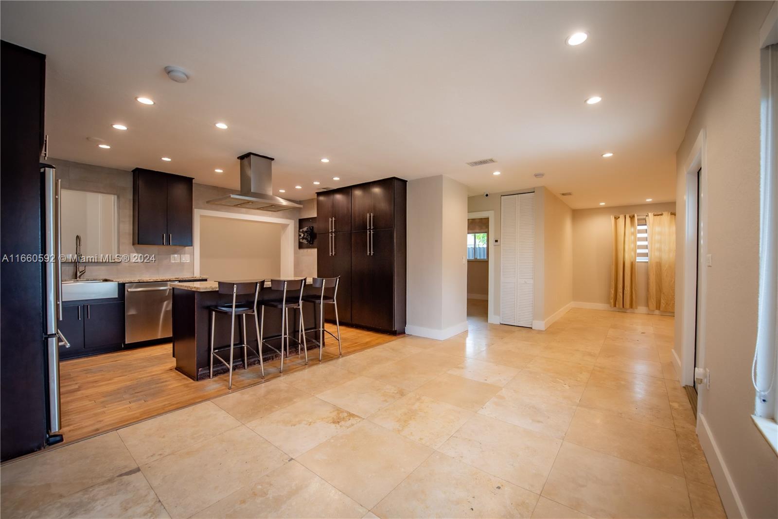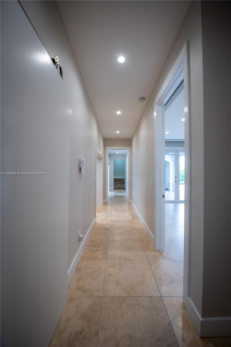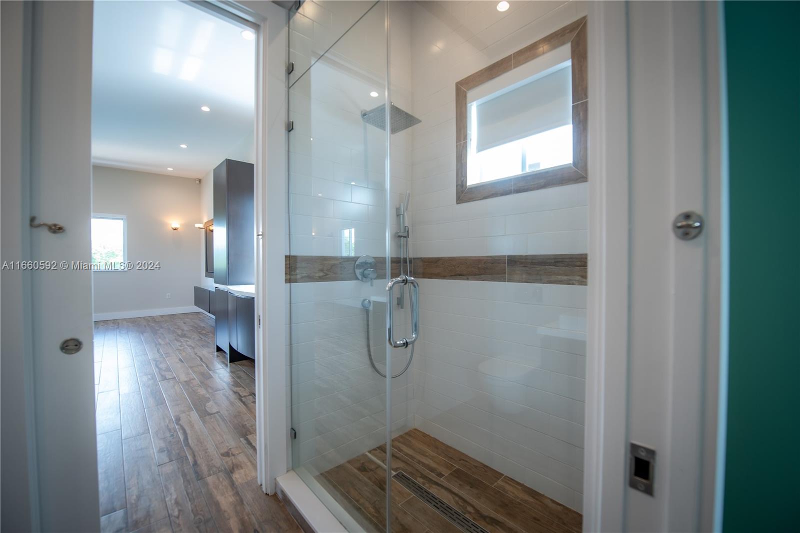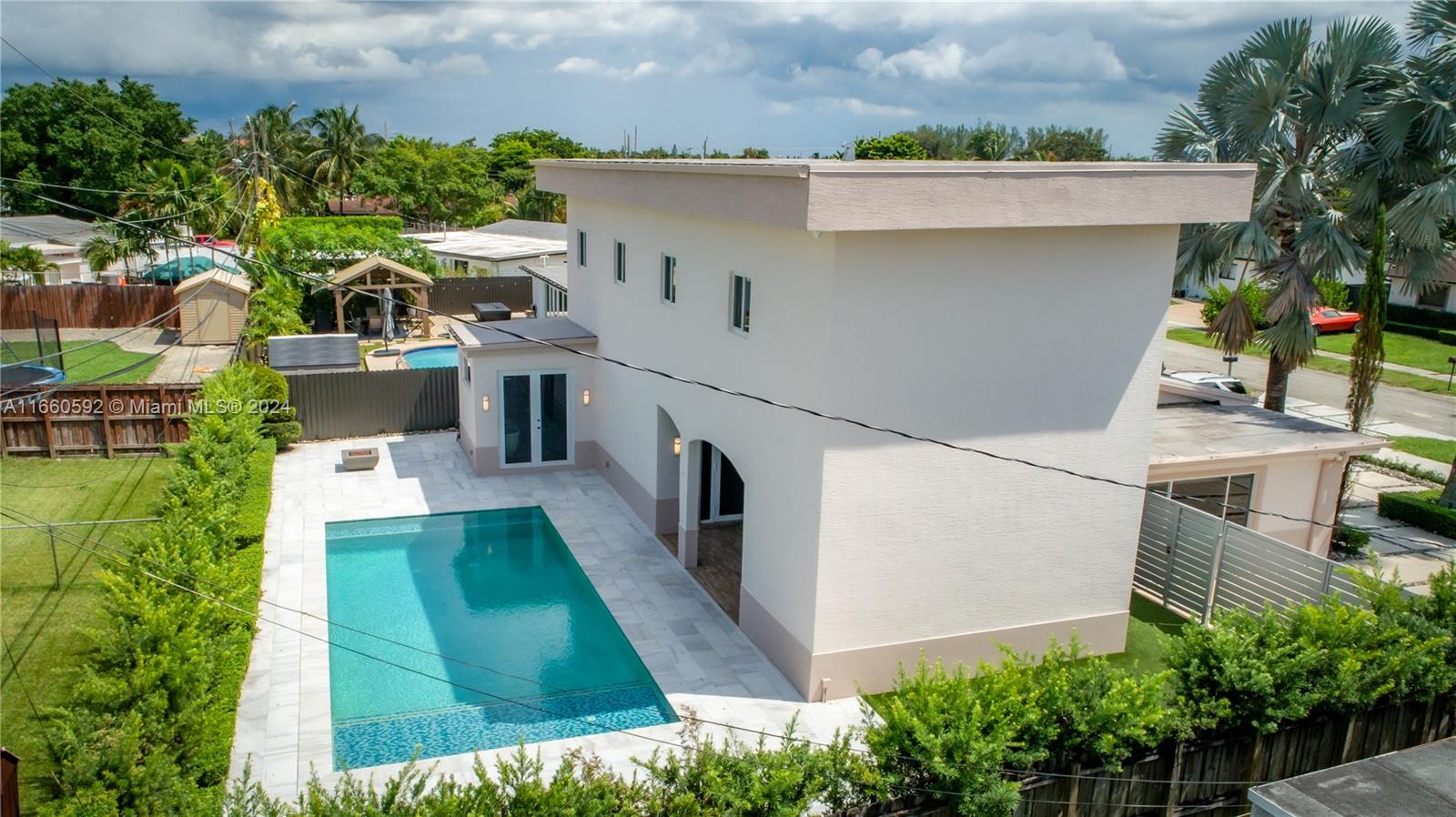 Stunning 4 bed, 3 bath home featuring high ceilings and 8ft doors. Enjoy a gas-heated pool and natural gas connections for a BBQ and fire pit. The kitchen is a chef's dream with Thomasville wood cabinets, marble countertops, and stainless steel appliances. Relax on the tiled terrace with wood ceilings, or retreat to the master suite with cove lighting, a luxurious bath with double sinks, a freestanding jet tub, and a rainfall shower. The media room includes an 80" TV, custom cabinetry, wine cooler, and bar sink. Upstairs, a Jack-and-Jill bathroom connects two bedrooms, while the guest bath offers added convenience. All bathrooms feature glass enclosures. Additional highlights include blackout shades with rails, electric shades in the master suite, and some hurricane impact windows.