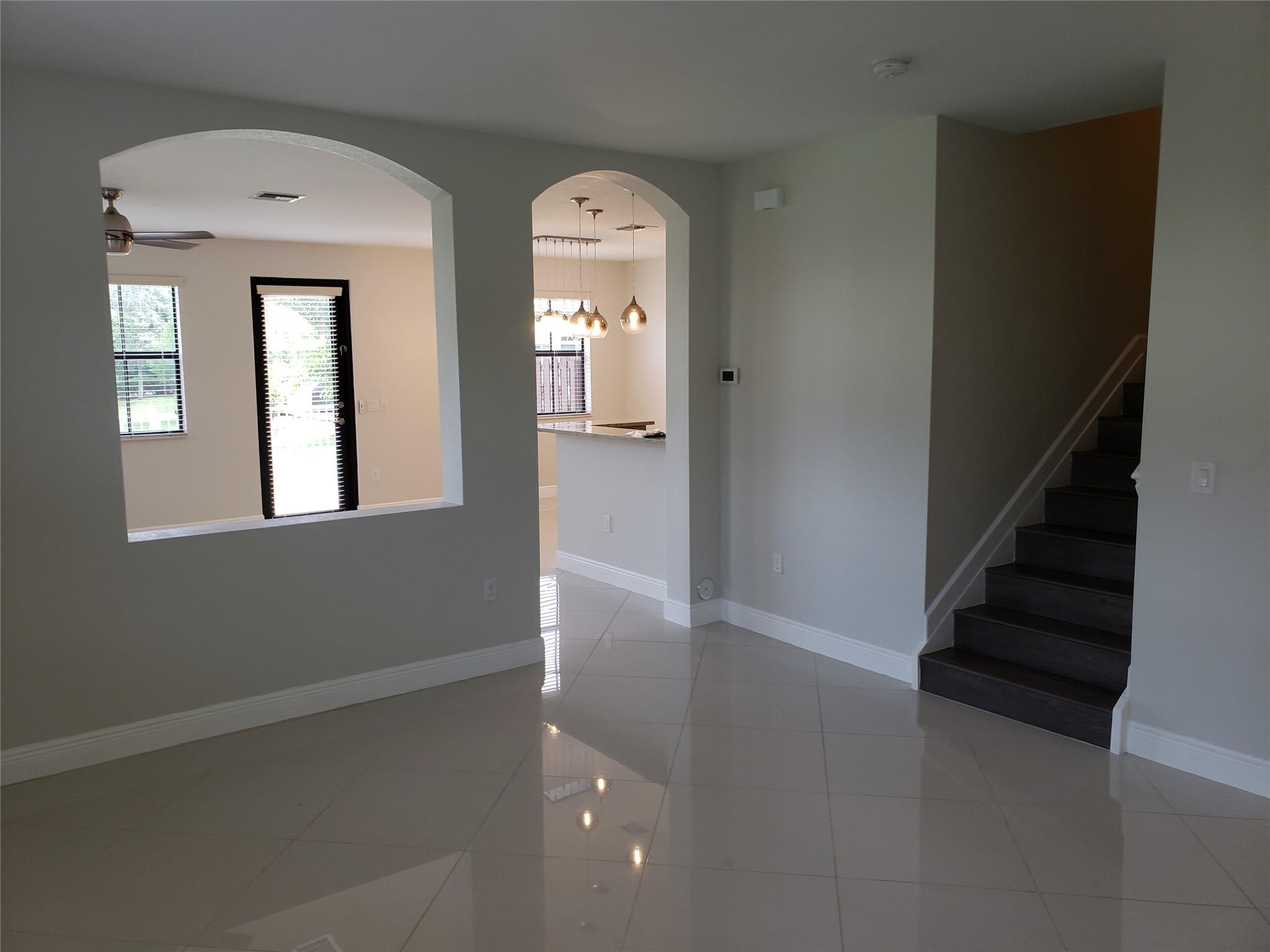 Amazing 4 bedroom 3.5 bath single family (townhouse). Porcelain tile throughout the downstairs, laminate flooring upstairs and custom garage flooring. Custom granite and backsplash in kitchen, master bath and powder room. The appliances are stainless steel. Automatic garage door and front door have a smart look. All bedroom closet and laundry closet have custom organizer. French door to the patio with view to a lake and remote-control Sun Setter Awning. Most of the house is surrounding with gorgeous green. Great Davie Schools near Sawgrass mall. (7.0 credit require by association)