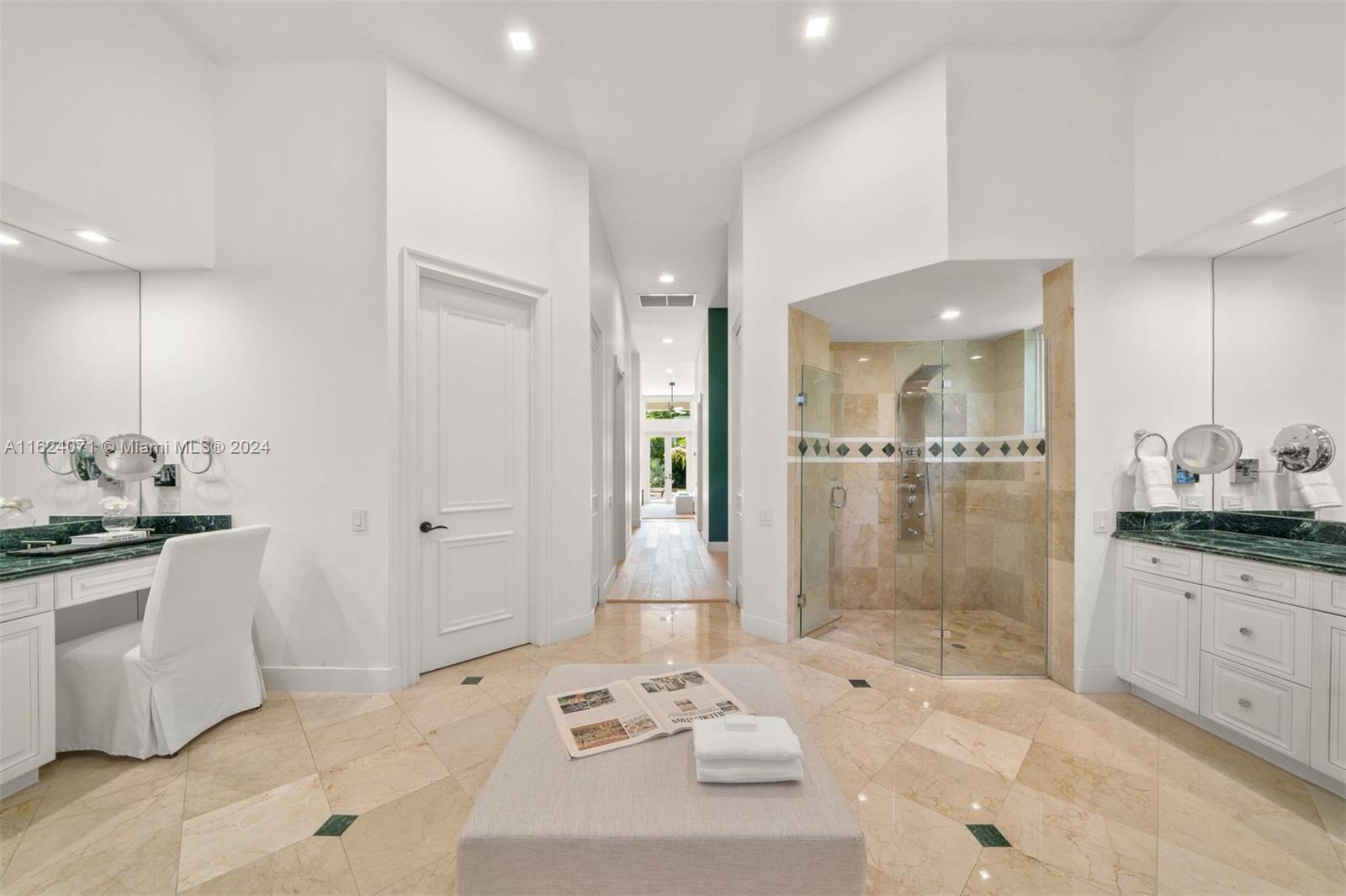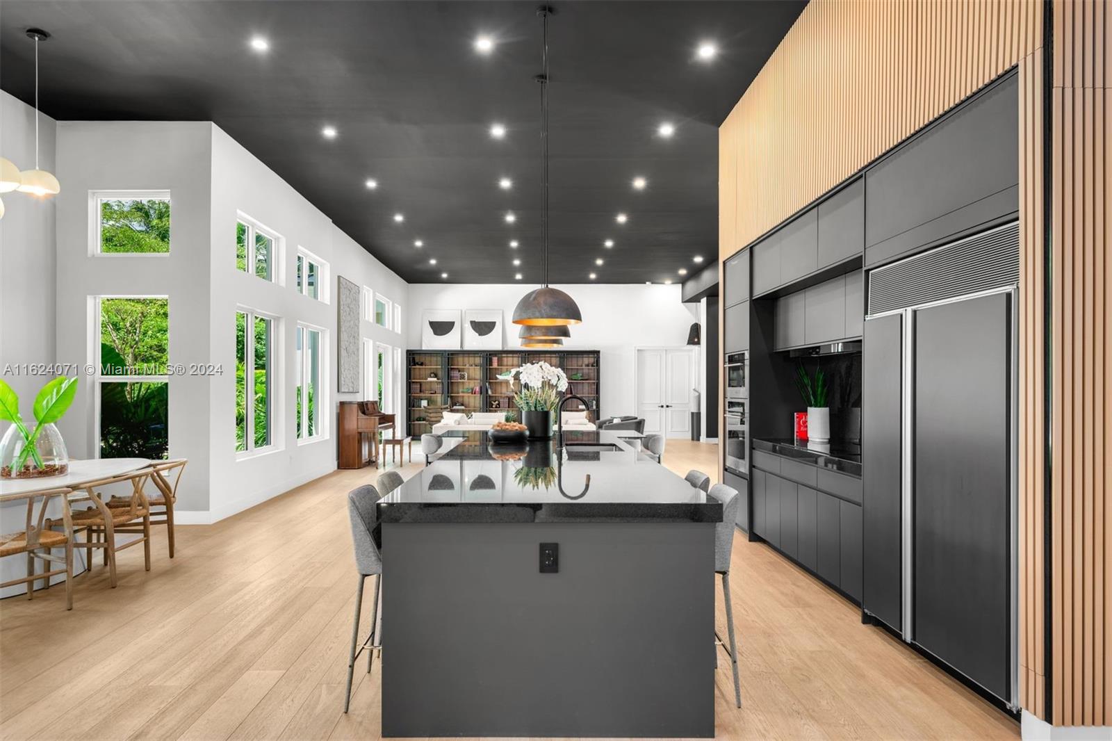 In the heart of East Pinecrest on a private rd in the gated Sanctuary enclave, this 5BD 5.2BA spectacularly redesigned 1-story sits on a professionally landscaped .87 acre. Sophisticated floor plan showcases wide open liv areas, 13-14’ volume ceilings, gourmet kitchen, walk in pantry, wine storage, wide plank wood floors & spacious laundry rm. Luxury primary suite w/office, lavish bath, 2 walk-ins. Chicago brick driveway w/ample parking & 2-car gar w/storage. Relaxing veranda & bbq overlooks new htd saline pool & cool deck, convenient cabana BA. Kids claim their turf w/ backyard soccer field & playground! All impact glass, new metal roof & full house generator. Sidewalk access to Pinecrest Grdns & Comm Cntr, Farmers Mkt. Top schools, bicycle to Red Rd, parks, tennis, Wayside Market & SoMi.