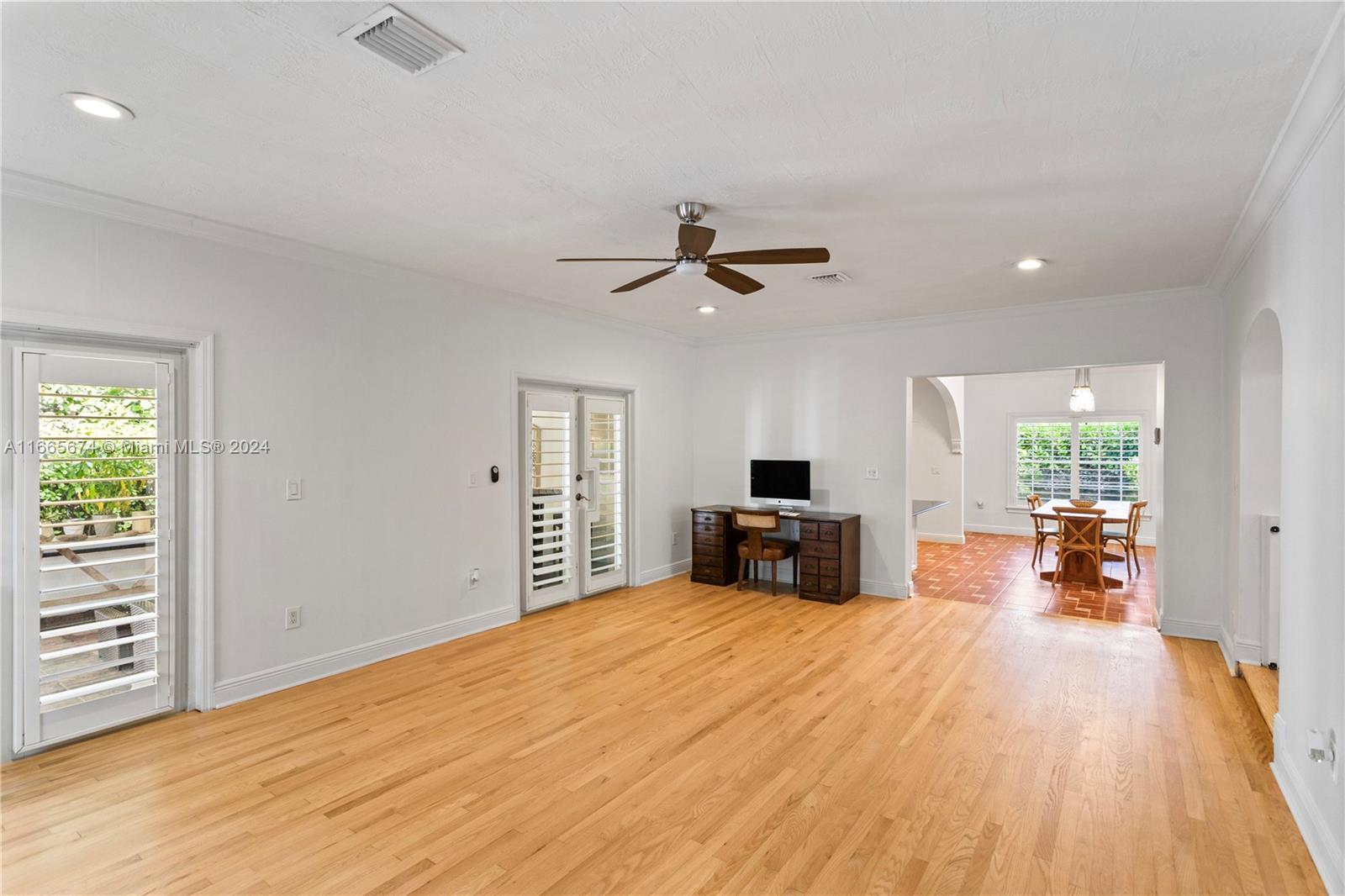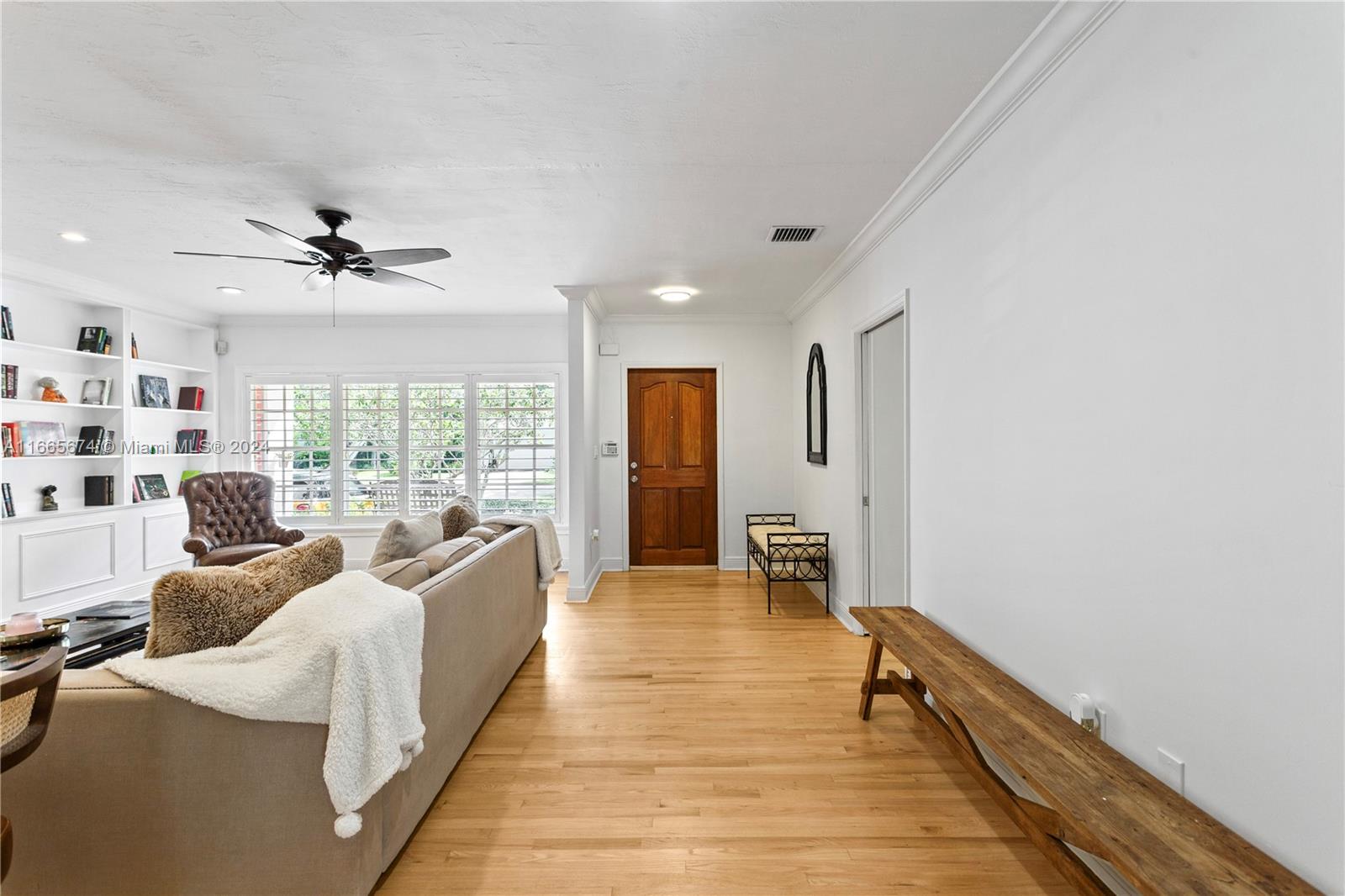 Fabulous 4 Bed / 2.5 Bath Coral Gables Home with large entertaining spaces on a 10,000 SF Lot! Upon entry, you feel the large open social areas including a stately living room and oversized family room that leads to the kitchen which has a wrap-around breakfast room & large dining room. The perfect home to entertain! The 4 bright bedrooms are on the same side of the home, featuring a gracious primary suite with 2 walk-in closets. Impeccable wood floors throughout the home. Large covered terrace outside encourages peaceful entertainment by your backyard. Convenient location close to Merrick Park, UM, Riviera Country Club, & more! Additional ftrs: Roof 2022, 2 Car Garage, Complete Accordion Shutters. Coral Gables Living!