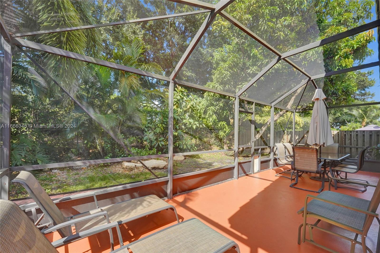 Welcome home to a very well maintained 3 bedroom 2 bathroom house located in the desirable Forest Ridge neighborhood. Updated kitchen with one level counters to create extra space, pantry door that matches cabinets and extra cabinet space added. Updated bathrooms with new vanities, mirrors and lighting. The living room has vaulted ceilings creating a spacious open feel with plenty of windows to let in natural lighting. Step outside onto the large screened in patio that wraps around the back of the house so there is plenty of room to entertain. Other updates are accordion shutters and a 2019 roof. A bonus is the mature mango tree that will provide your family and friends with a lot of fruit. Enjoy the bike and walking trails through the 102 acre preserve that surrounds the neighborhood.