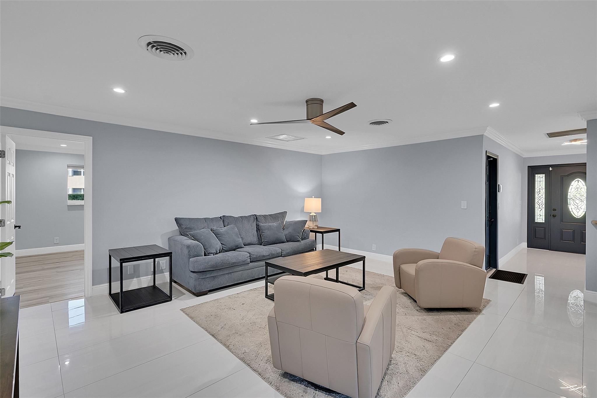 Prime corner lot in East Fort Lauderdale's prestigious Landings neighborhood. This renovated 3-bed, 3-bath home features an open floor plan with main living room and family room off the kitchen. Large screened-in patio for entertaining, plus side lot perfect for a custom pool. Highlights: Impressive curb appeal, oversized circular driveway, porcelain tile floors, whole house generator, impact windows, new roof (2019), tankless water heater, updated electrical panel, and sprinkler system. Combining elegance and functionality, this home offers move-in ready comfort with potential for personalization. Don't miss this opportunity in one of Fort Lauderdale's most desirable areas. Schedule your viewing today and make this house your home!