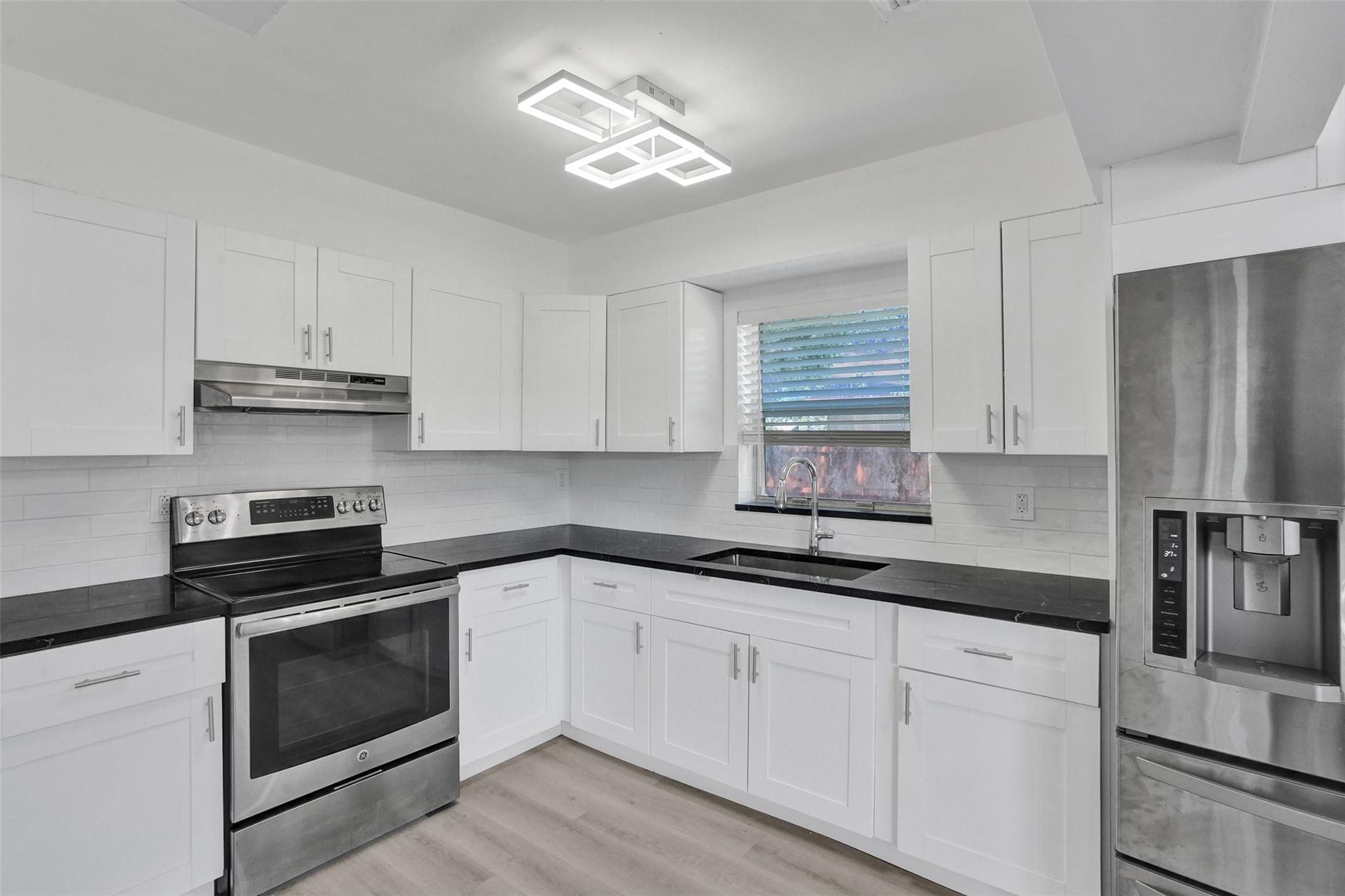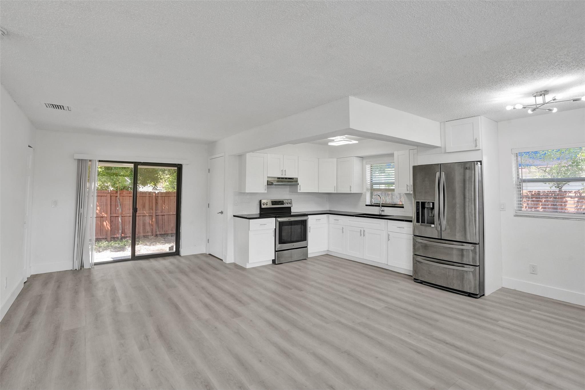 Welcome to this stunning, fully renovated single-family home featuring 4 bedrooms and 2 bathrooms! The open floor plan showcases exquisite new high-quality vinyl flooring and a luxurious showroom-style bathroom. The custom kitchen is a chef's dream, complete with elegant granite countertops and sleek stainless steel appliances. Step outside to discover a spacious, fully-fenced backyard, ideal for entertaining guests. The long driveway offers extra convenience for parking. This home is truly move-in ready!