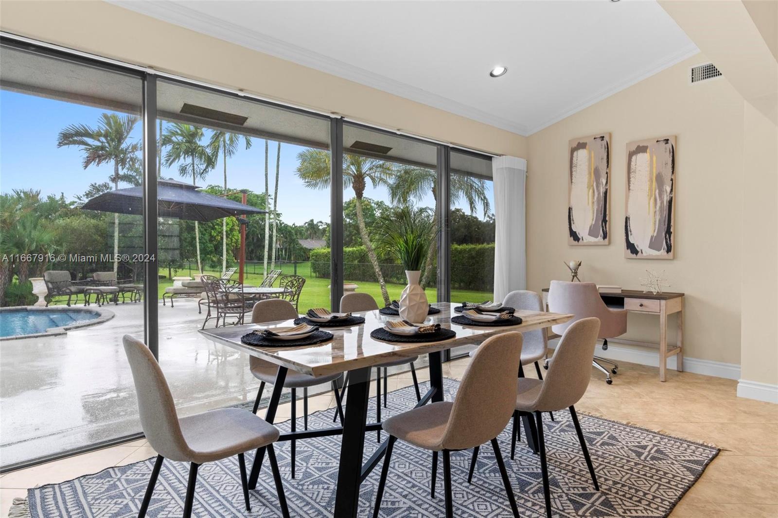 Welcome to Your Private Oasis! Beautifully maintained single-family home boasts 4 spacious bds & 3 full bth, high vaulted ceilings perfectly situated on 1.24 acres of lush land. Enjoy the luxury of your own private pool and expansive yard, ideal for outdoor activities & entertaining. The property features a 3 car garage under a/c or all your storage needs, and a durable metal roof with lighting protection that promises low maintenance costs. With a large driveway accommodating over 30 cars, boat & RV-friendly parking, this home is perfect for gatherings. Conveniently located near the airport, Sawgrass Outlet, restaurants, and 20 min from the beach, this home offers the perfect blend of tranquility & accessibility. Don’t miss out on this rare opportunity! NO HOA! Check video!