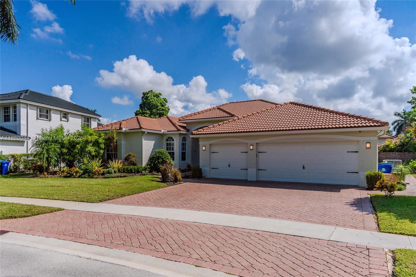 This stunning home is nestled in the desirable community of Sunset Lakes. Upon entering you will discover the spacious layout with beautiful French tile throughout in a split floor plan design. If you like to entertain then you will fall in love with the resort style backyard that includes a newly resurfaced fully automated pool with jacuzzi, large Tiki hut, bistro lights throughout and plenty of room to lounge and enjoy the sunshine. Inside you will enjoy a full eat in kitchen and an enormous family room. Plantation shutters all throughout adorn the newly installed high impact windows and doors. Don't miss out on this wonderful opportunity to make this amazing single-story home yours.
