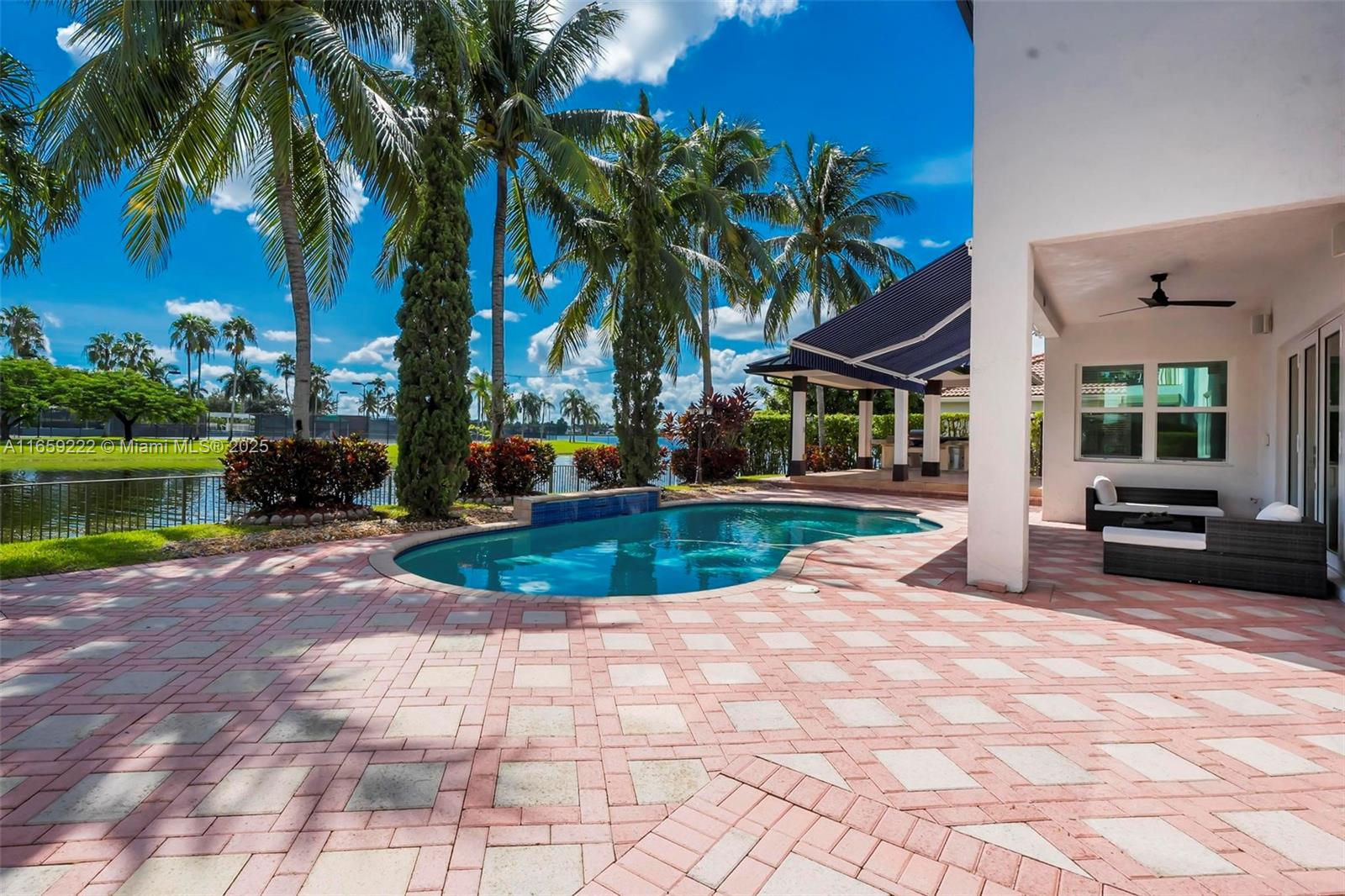 This is truly a resort-style community that features clubhouse, rec center, pool, kids pool, volleyball, 8 tennis court, fitness facility, playgrounds, pavilions, and more! This luxury home offers high-end finishes and impeccable attention to detail throughout. BRAND NEW ROOF AND IMPACT WINDOWS & DOORS just completed!!! Updated modern kitchen, 2 bedrooms on the main level, office and 4 bedrooms on the 2nd floor. Large main bedroom boosts a balcony overlooking the expansive lake with a beautifully done main bathroom retreat and his and her closets. The backyard boasts a gleaming swimming pool, outdoor summer kitchen, retractable awning, and lake views for a perfect outdoor oasis perfect for year-round relaxation! This is more than just a home; it's a lifestyle!