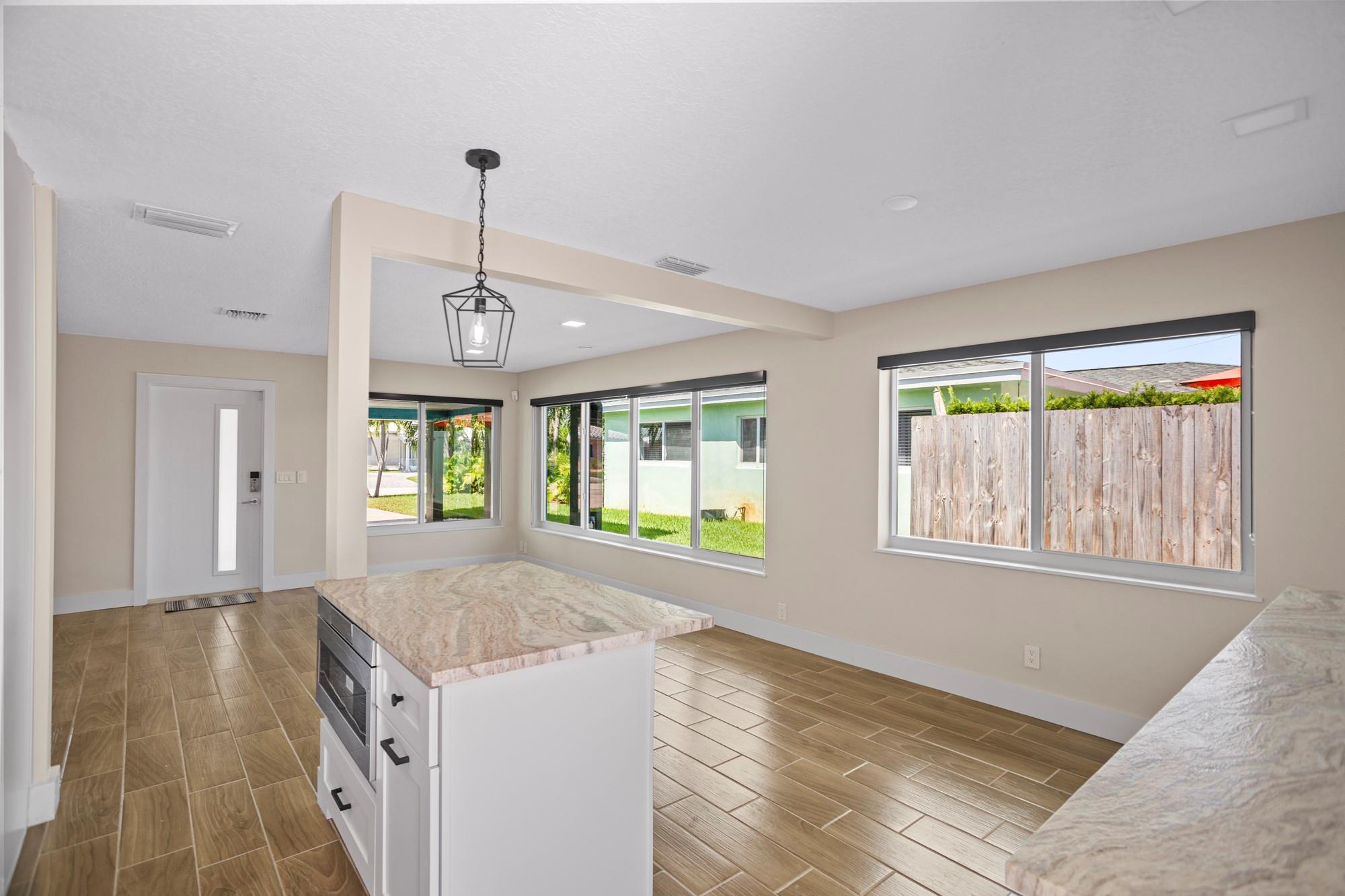 Elegantly remodeled with the most up to day materials that will surely impress your buyer when viewing this pool home located in the popular North Andrews Gardens Neighborhood. Features include: beautiful wood looking tile throughout, new kitchen, appliances, breakfast bar & extra storage cabinetry & counters for entertaining. Complete Hurricane impact windows & doors, new bathrooms, freshly painted inside and out, new doors, closet built-ins, black out shades in the bedrooms & privacy shades in the main living areas, paver circular driveway, large front porch, separate laundry room with washer & dryer hook up. Soak up the sun in your private backyard on the patio or swim in your sparkling pool. Enjoy living in a community located close the beaches, downtown, Wilton Manors and I-95.