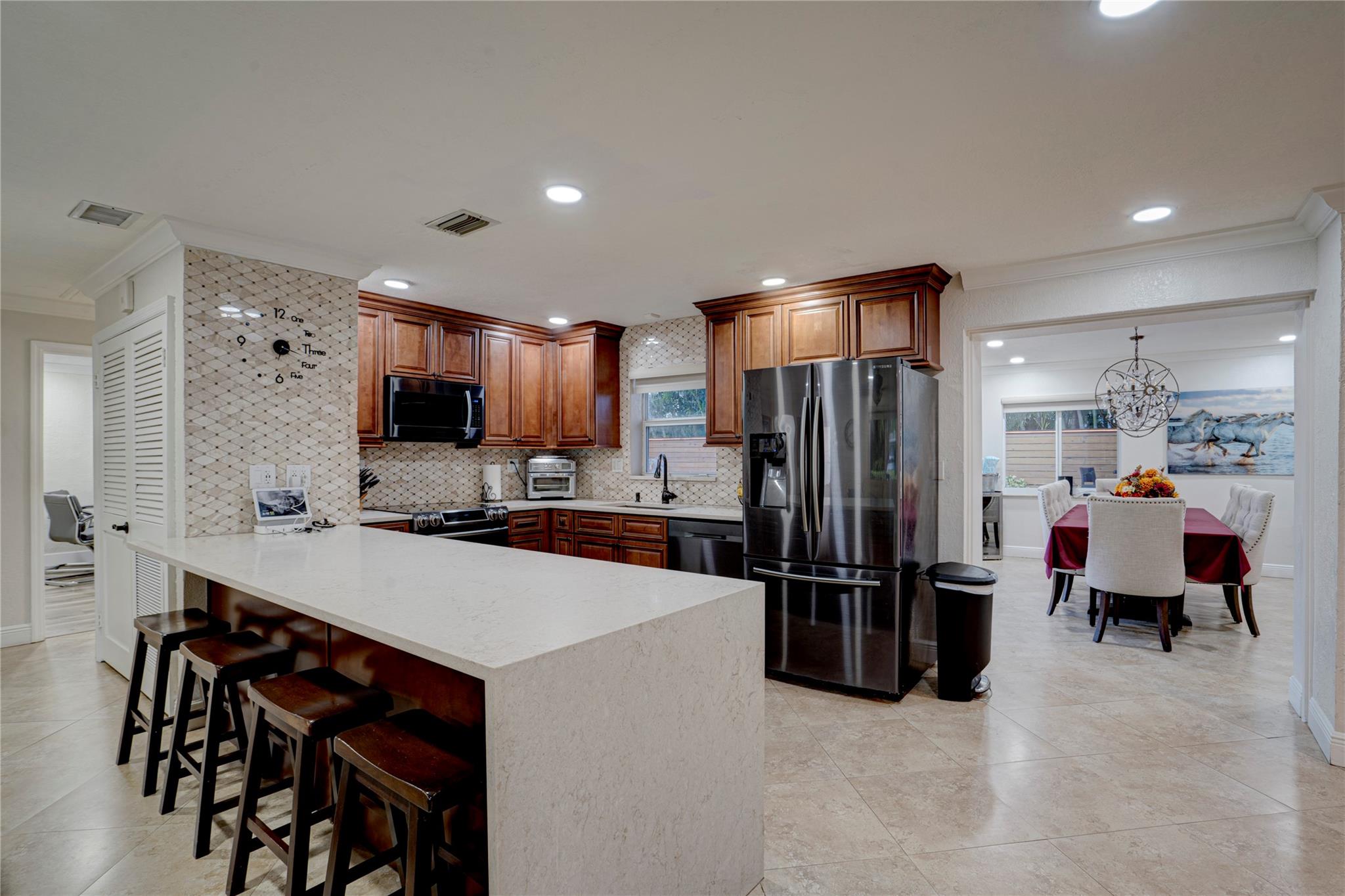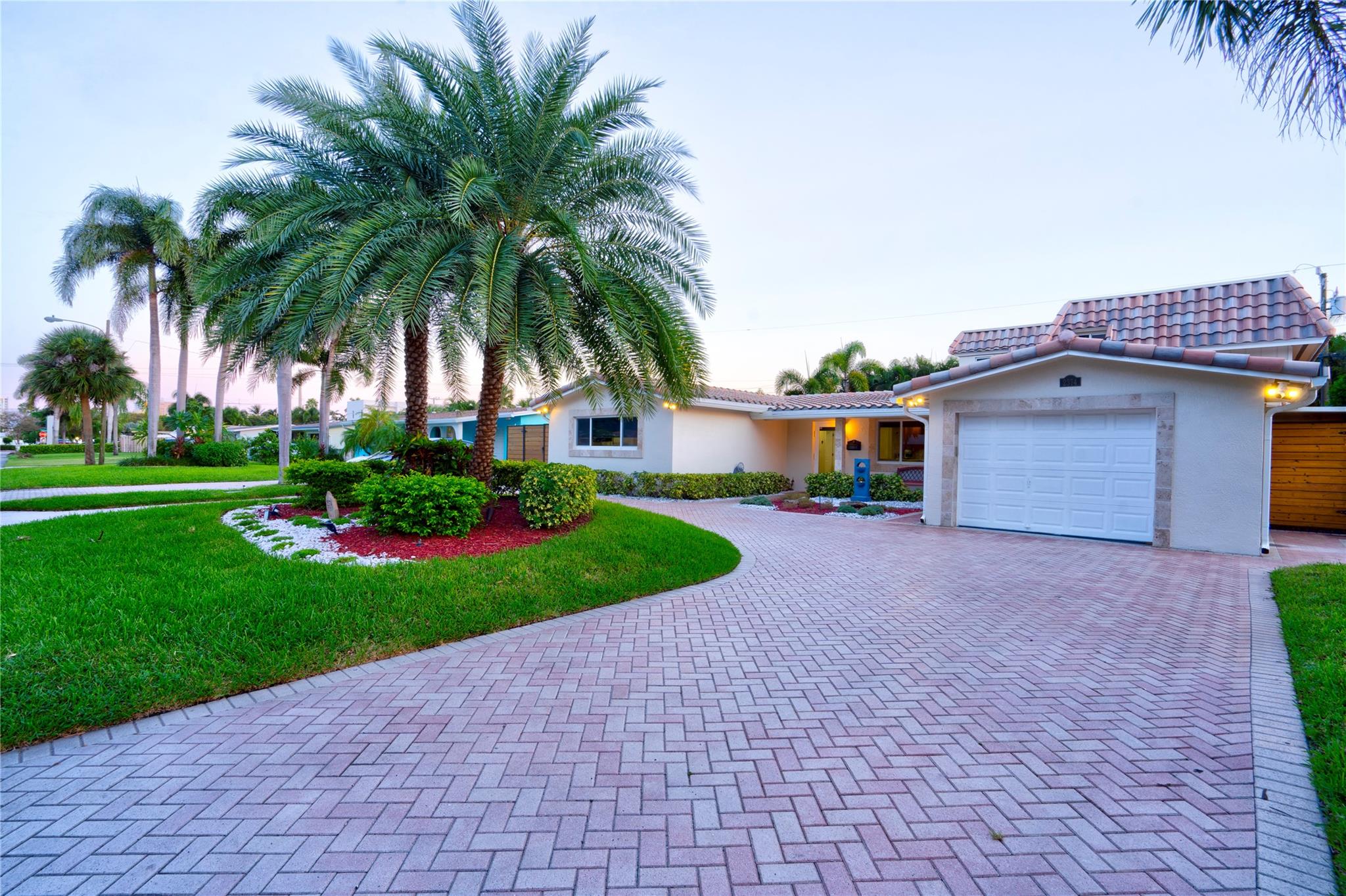 Luxurious, completely renovated, spacious (2,745 sq. ft.), 5/3.5 Single-Family Home in desirable Beachway Estates, Pompano Beach! Walking distance to beach & nearby Pompano Beach Amphitheater. Amenities: high-tech smart, heated pool spa w/ large patio, Tike Hut w/ wet bar for BBQ. High Impact Windows, Doors & Locks throughout entire home. Recessed Lighting, blackout blinds through all bedrooms. Second story master retreat w/ remodeled bath & shower, designed for privacy and sense of retreat; huge breakfast bar w/ granite countertops & stainless-steel appliances; formal dining area; fireplace; 25 kW Generator; tankless water heater on natural gas. New Smart Washer/Dryer, Nest Internet AC, 3-Split AC units. Roof 2-years old. Golf cart garage w/ laundry facilities and plenty of storage.