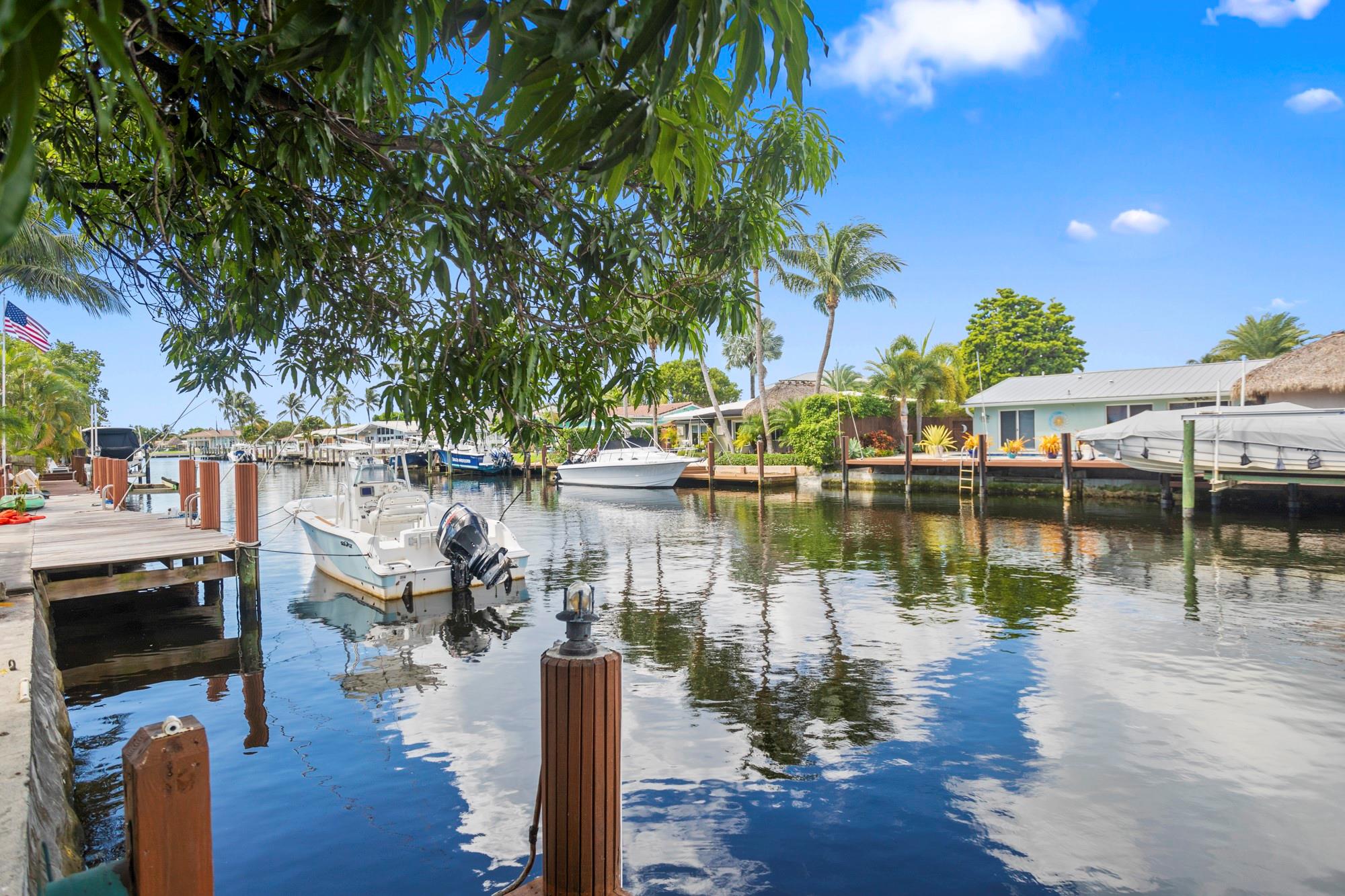 This charming 2-bedroom, 2-bath waterfront home offers a blend of convenience and comfort, with a single-car garage and featuring a small bonus room adjacent to the kitchen, it provides a versatile space perfect for an office or additional storage. New vinyl floors and fresh paint throughout, this home is ready for your finishing touches to make it truly your own. Plus, with only one fixed bridge (Federal Highway) to navigate your waterfront lifestyle is within easy reach, a prime location just 10 minutes from the Intracoastal Waterway.