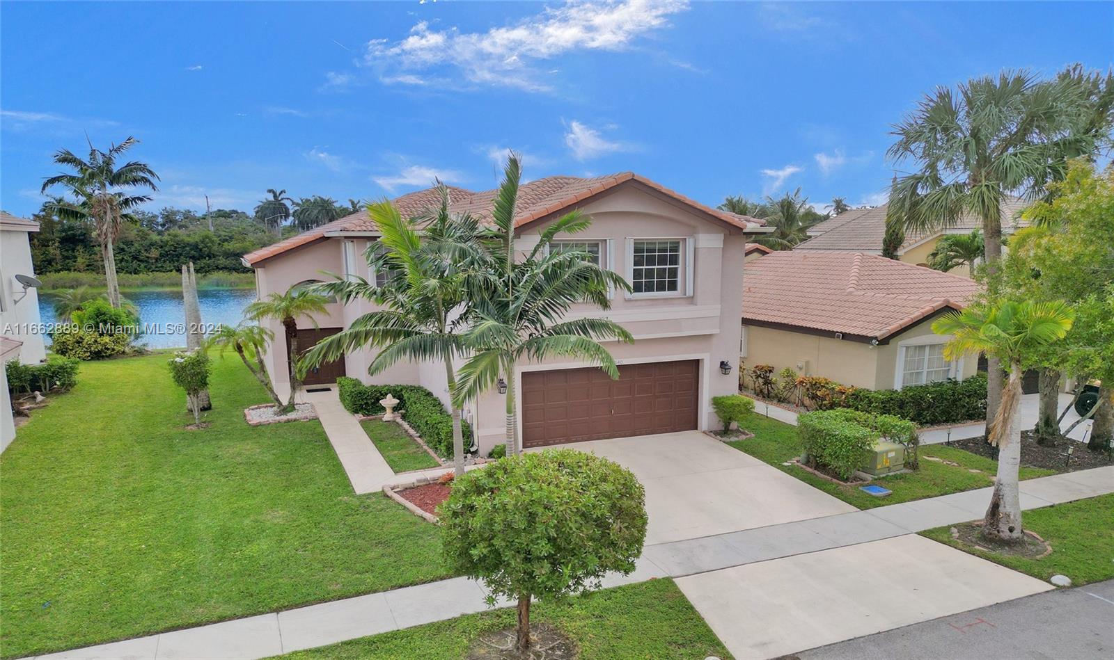 LOWEST PRICED 5BR HOME IN WEST MIRAMAR! Welcome to your new 5/2.5 luxury home featuring high vaulted ceilings and serene views of the lake from all common areas & master BR. Large windows flood the home with natural light while the backyard offers privacy with no neighbors in the rear. Enjoy beautiful water views from your private backyard, ideal for relaxing or entertaining. 4BR upstairs w/ 5th BR/office/gym downstairs. 2024 new interior paint; Accordion shutters; 2018 A/C system; 2024 sprinkler system. Premium amenities include an expansive clubhouse, swimming pool overlooking the lake, tennis courts, basketball courts, numerous parks and more! Close to excellent schools, premium shopping, upscale restaurants, major highways and city parks. Original owners and very well-maintained home.