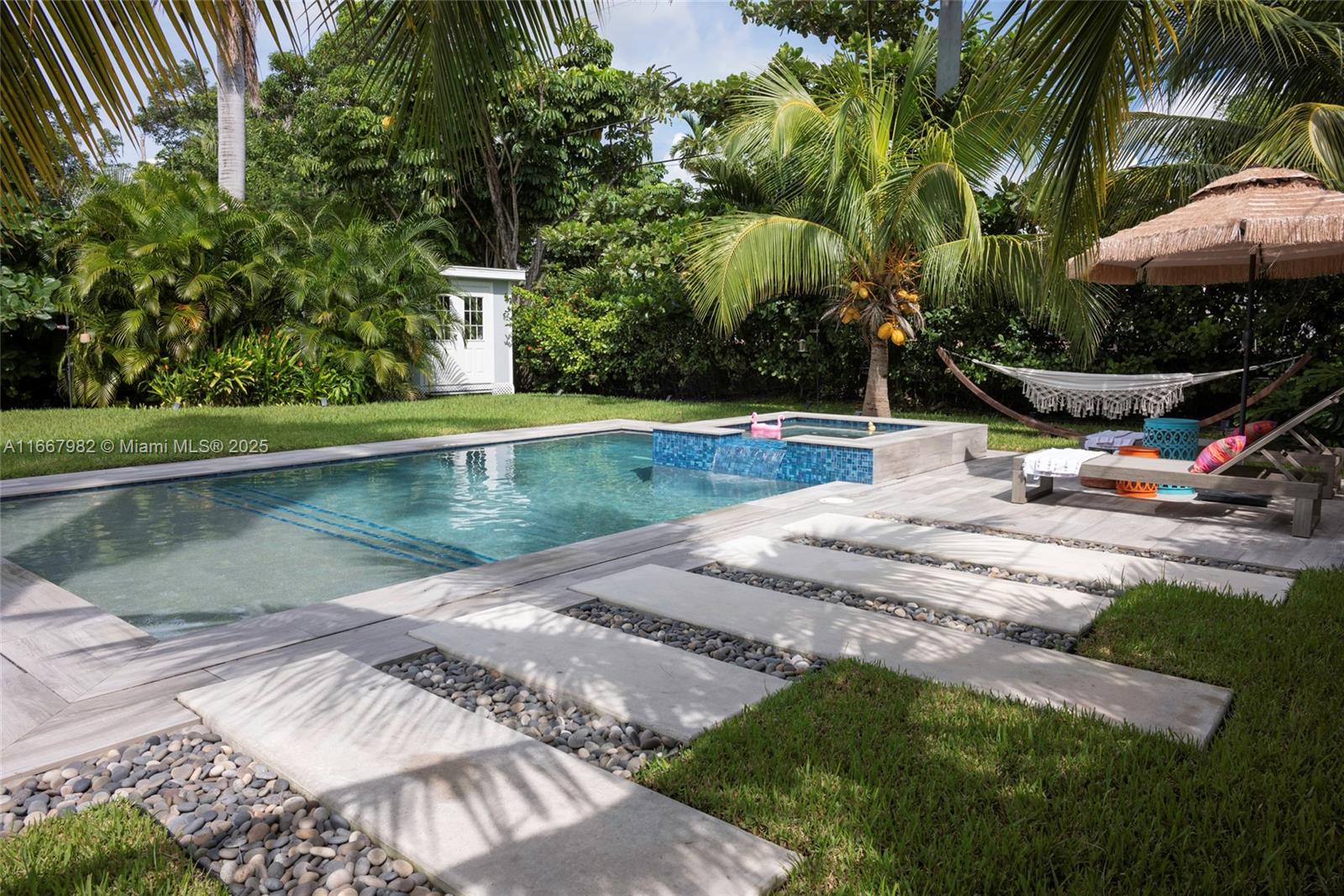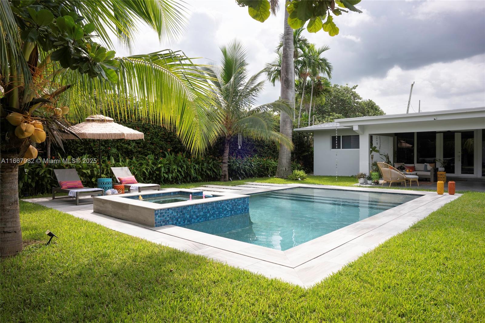 Price cut!!! Fully renovated in 2020, one story masterpiece in sought Keystone Point. Feel the open space living room like a private resort. This impeccable house offers a seamless indoor-outdoor living experience. New roof, new plumbing, new AC, new floors, new kitchen, new impact windows. Featuring 4 bedrooms, 3 full bathrooms, full of light. Enjoy a sprawling professional designed pool & jacuzzi built in 2022 (with heater), surrounded by lush landscaping exclusively designed by a professional designer. 11,250 sq ft lot in Keystone Point that holds a beautiful garden with tropical plants, new shed with AC. A jewel. 5 minutes to the Beach. Ample parking space (up to 12 spaces). Reverse osmosis alkaline water system. Alarm system, Gas range, Hunter Douglas motorized blinds. Smart home.
