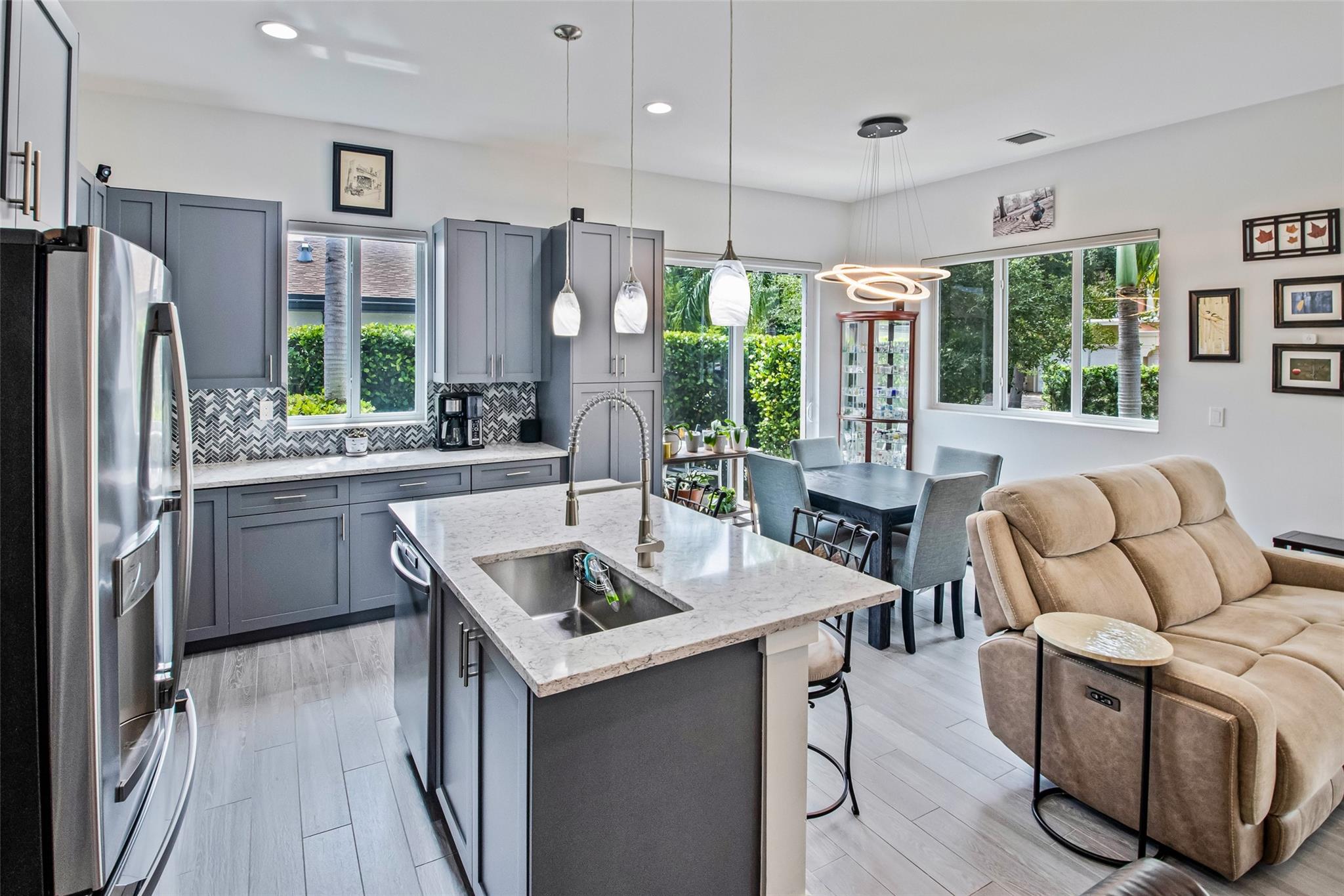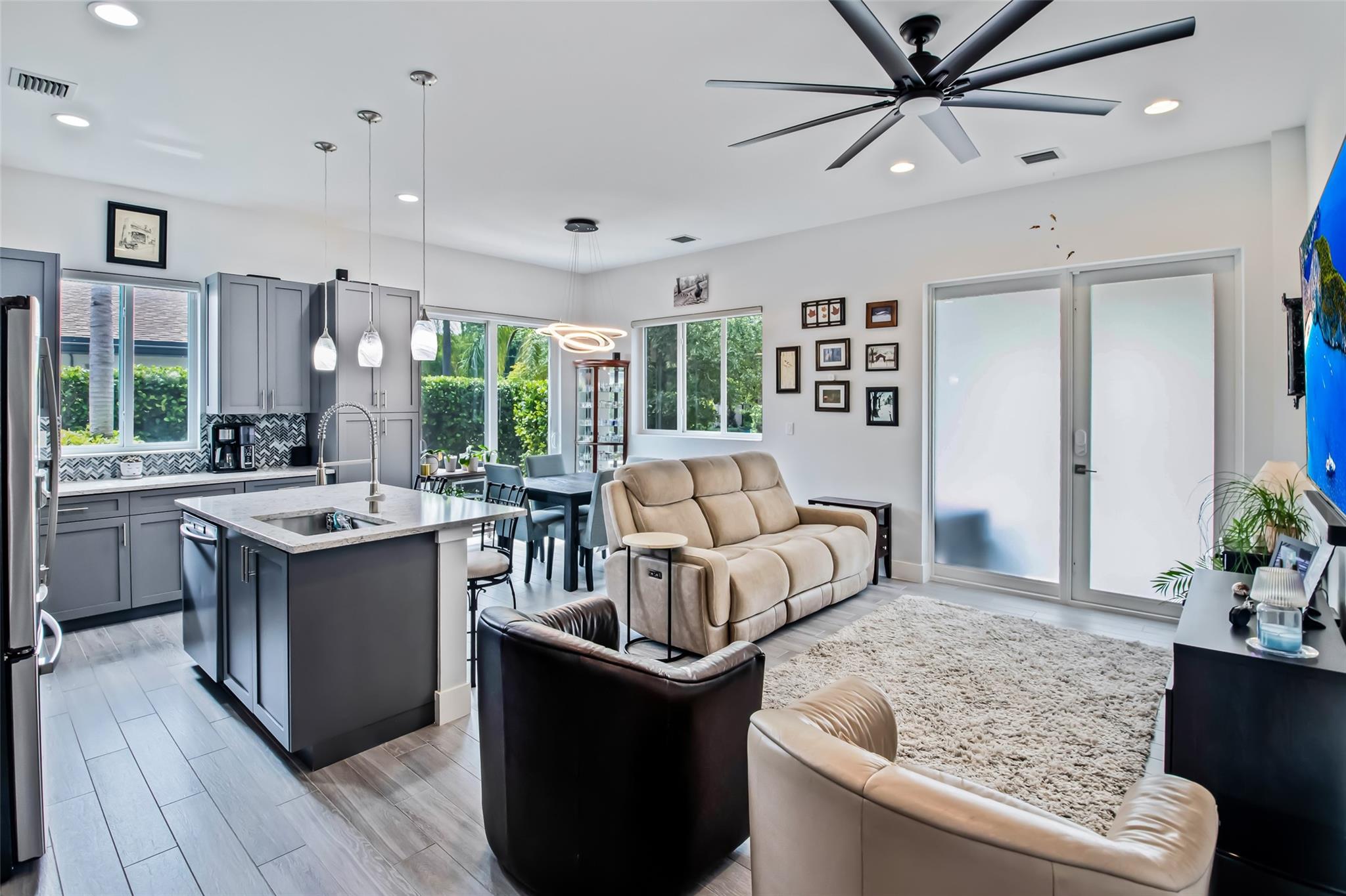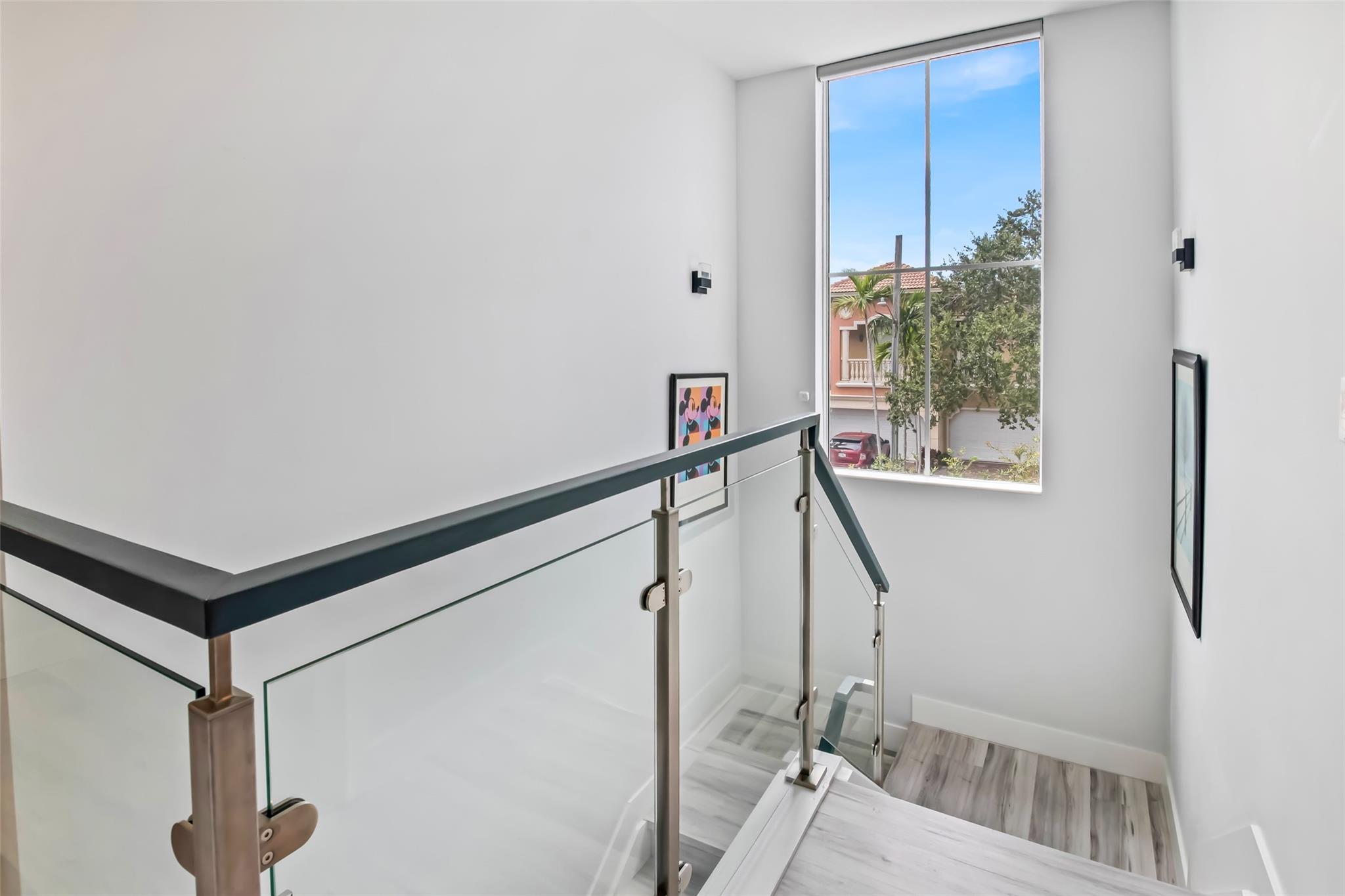 Welcome to this stunning 3-bedroom, 2.5-bathroom corner townhome located in the desirable Palmera at Lake Ridge. This home boasts a spacious layout, with a 2 car garage. Discover upgraded features throughout such as a sleek glass railing on the staircase, creating an airy and contemporary feel. Enjoy the ease of smart home technology, allowing you to control air conditioning, lighting, and your garage door with just a touch Outside, relax under the automatic awning in the side yard or enjoy the fresh air on your front porch, complete with an automatic screen for added comfort. Minutes from downtown Fort Lauderdale, Wilton Manors, and the pristine Fort Lauderdale beaches, as well as the airport, this townhome offers both luxury and convenience. Make this exceptional property your new home!