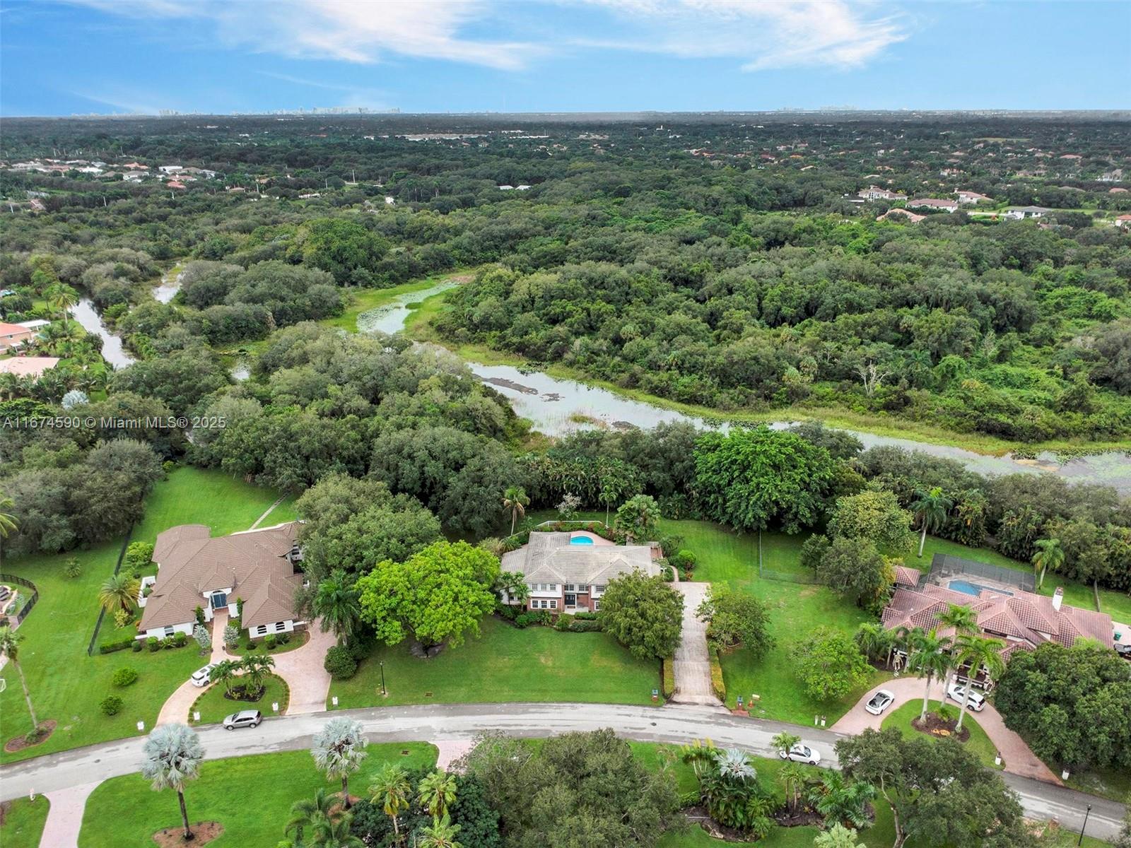 Traditional 2 story Brick Colonial in Breathtaking Whispering Pines in Davie! Reminiscent of A New England Estate, this custom-built home welcomes you into a GRAND 2 story foyer, soaring living room, formal dining room & enormous family room/ kitchen. Upstairs, the primary bedroom is your sanctuary w/ balcony, HERS & HIS DUAL BATHS. The Kitchen is an ideal work triangle adjacent to the ENORMOUS family room, with a built in bookcase & Bay Window w/ an inviting bench seat all overlooking your backyard sanctuary adjacent to Long Key Nature Preserve. Wood floors, tons of storage, mature, lush landscaping, elevated wood deck, screen patio w/ large exterior patio space for entertaining on any scale.