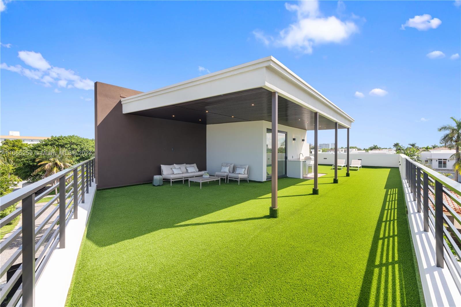 Discover modern elegance in Coral Ridge. This home features 4 bedrooms, 4 bathrooms, high ceilings, and an open concept living area that flows seamlessly into the terrace, thanks to multitrack sliding doors that create an extended indoor-outdoor space. Enjoy porcelain flooring, quartz countertops, custom solid wood doors, and a kitchen with state-of-the-art appliances. Designed with entertaining in mind, the home has an oversized rooftop terrace equipped with a summer kitchen and provisions for a jacuzzi installation. Additional amenities include a private pool, a security system, and ample parking with a double garage and four-car driveway. Panoramic views, along with relaxing balcony and deck areas for unwinding and enjoying the serene surroundings.