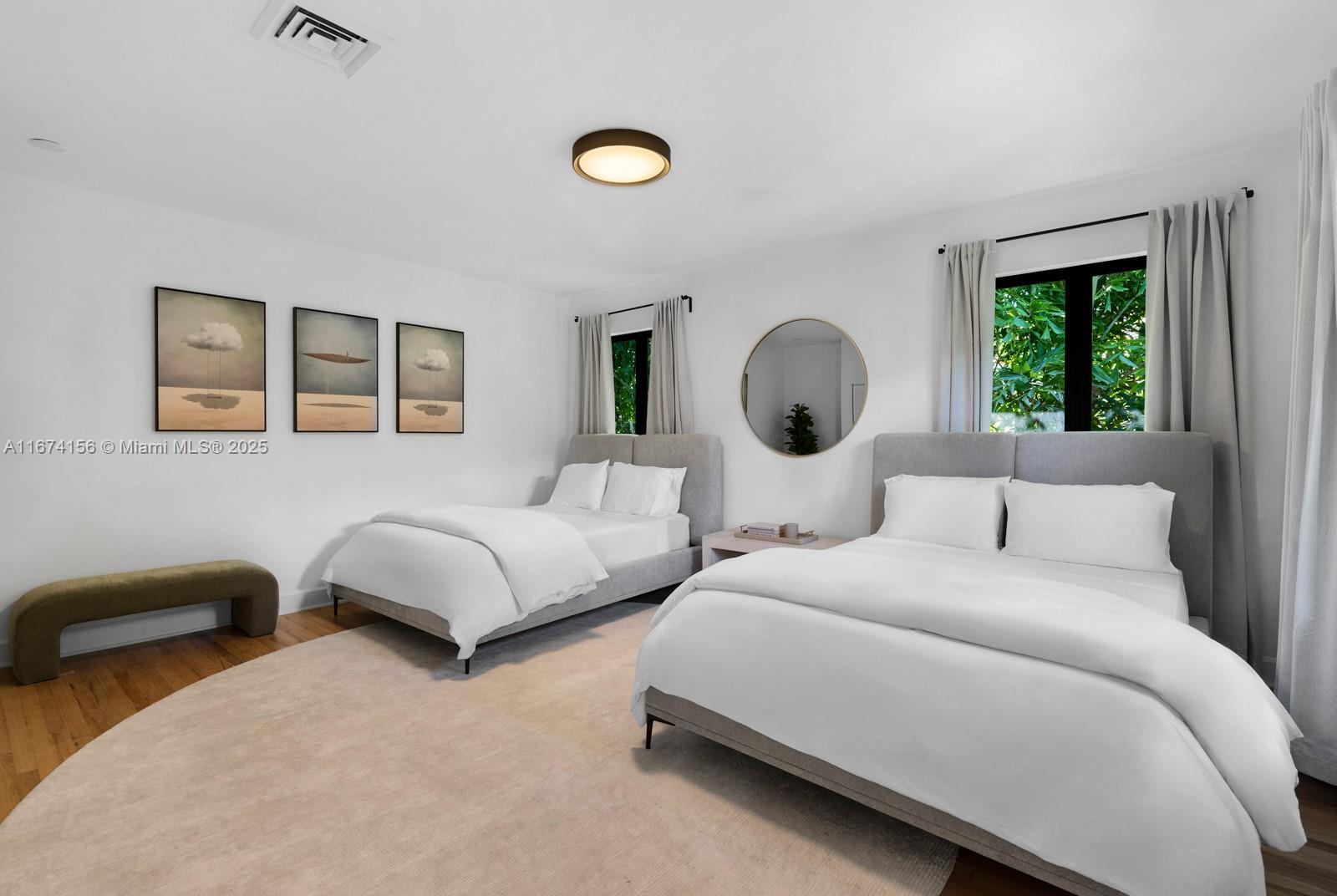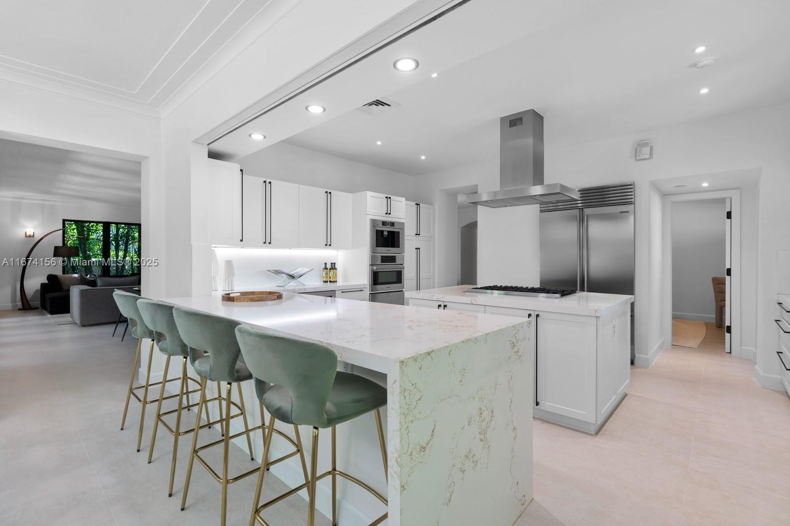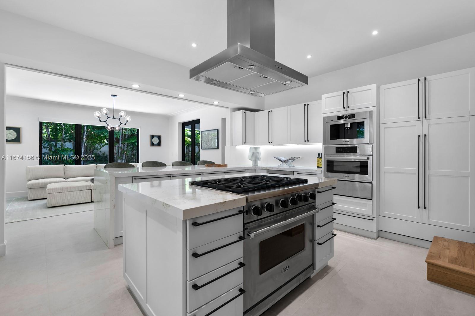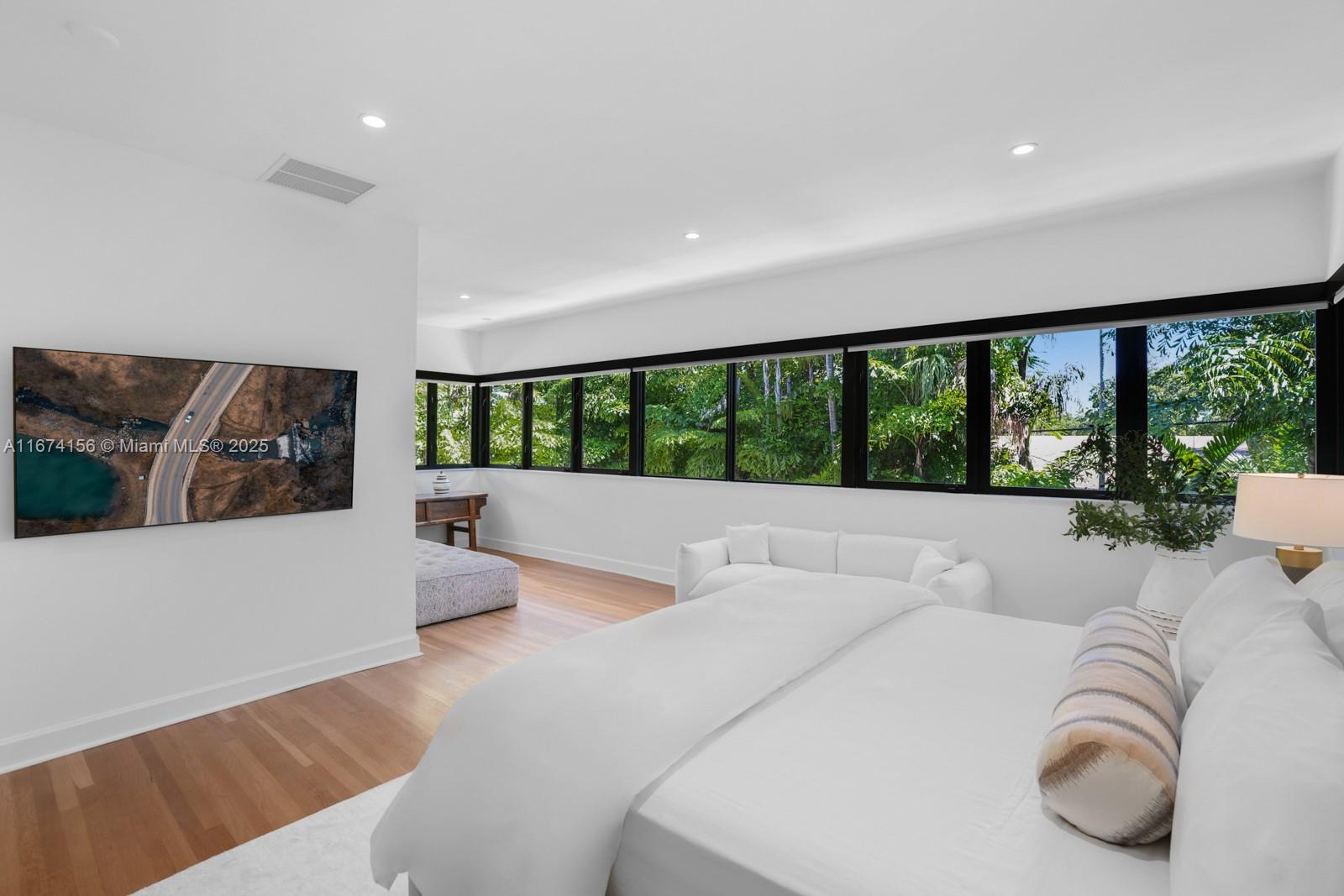 Step Inside With Me! This exquisite Mediterranean restoration is nestled on prestigious Upper North Bay Road, offering privacy and modern luxury. Behind the walled gate, you’ll find a spacious, family-friendly home featuring 5-bed/5-baths. The gourmet kitchen boasts Corian countertops, a large island with a Viking 6-burner gas stovetop, and opens to a sunlit TV room. The primary suite offers a walk-in closet, dual vanities, an oversized tub, and a cozy sitting/office nook. Outside, the lush, tropical backyard invites you to entertain on the expansive covered patio or relax in the heated saltwater pool. With hurricane impact windows, doors, and a 2-car AC garage plus ample parking, this home truly stands out.