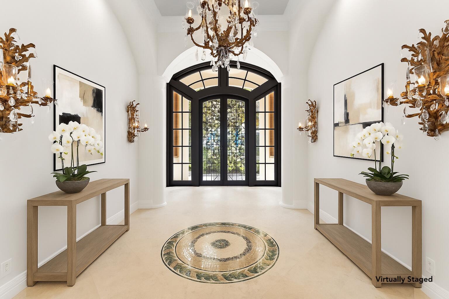 Golf Membership initiation INCREASING on Nov 15th! Rarely available stunning custom home in St Thomas at BallenIsles Country Club. Spanning approx 6,500 sq ft of living space, this residence features 5 beds, 5.1 baths, office, soaring ceilings, abundant natural light, new LED lighting, and 2020 roof, all set on a spacious, private lot. Impressive 12 ft doors welcome you to a magnificent foyer, leading to the living room with a dual-sided fireplace. The master suite features an oversized bedroom with a sitting area, his and hers walk-in closets, dual sinks and water closets. Kitchen and family room boast soaring ceilings, a sunken bar, and private wine cellar, offering ample space for entertaining. The grandeur extends onto the patio, summer kitchen, and pool area. Must see to appreciate
