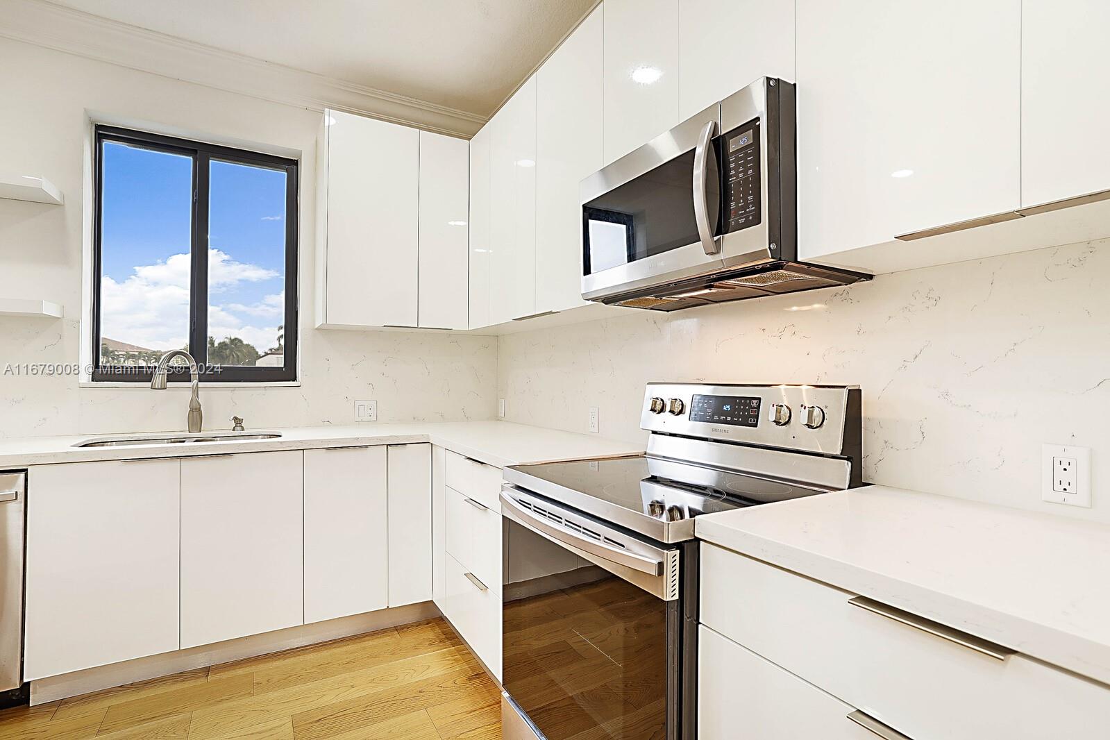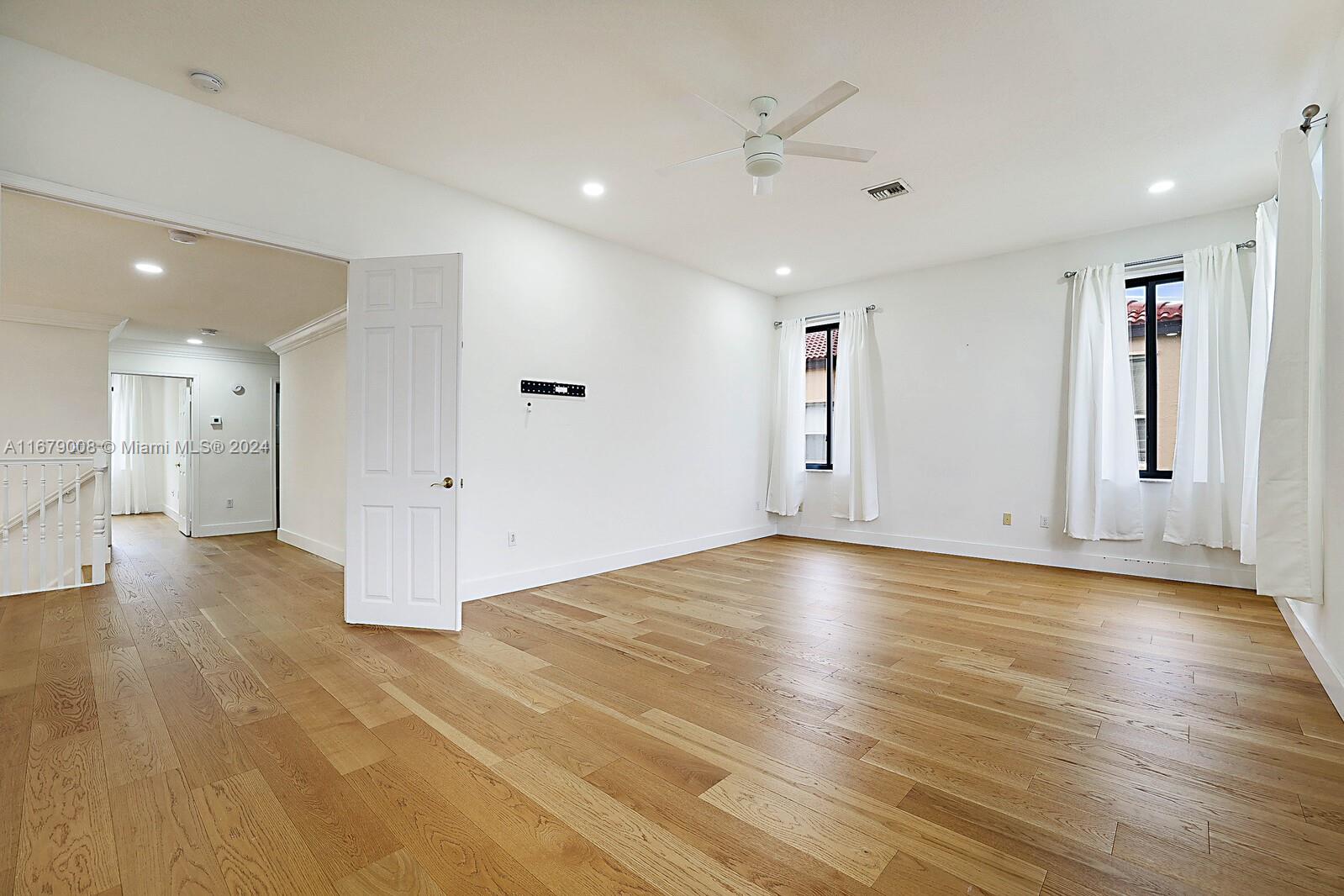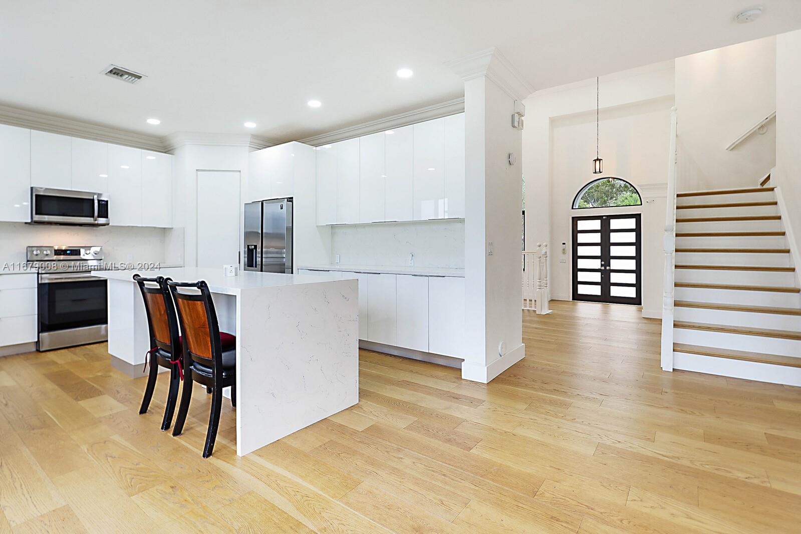 Tastefully renovated 5 bedroom/3 full bathroom spacious modern home in the desired Riviera Isles gated community. 1 Bedroom and Full Bath downstairs. New Hurricane Impact windows (2023), Roof (2021), water heater (2024), both AC units (2021), wide plank hard wood flooring throughout, white gloss European kitchen cabinets with waterfall quartz countertop & backsplash, stainless steel appliances, lighting fixtures, LED high-hat lights throughout, ceiling fans, and Samsung washer & dryer. The lakefront backyard is very spacious including an outdoor entertainment area, with room for a pool. An upstairs loft area, built in closets, and located on a cul-de-sac street. Secured Guard gated community, clubhouse, playgrounds, tennis courts, pool, walking paths, & gym, among other amenities.