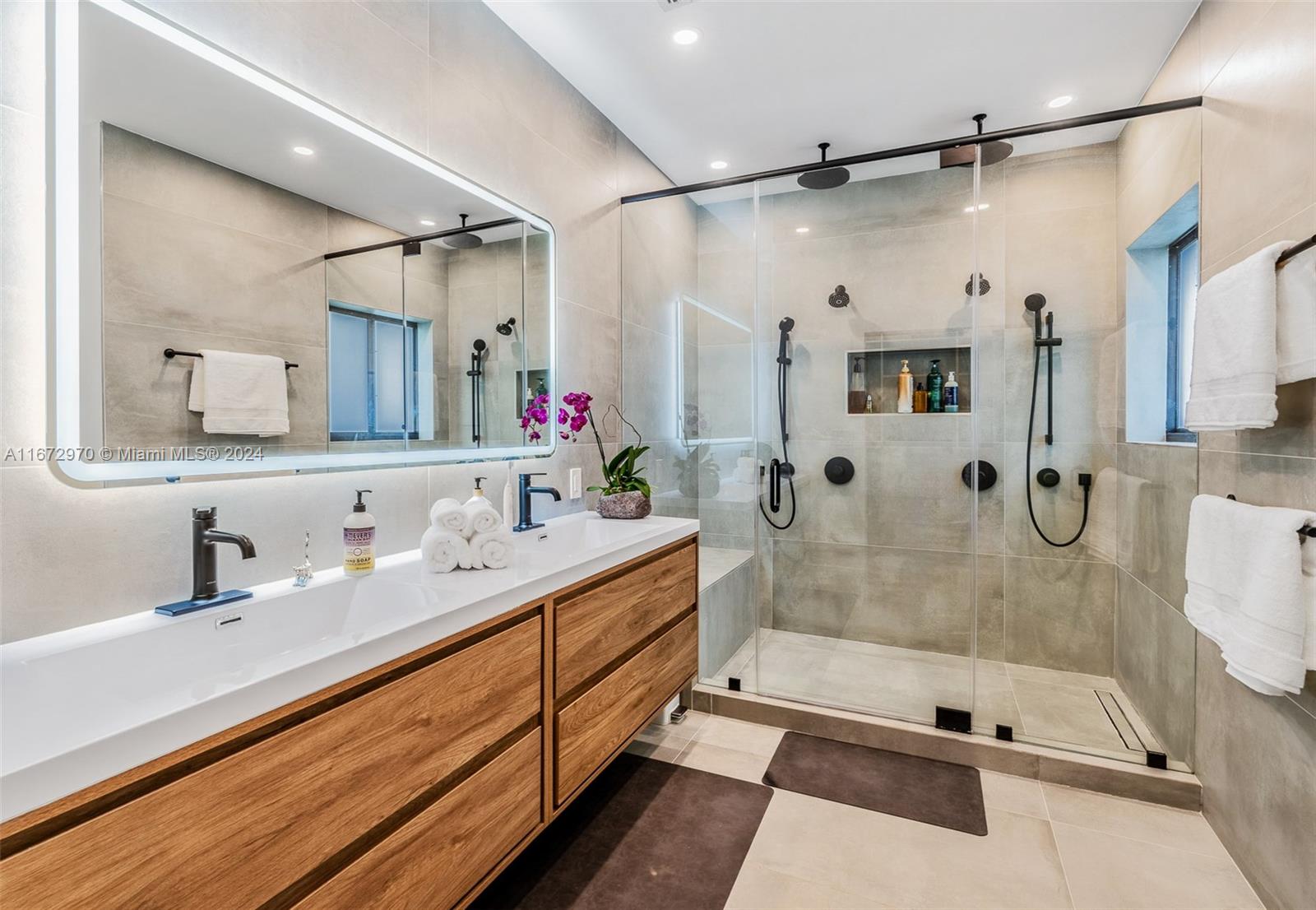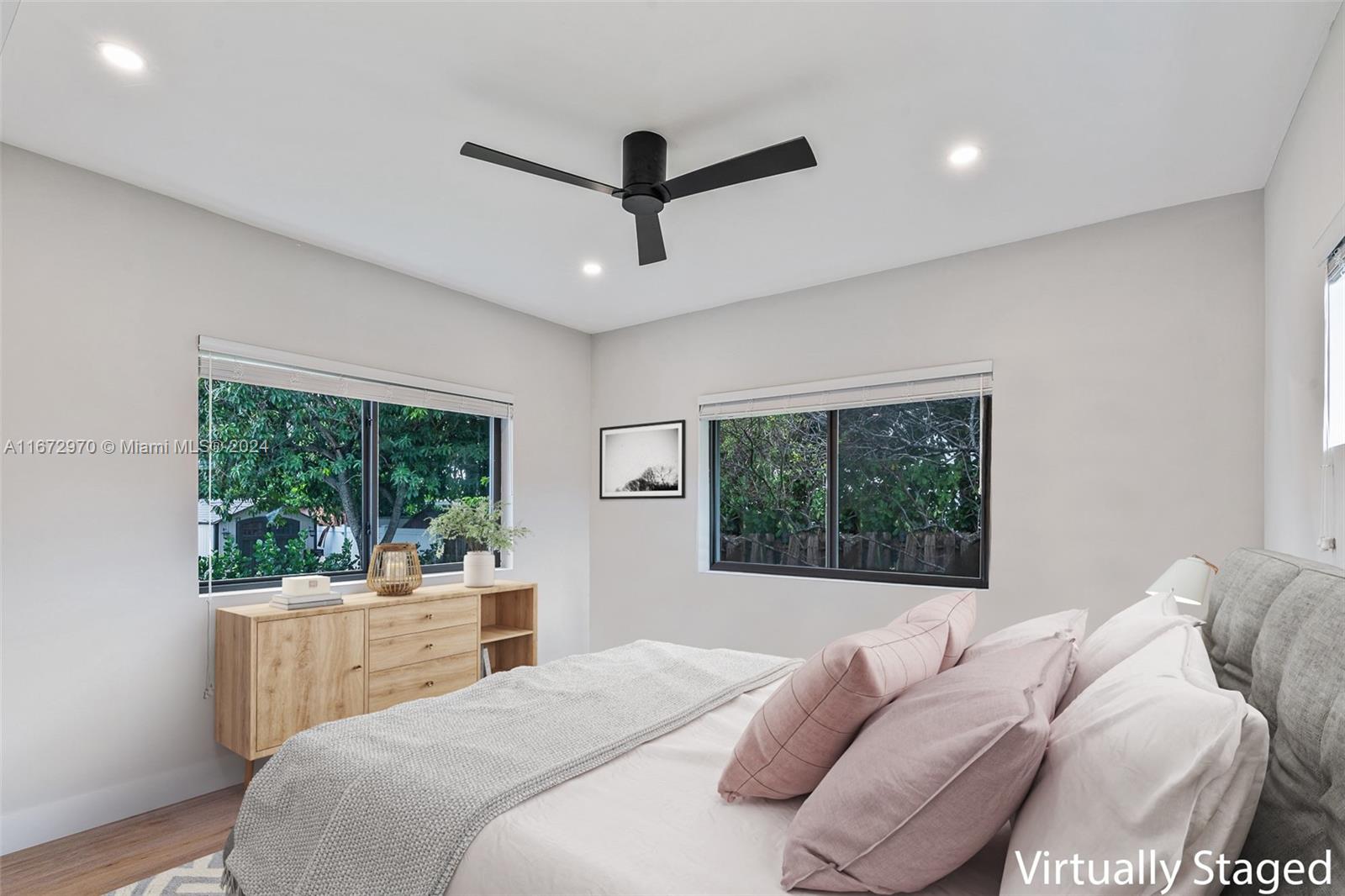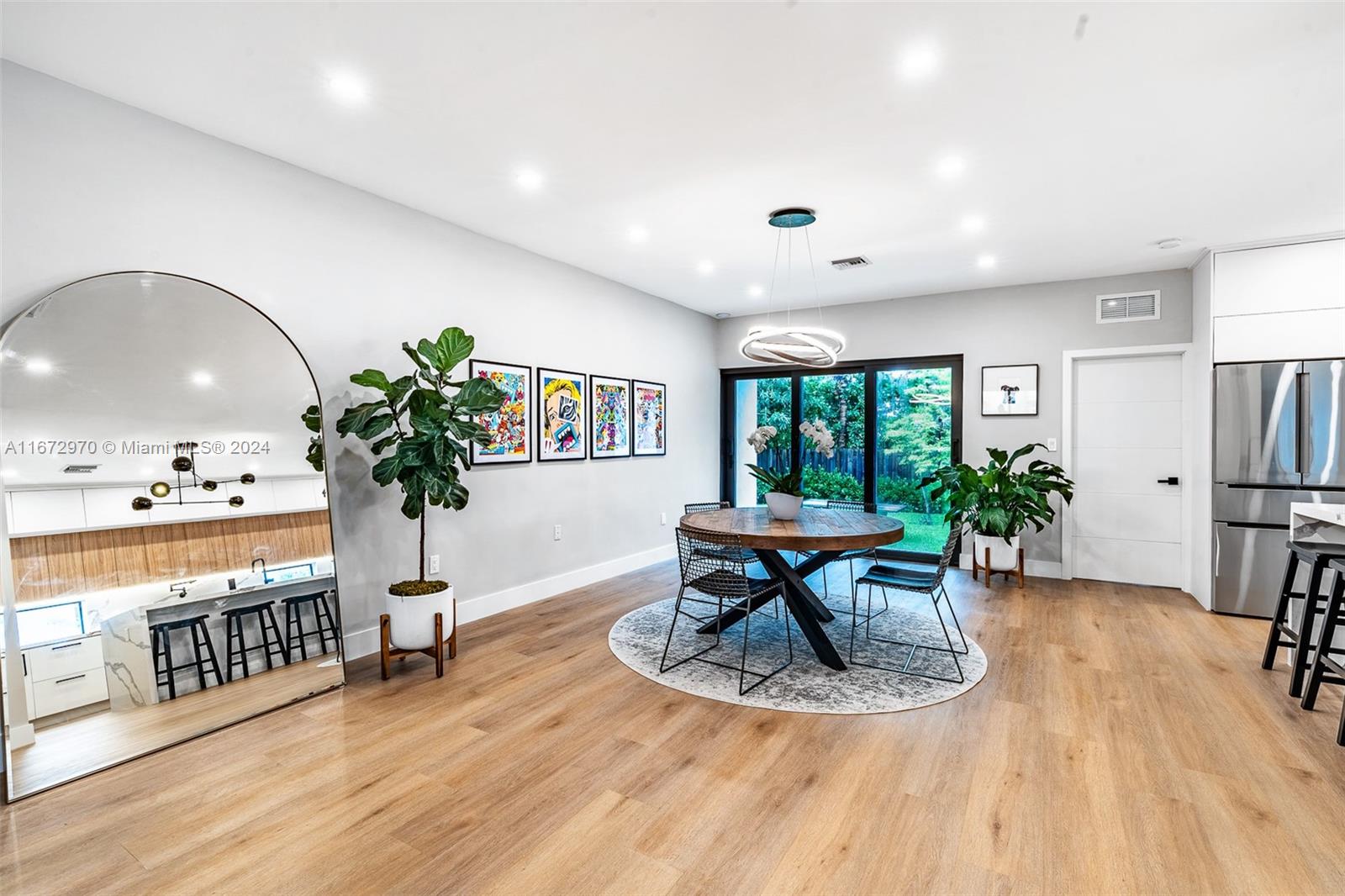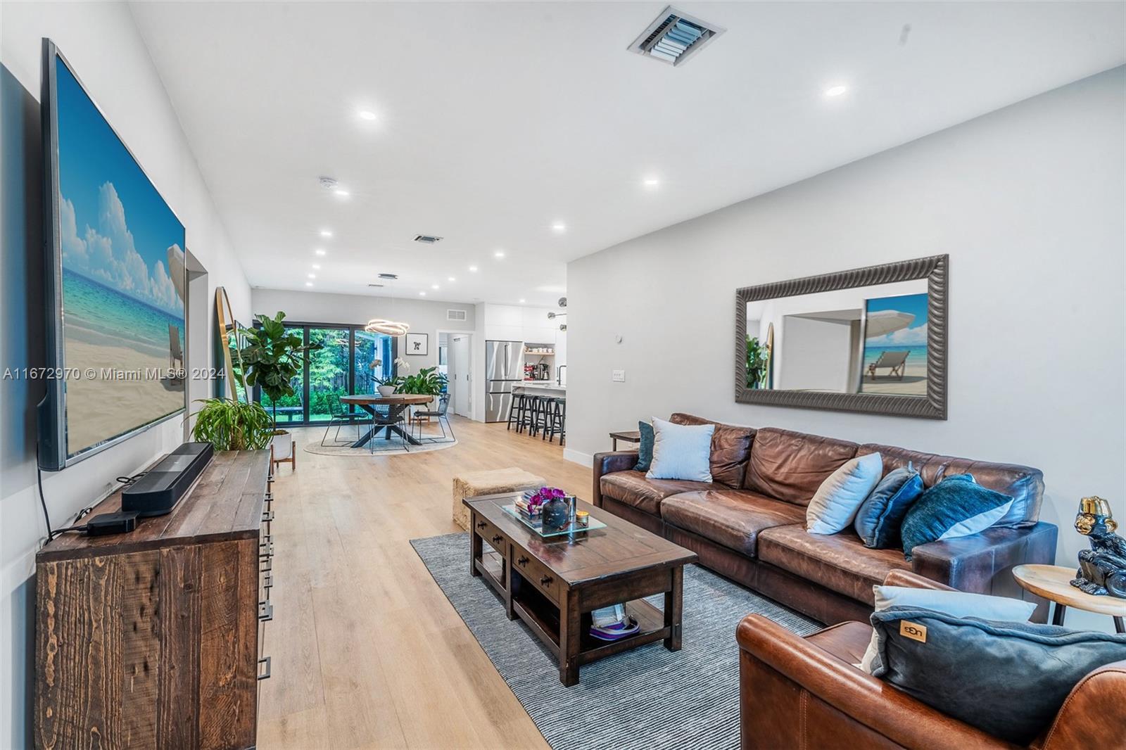 Move in ready! This stunning home, completely gut renovated last year, offers a spacious & open layout w/ 3 BR's & 4 BA's (Convert garage to 4th BR). The oversized living/dining areas provide a spacious setting for relaxation and entertainment. The gourmet kitchen is a chef's delight, featuring Bosch appliances, a 6-burner gas stove, 2 sinks, a wine cooler, & a convection oven & a huge island. Convenience is key with an LG W/D & brand-new plumbing & electrical systems. The primary BR is a serene retreat w/ electric shades & a spa like BR. Hi-End hurricane impact windows, outdoor cameras & hardwired internet connections ensure security & connectivity. The lush landscaping, sprinkler system & room for a pool(owner has plans) make outdoor enjoyment a breeze. Come see this gem today!