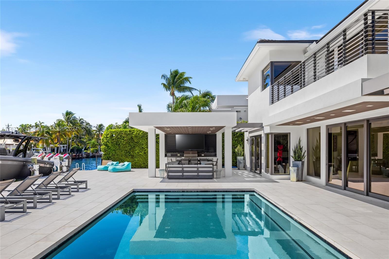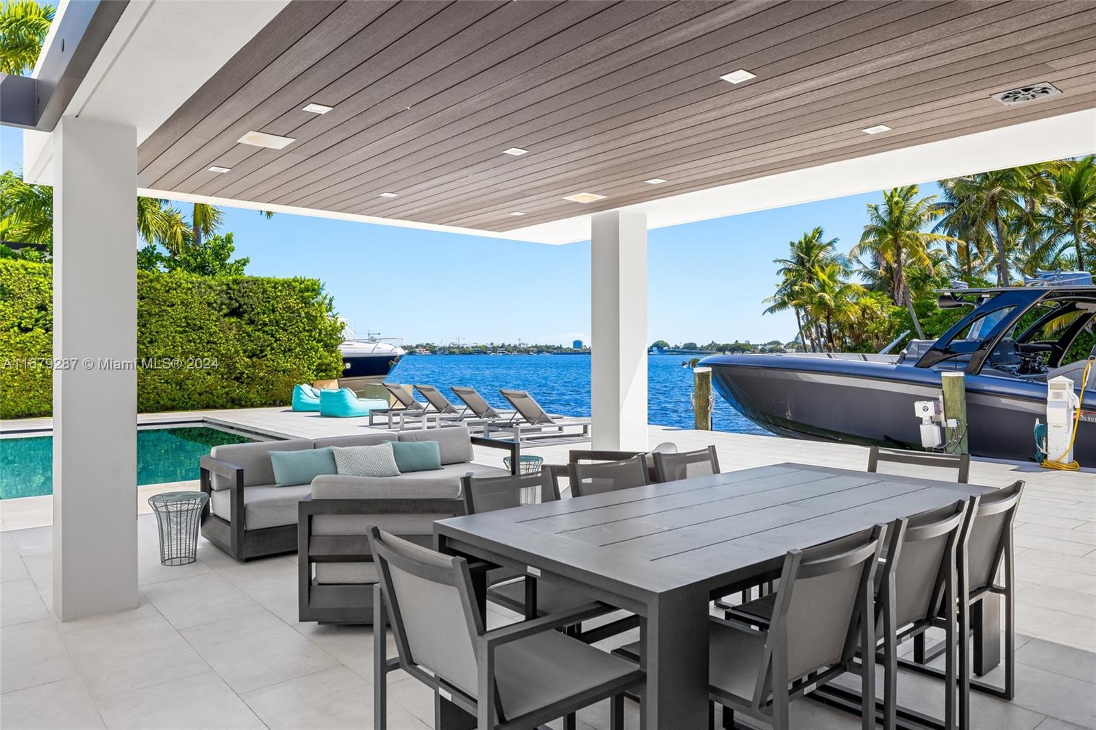 Discover modern luxury living at its finest in this newly reimagined 6-bedroom, 6.5-bathroom home. Boasting 5,750SF of meticulously designed space, this guard gated residence offers an open floor plan bathed in natural light through floor-to-ceiling windows. The European kitchen, equipped with top-of-the-line Sub-Zero & Wolf appliances, is a culinary enthusiast's dream. Entertain effortlessly w/a sleek bar featuring temperature-controlled wine storage that flows seamlessly to the outdoor pool area. The primary suite features a boutique style walk-in closet & breathtaking bay views. With 75FT of water frontage, you're just minutes from ocean access. Enjoy the convenience of nearby world-class shopping, and fine dining. Crestron-powered, this smart home defines sophisticated coastal living.