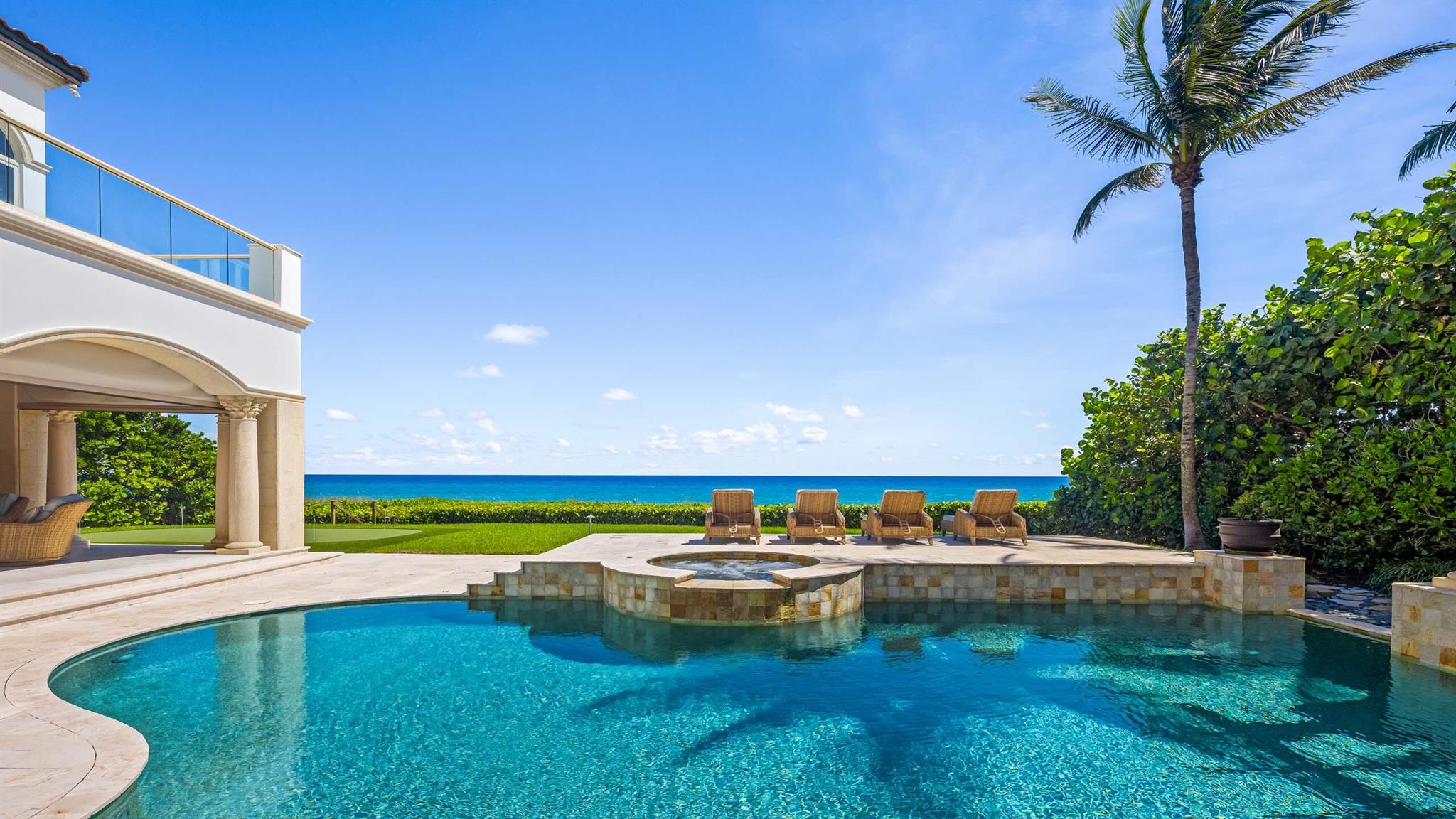 Introducing a one-of-a-kind oceanfront masterpiece in the prestigious Town of Highland Beach. Situated on 100 feet of direct ocean frontage with over 400 feet of depth, and almost 600 feet from the road to the water, this spectacular estate offers unparalleled luxury and privacy. Impeccable custom designer finishes elevate every aspect of this immaculate property. The residence boasts a stunning oceanfront pool complemented by a unique indoor pool and spa for year-round enjoyment. The expansive layout includes designer gourmet kitchen; two substantial offices that cater to modern work-from-home needs; state-of-the-art theater; and game room. With breathtaking views creating a sanctuary-like atmosphere and an oasis for relaxation, the primary suite has two separate baths with steam shower