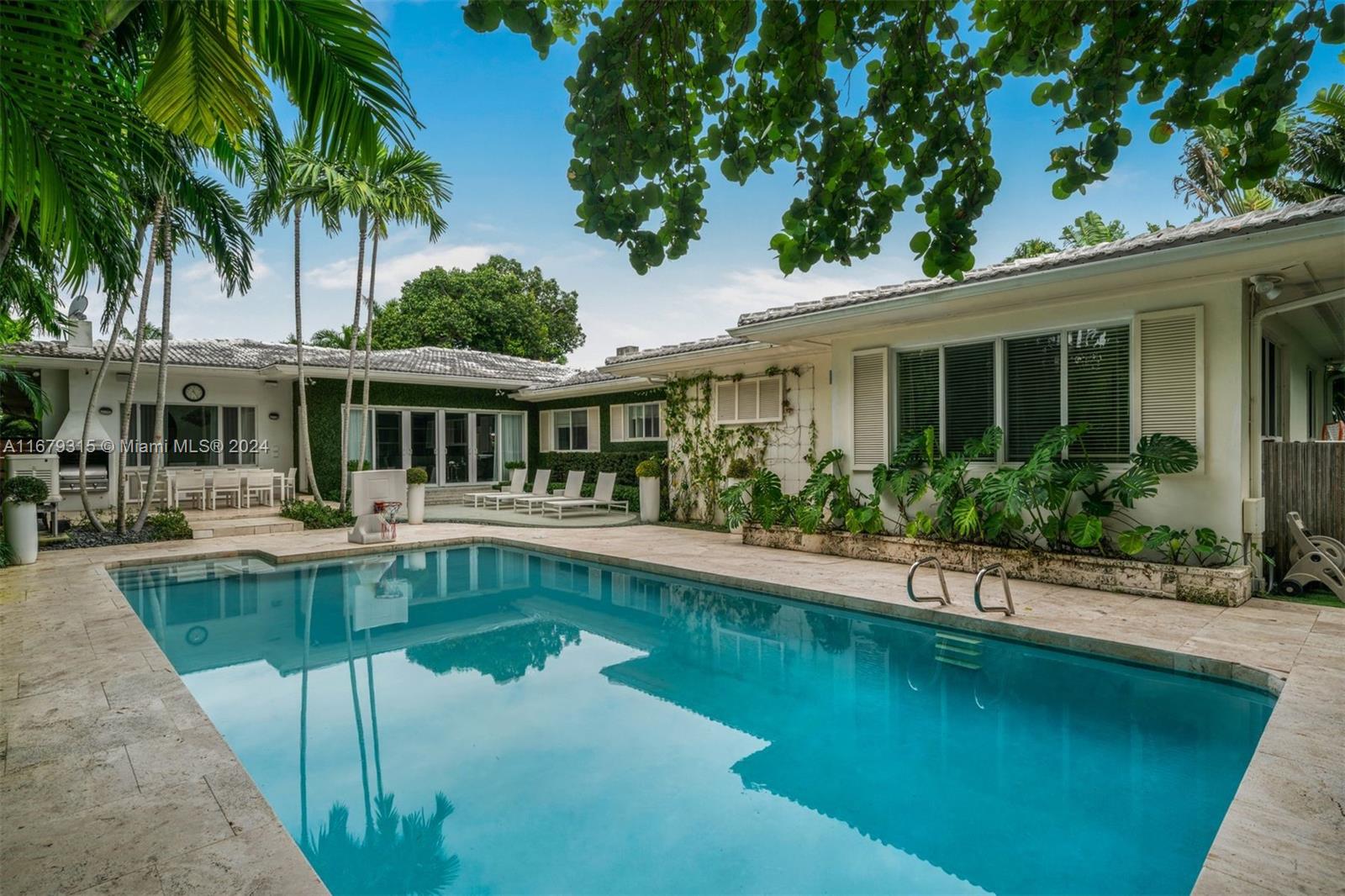 Experience the timeless elegance of this private, gated 4-bedroom MiMo-style home. The seamless indoor-outdoor flow is enhanced by an expansive open layout, with hurricane-impact sliding doors leading to a stunning outdoor oasis. Perfect for entertaining, the outdoor area boasts a sparkling pool, a summer kitchen, and sits on a 13,800 square foot lot that stretches from Nautilus Dr. to Michigan Ave. Inside, you'll find a spacious gourmet kitchen, soaring ceilings, and a prime location in the heart of Miami Beach, making this home the perfect retreat.