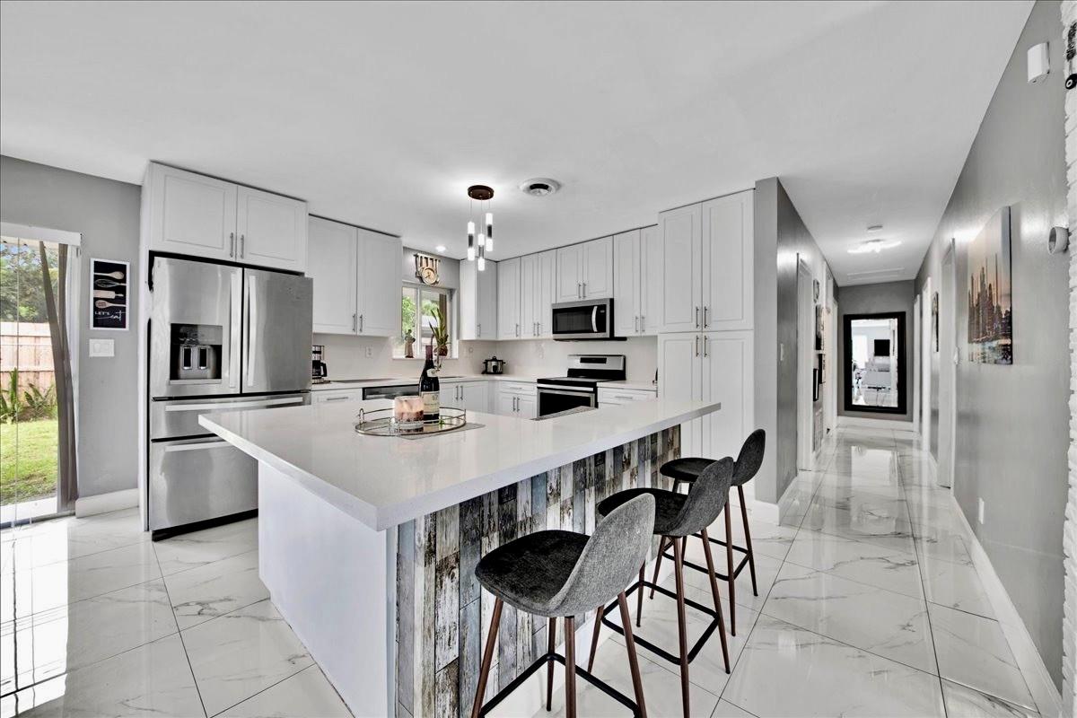 PRICED TO SELL - INVESTORS TREASURE!! Hollywood Pool House!! 5 beds/3 baths - Main house renovated 4-beds, 2-baths, with new vinyl & tile floors. NO carpet. Kitchen has been recently renovated w/quartz countertops, solid wood cabinetry, and newer stain-steel appliances that boasts to a large and open living room/dinning area. High impact windows in the front of the house and hurricane shutters for back windows. BONUS: Detached studio/efficiency for your guests or for an EXTRA income!! Totally fenced and screened in the front entrance and pool area. Roof (2019), AC (2017) NO HOA & just 15 mins. to the beach!