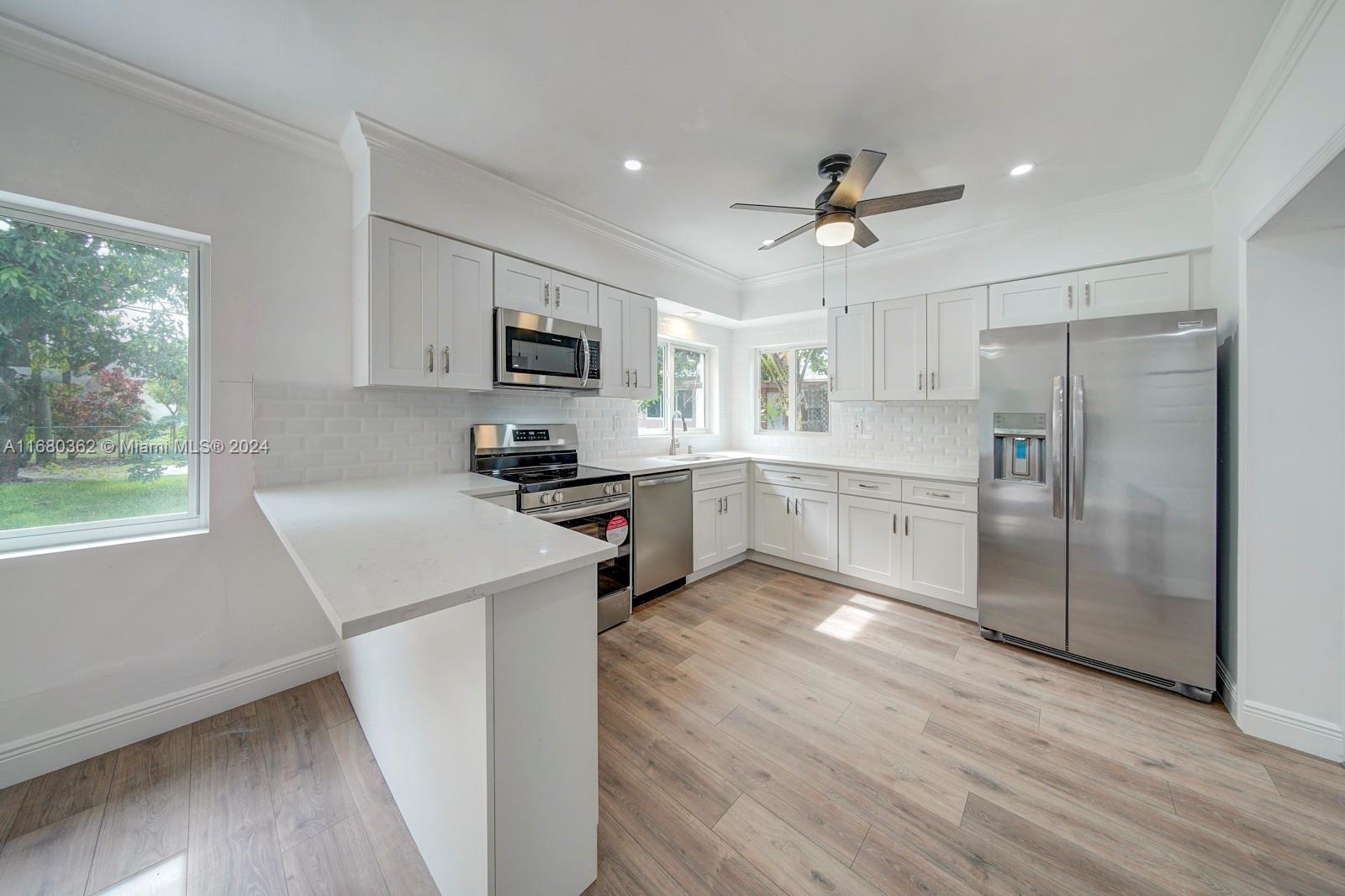 WOW, This is the one you've been looking for. Totally remodeled, fully permitted, single family home w/ 3 Beds, 2 full Baths + Den/office, just 3 miles to Hollywood Beach and very close to downtown Hollywood. This home is on a Double Lot, on a quiet side street in a great neighborhood (no HOA). NEW roof, NEW bathrooms, NEW hurricane impact windows and doors, NEW floors, NEW water heater, NEW kitchen and appliances, NEW ductless AC system in every room. You can control the temperature (hot or cold) in each room separately for maximum efficiency. Also electrical panel and switches and outlets are new as well as all the LED light fixtures. NEW septic drain field. The huge backyard has many fruit trees, such as avocado, papaya, coconut, mango, akee and bananas. Plenty of room for a pool.